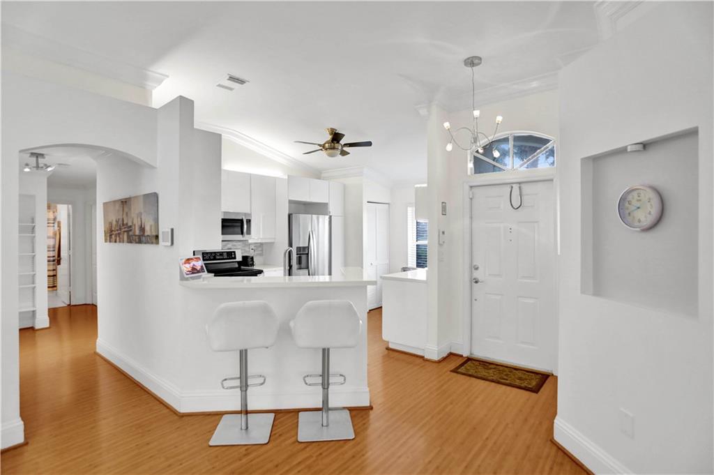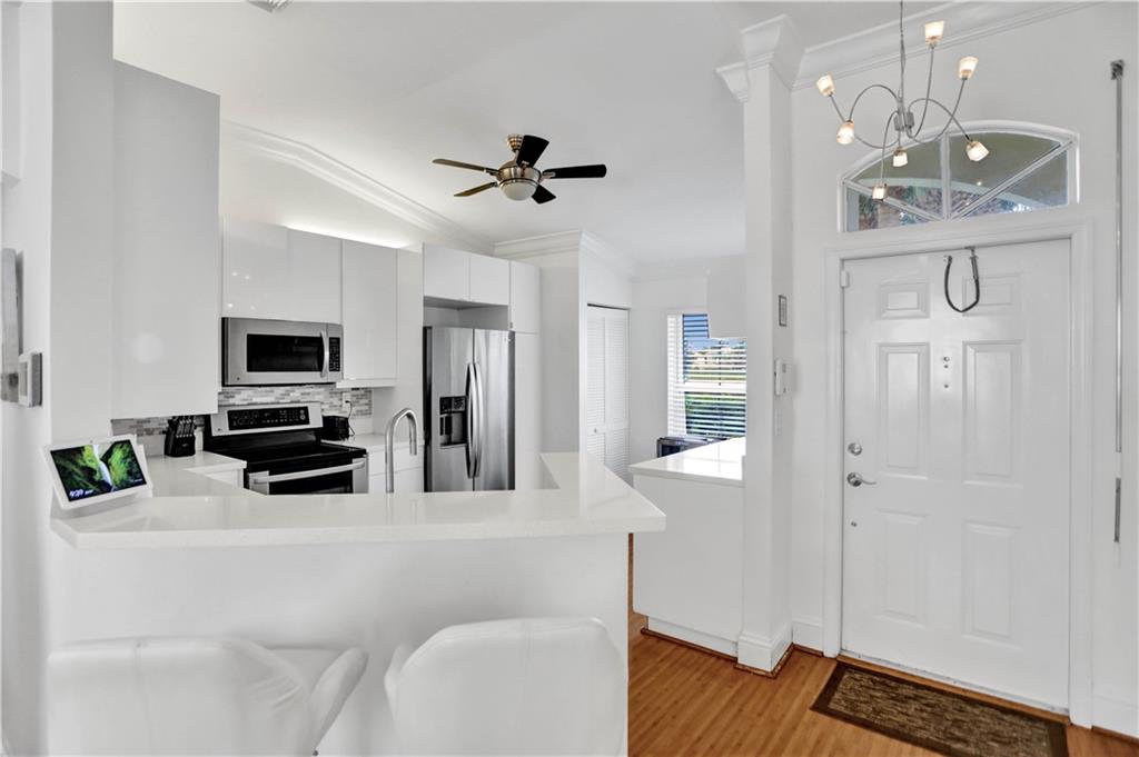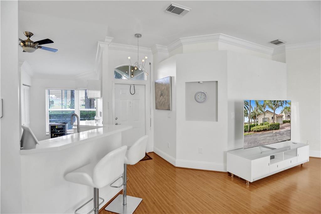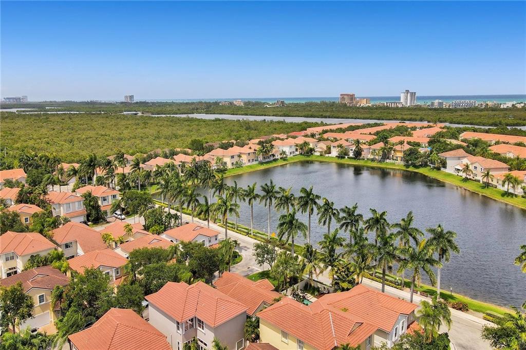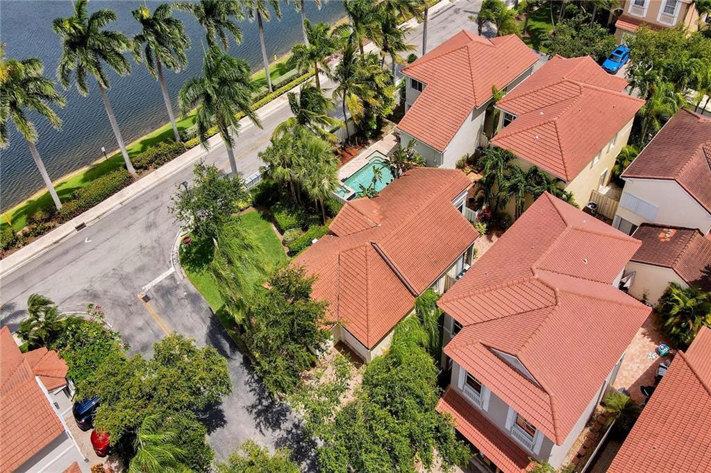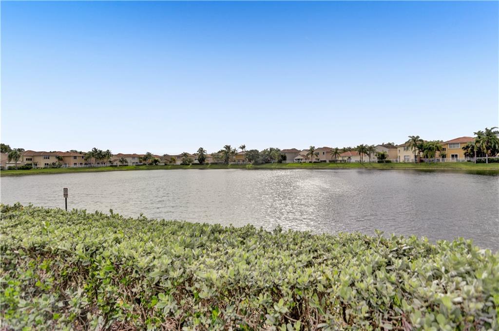 Premium Corner Single Story House with Lakeview . One Mile To The Beach. Mediterranean style ranch-move in condition has 3/2, split plan master suite with large walk-in closet. Large master w/vaulted ceilings, huge walk in closet and updated master bathroom. Access patio from the master bedroom. Open plan features upgraded kitchen w/quartz countertops, stainless steel appliances, tankless electric water heater, high efficient washer/dryer. Exterior hurricane accordion shutters, retractable awning in patio w/remote control, lush patio area for entertaining. Close to guest parking. Amenities: 24/7 security, heated pool, jacuzzi, 4 tennis courts, exercise room, basketball courts, clubhouse w/pool table & play area. Located next to West Lake Park with marina, canoe/kayak rentals and more.