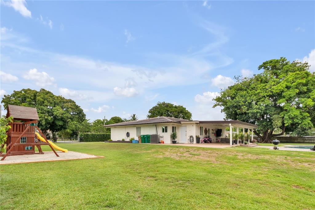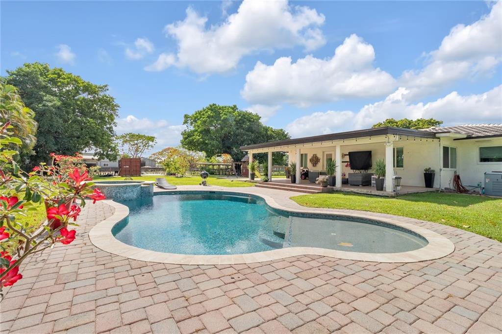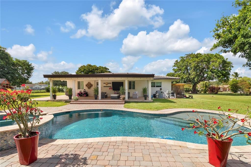 BEAUTIFUL UPDATED HOME IN THE HEART OF DAVIE SW RANCHES ON OVER AN ACRE LOT. 4BEDROOM /3BATH *2 MASTER SUITES*, UPDATED KITCHEN, BATHS, FLOORS, CEILINGS, AND STAINLESS STEEL APPLIANCES.2 OF THE ROOMS FEATURE CUSTOM MOTORIZED SHADES. BEAUTIFULLY DESIGN/SHAPED HEATED POOL AND JACUZZI INSTALLED 2013. HURRICANE WINDOWS COMPLETELY FENCED-IN YARD WITH FRUIT TREES, GATED DRIVEWAY. HORSES ARE PERMITTED IN THE NEIGHBORHOOD, NO HOA, SOUGHT-AFTER AREA. Featuring*New playground *pool pump "motor" new. *Tankless water heater new*All Impact windows. *New 24 chamber drain field services the house. New separate tank 6 chamber drain field serves the washing machine. THIS HOME WILL NOT LAST!