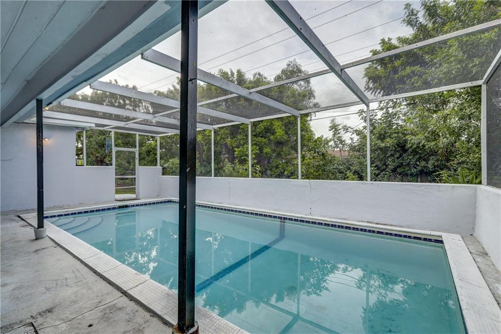 Charming Driftwood pool home. New roof 2019. Upgraded electric 2014. Tile and terrazzo floors. Large screened and covered patio area with sparkling pool! Freshly painted interior. Large kitchen, open to living area. Super bright family room with lots of windows and vaulted ceiling. Dedicated laundry room. Large covered area on patio. Entire patio and pool is screened. Nice yard with plenty of room for entertaining. Home is in very good condition. All carpeting has been removed, tack strips are still in place, please be careful not to step on them. Spacious home with large and open with lots of natural light. Super easy to show.