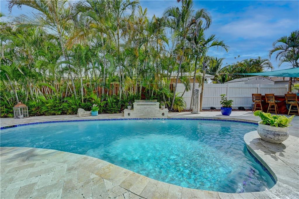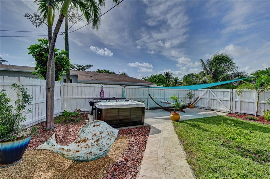 **WELCOME TO PARADISE IN EAST POMPANO BEACH** HUGE private fenced corner lot (11,420 sq ft) to store ALL of your toys!!). This home is completely & beautifully remodeled, ready to move in & enjoy! Featuring 3 bedrooms & 2 baths, an AMAZING tropical backyard with a free-form pool with waterfall & firepit, hot tub, fantastic landscaping, 2 sheds & exterior lighting. Cute front porch, back patio has 2 covered overhangs for entertaining. All impact windows & doors PLUS generator, beautiful laminate wood flooring with lifetime warranty. New roof in 2015, a/c less than 1 year old, hot water heater less than 6 months, Samsung Smart kitchen appliances 2 years old...list of upgrades too long to mention! Close to beach, I95, shopping & dining. DON'T MISS THIS ONE! Owner occupied.