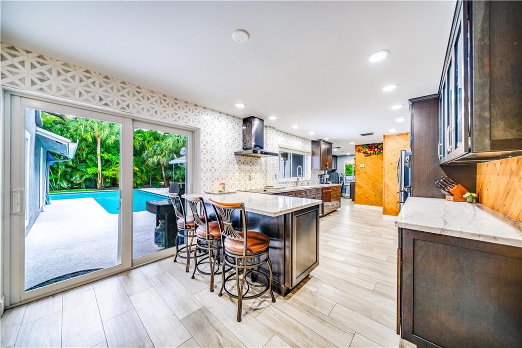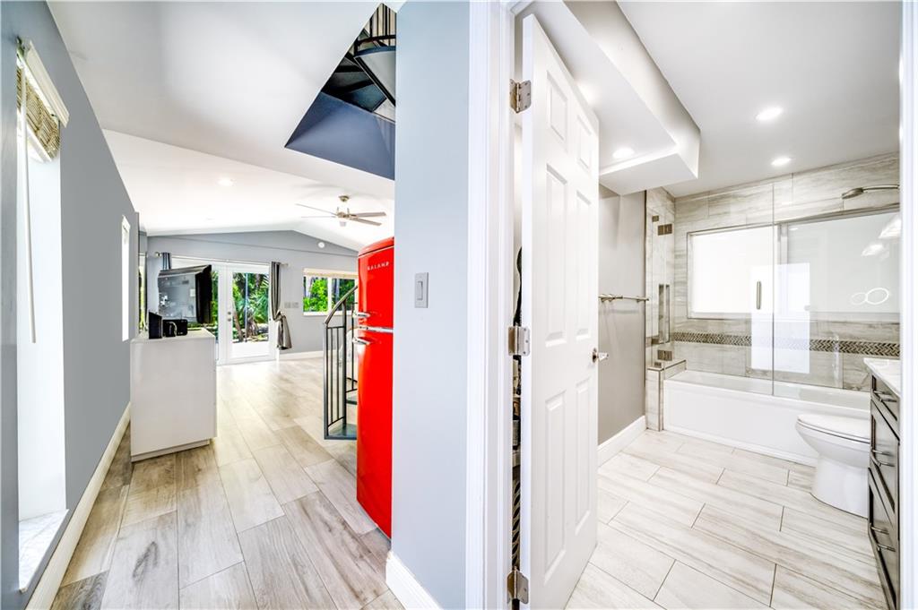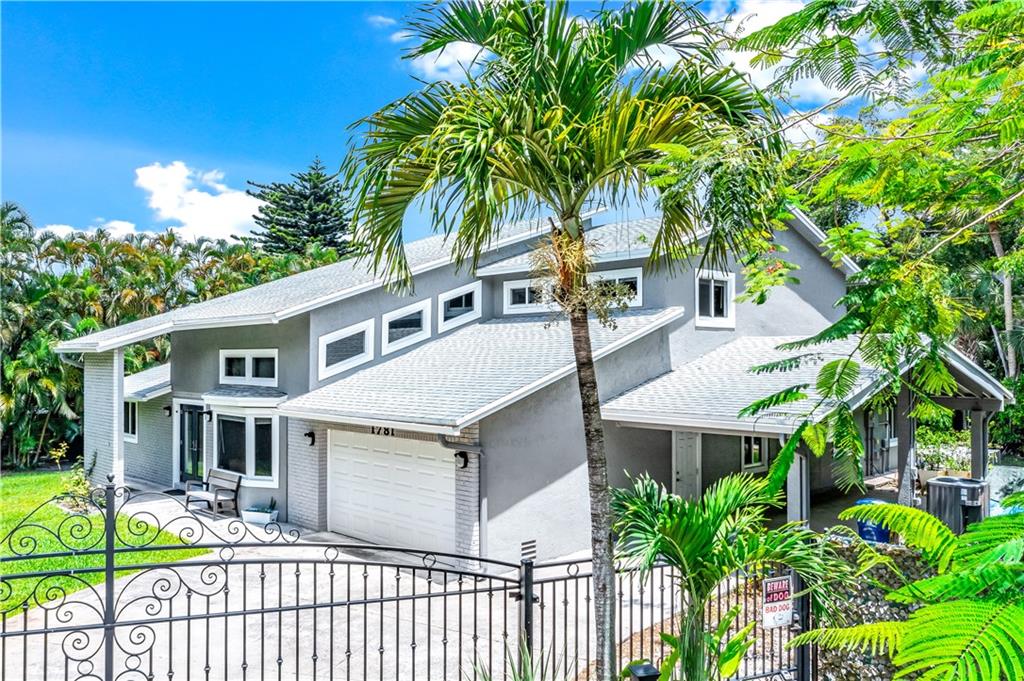 Located at the end of a culdesac in the heart of Ft. Lauderdale, this renovated single family two story home has so much to offer! Four large bedrooms and three renovated bathrooms, two living spaces, a formal dining room which sits 3500+ sq ft under air on a .94 acre lot! Features include: mid-century vaulted ceilings, hurricane impact windows & doors, four year old roof, high hat lighting throughout, two zone AC, touch screen blue tooth stainless steel Samsung appliances, cherry wood cabinets, marble backsplash, quartzite Counters, tile wood plank flooring, aluminum front gate with industrial motor, new sprinkler system, and private balcony. Property also features a secondary structure to be mother in law suite, pool home, or whatever you desire!