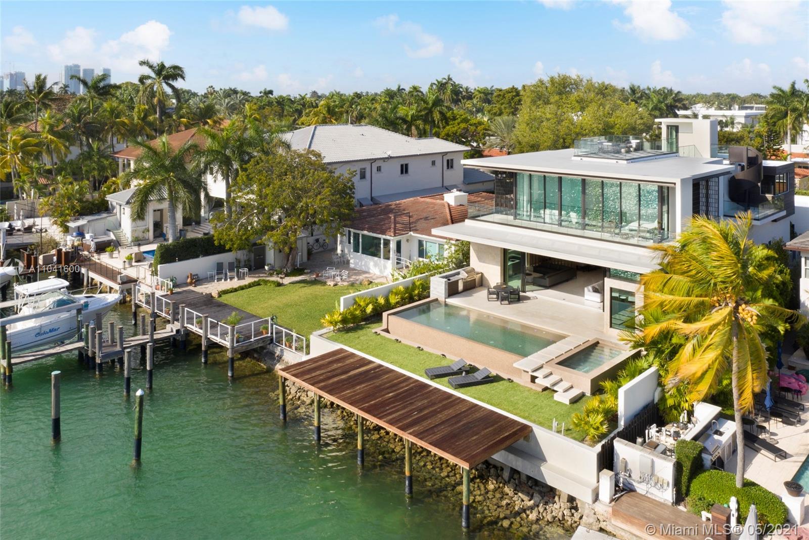 NEW LUXURY WATERFRONT VILLA on one of Miami Beach’s most coveted addresses - HIBISCUS ISLAND. Designed by architect Borges Architecture & Design, this modern masterpiece is the perfect home for anyone looking to enjoy the best Miami has to offer. This beautiful 5 Bedroom, 5.5 Bathroom home features: rooftop deck with 360 degree views of the Miami skyline, infinity edged pool with sunset vistas of Biscayne Bay and outdoor bbq, Ornare custom kitchen, bar, full-length wine cellar, floating staircase, spacious master bed with marble bath, Mia Cucina his/her, floor-to-ceiling sliding doors, 2-car garage, elevator & more. Move-in ready with full furniture package.
