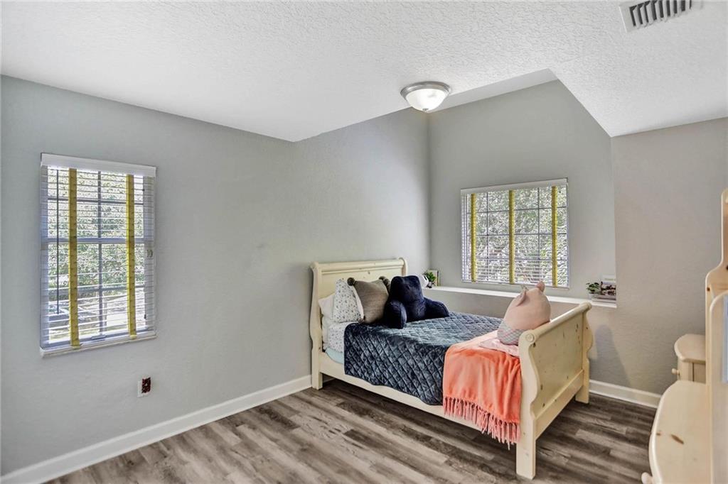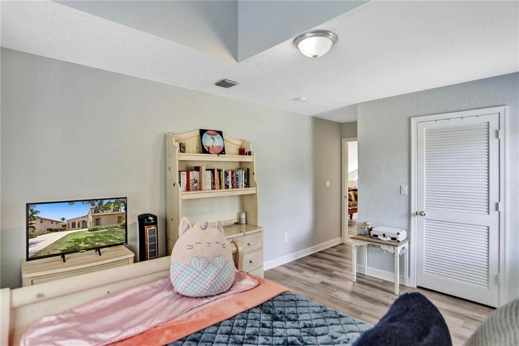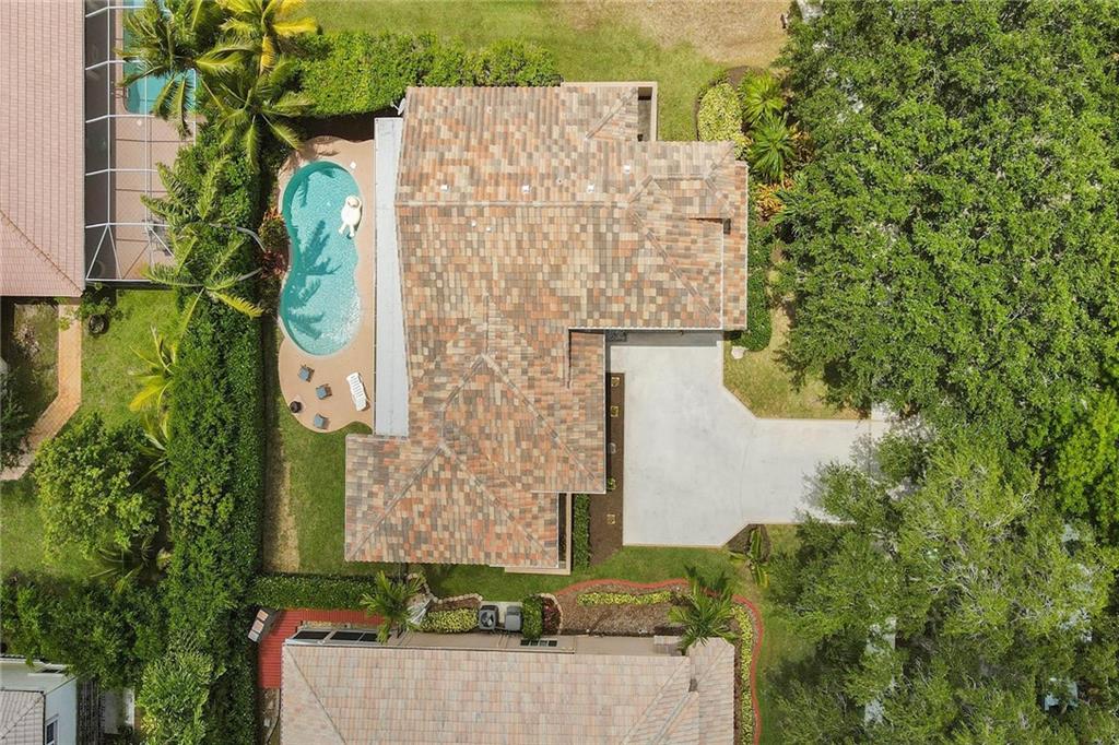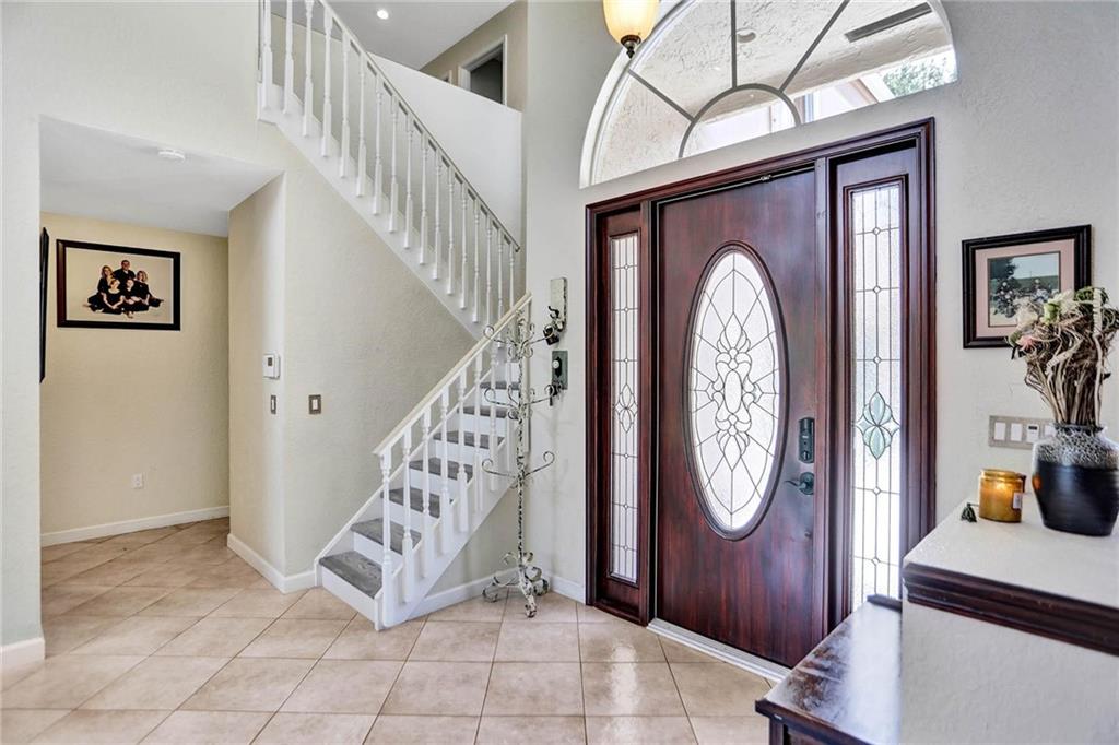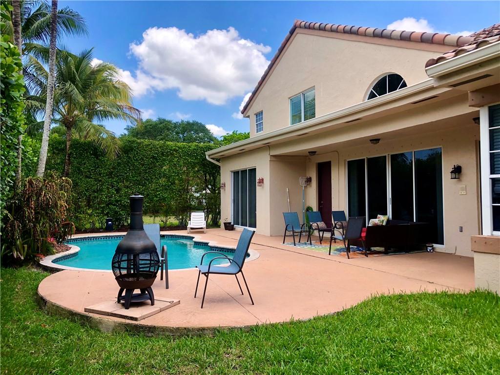 Beautiful two story home in the exclusive, private and gated community of East Landing in Rock Creek. This spacious five bedroom, three and a half bath home sits next to an open lot not zoned for build out, allowing for extra quiet and privacy. Living room boasts volume ceilings and sliders with beautiful views of a lusciously landscaped pool oasis. Oversized 1st floor Master suite with generous his and hers walk in closets and an updated master bathroom suite with dual sinks and a whirlpool tub. New Aquaguard wood grain laminate floors on the stairs and throughout the upper level. Brand new roof, completed February 2021 and two new AC units. Some Impact glass windows on the upper level and hurricane shutters for all.