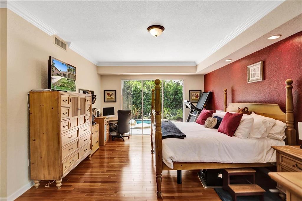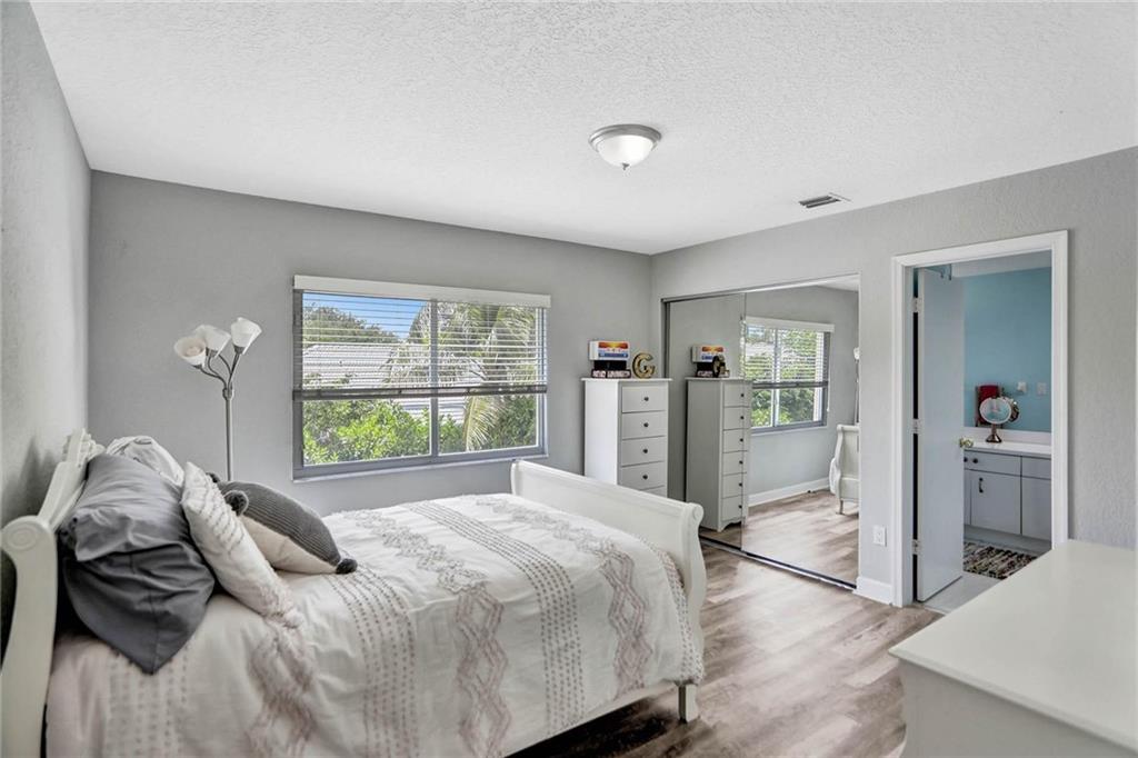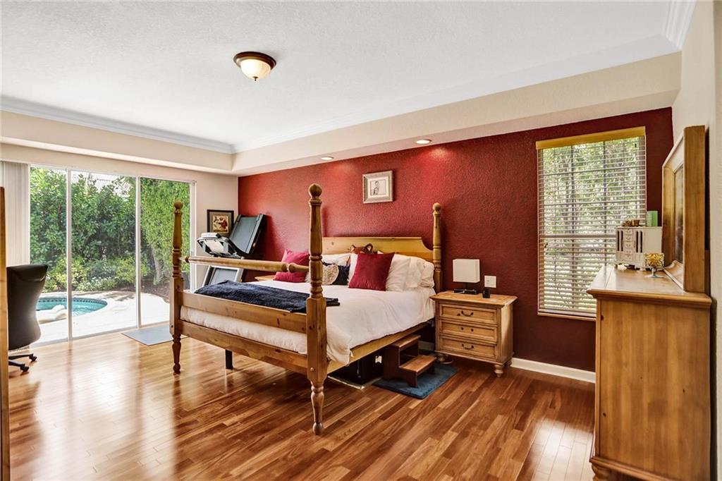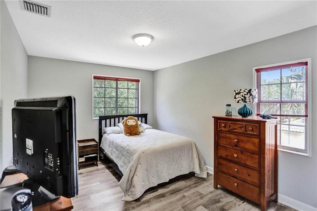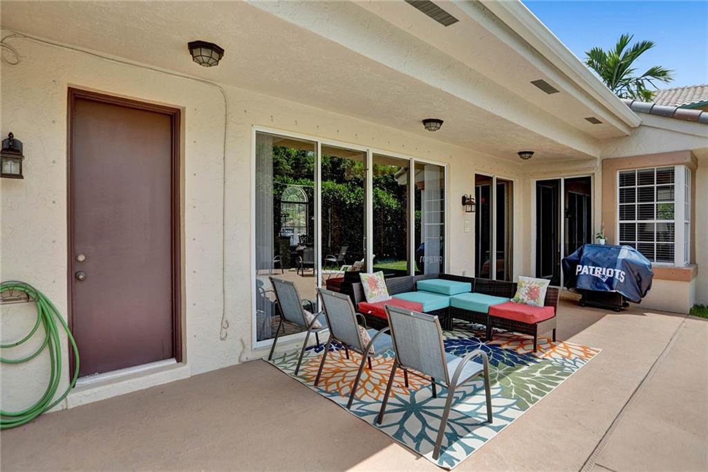 Beautiful two story home in the exclusive, private and gated community of East Landing in Rock Creek. This spacious five bedroom, three and a half bath home sits next to an open lot not zoned for build out, allowing for extra quiet and privacy. Living room boasts volume ceilings and sliders with beautiful views of a lusciously landscaped pool oasis. Oversized 1st floor Master suite with generous his and hers walk in closets and an updated master bathroom suite with dual sinks and a whirlpool tub. New Aquaguard wood grain laminate floors on the stairs and throughout the upper level. Brand new roof, completed February 2021 and two new AC units. Some Impact glass windows on the upper level and hurricane shutters for all.