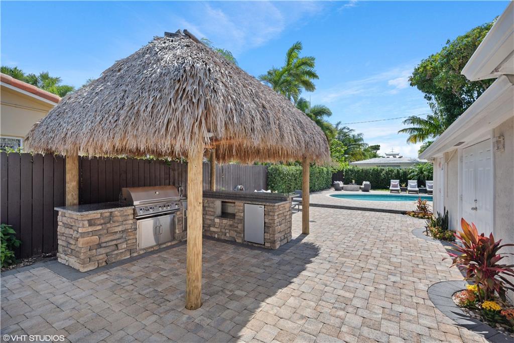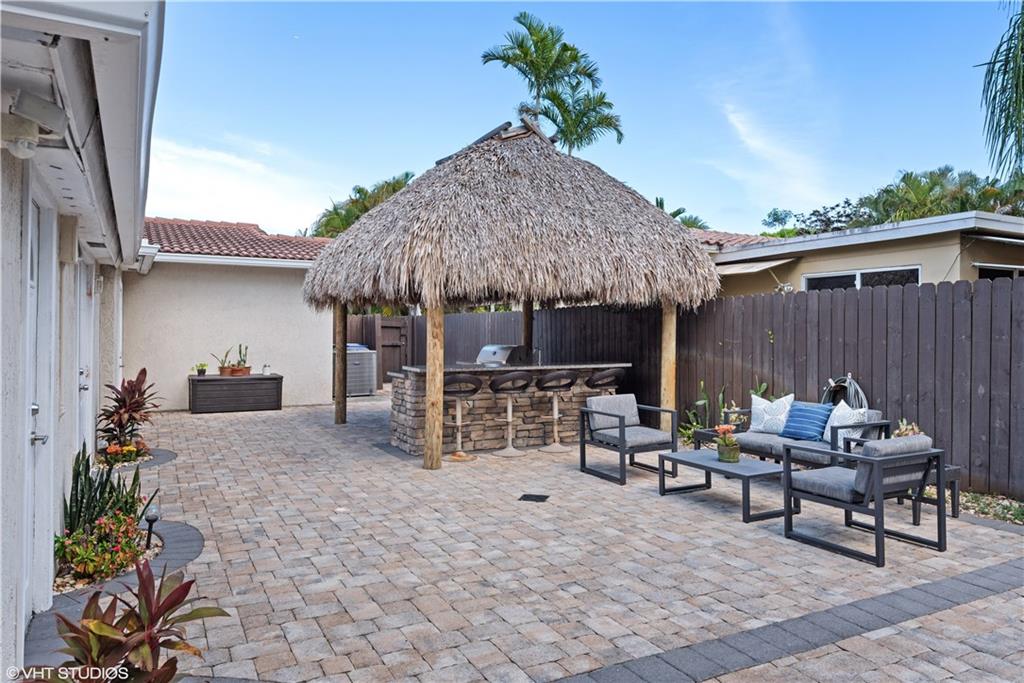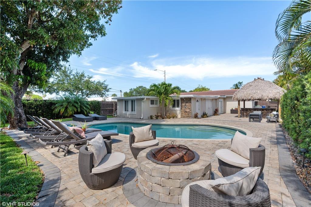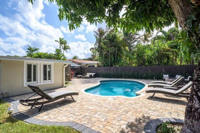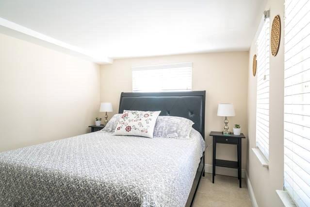 This spacious 4-bedroom/3-bathroom house has an attached 1-bedroom/1-bathroom In-law unit. The main house has a spacious open floor plan where the kitchen with its center island and breakfast bar, dining room and living room blend together into one perfect space with natural light for entertaining and family time. Three of the bedrooms in the main house have its own bathroom and one of them has private entrance from the outside of the house. The fourth is a bonus room, has french doors that open to backyard and can be used as a TV-room, gym or home-office. 500 Sq ft 1-bedroom/1-bathroom In-law unit has pool views and has its own kitchen and living space. Pool is surrounded by a low maintenance beautiful landscape and driveway accommodates parking for up to 5 cars.