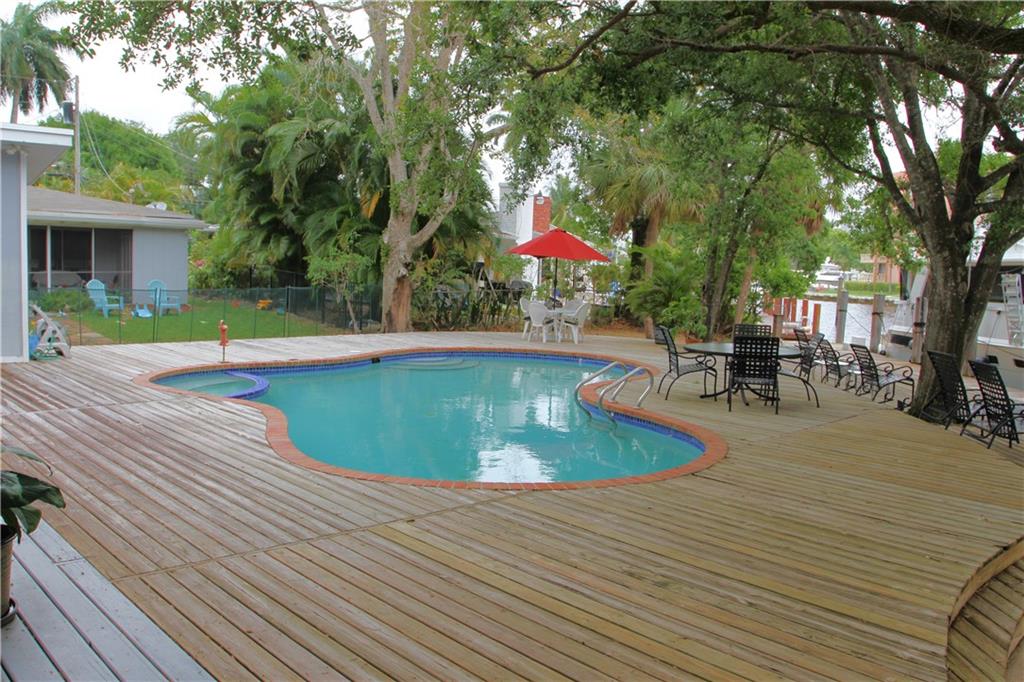 First time on the market since 1986, this New River property features 3 bedrooms, a new kitchen, 2 1/2 bathrooms, a very large parking area and, best of all, a constant parade of yachts passing by daily. A large outdoor deck, pool, jacuzzi spa and outdoor bar makes this a perfect place for outdoor entertaining. This home also features coveted 103’ on the New River with no fixed bridges that can accommodate up to an 80’+ yacht. Can rent dock space for additional income. This is Ft Lauderdale living at its best. Property being sold "as is".