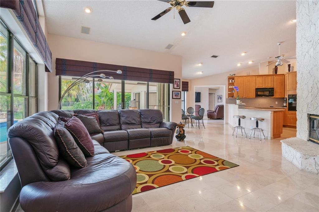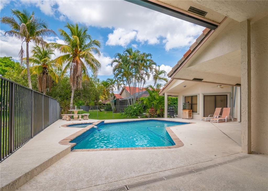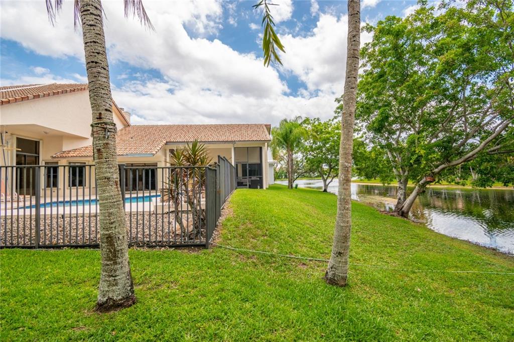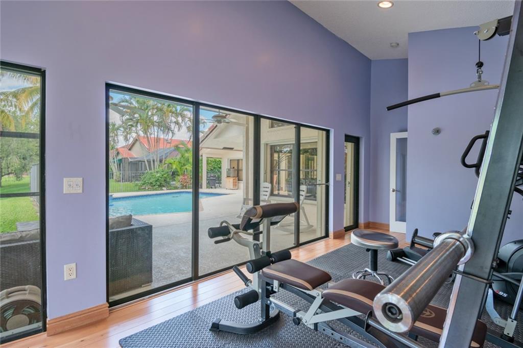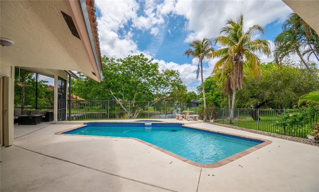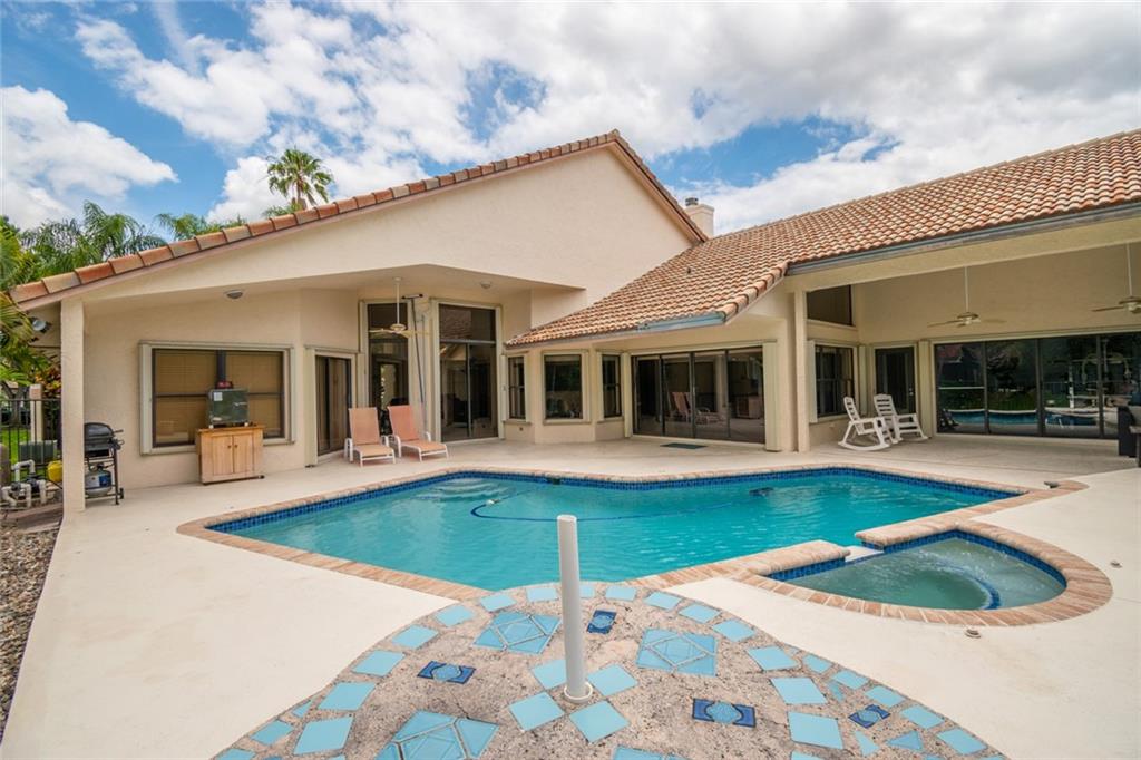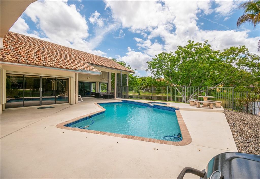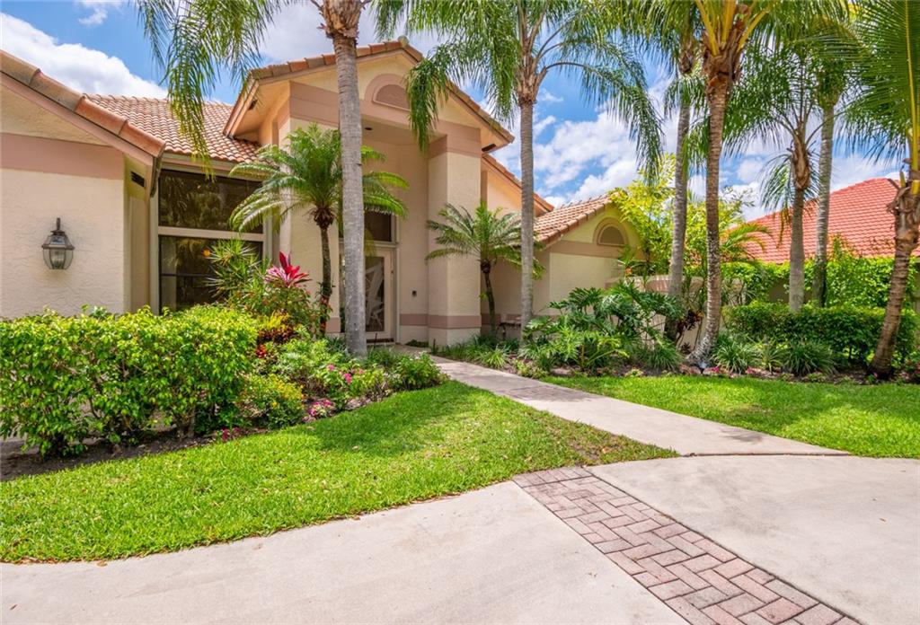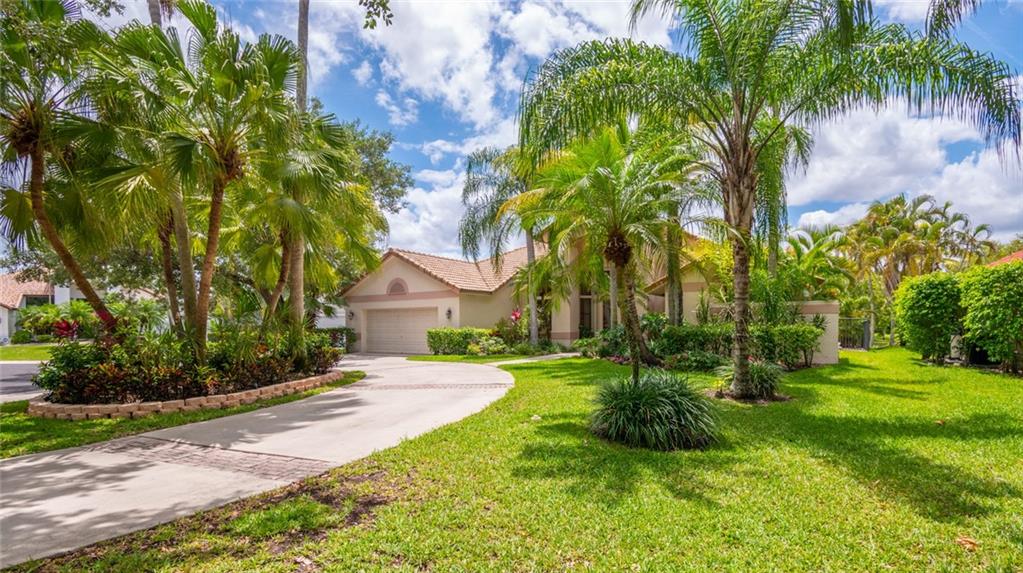 Spacious inviting home in a gated community with beautiful views in Tequesta Lakes that can be seen the minute you walk through the door. This home features an extended covered patio with pool and a custom addition home gym/playroom that is 22 x 18 that overlooks the lake and lit fountain. Situated on a cul-de-sac with a circular driveway, this single story naturally lit open floor plan home has split bedrooms, vaulted ceilings and is perfect for entertaining or just relaxing. Hurricane shutters, pool was redone in 2018, roof 2008