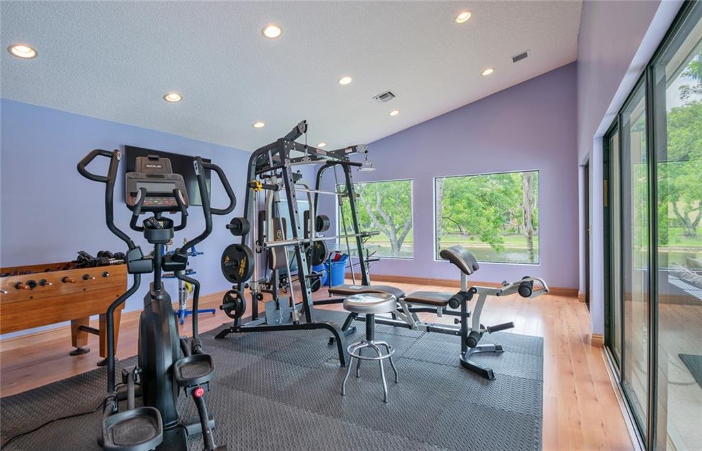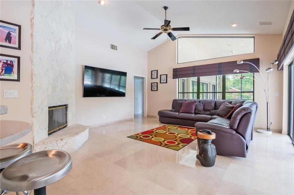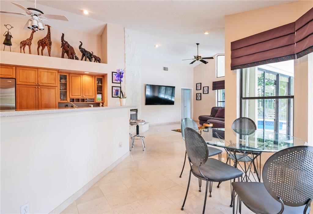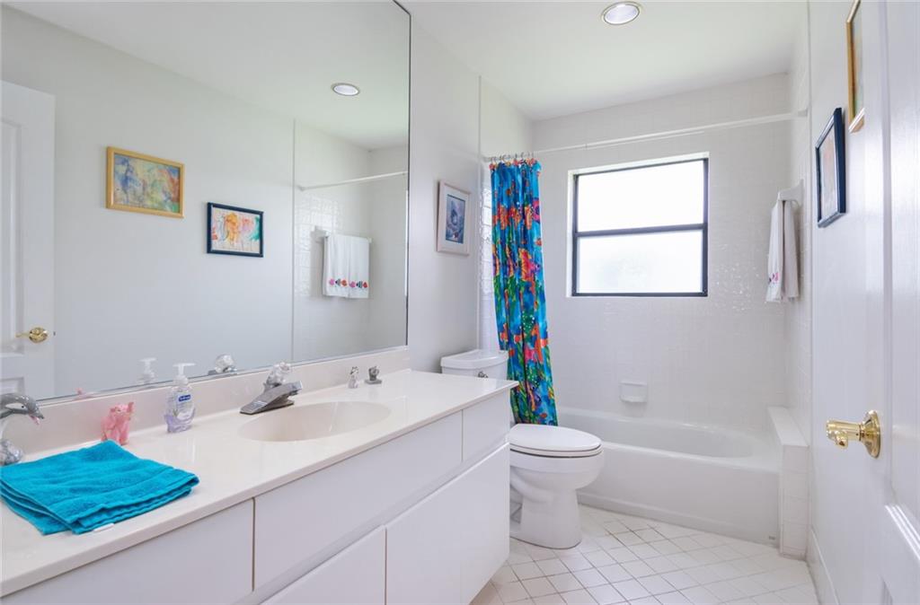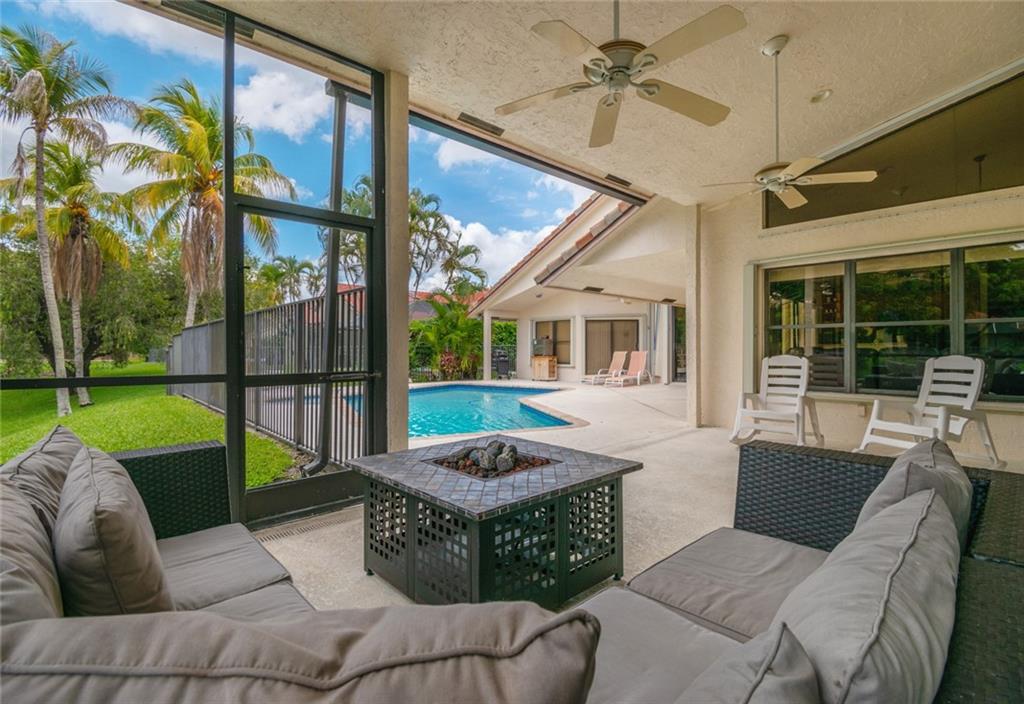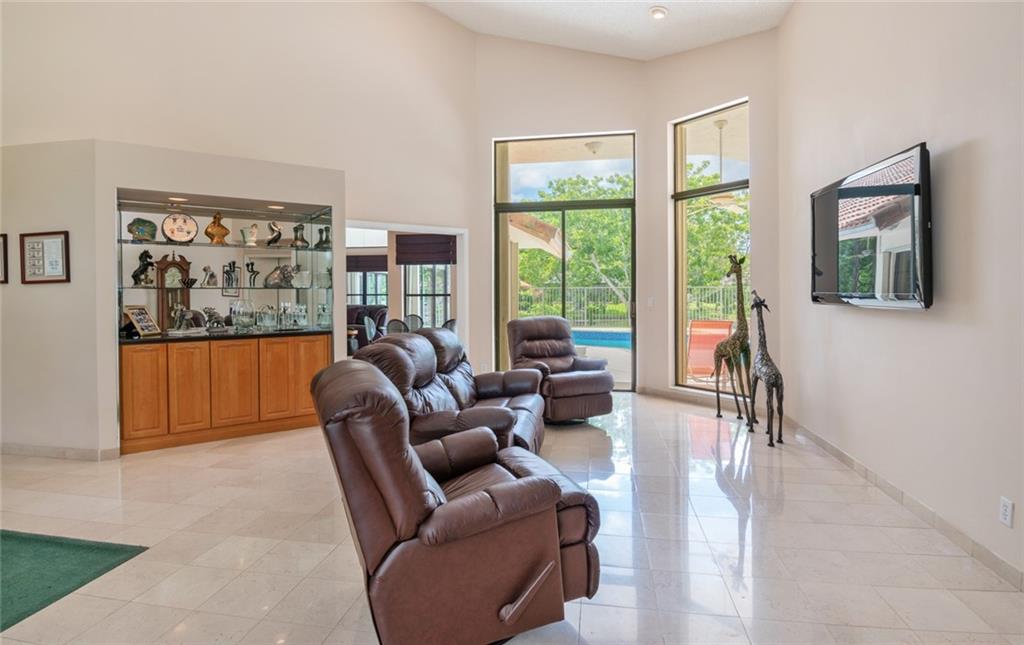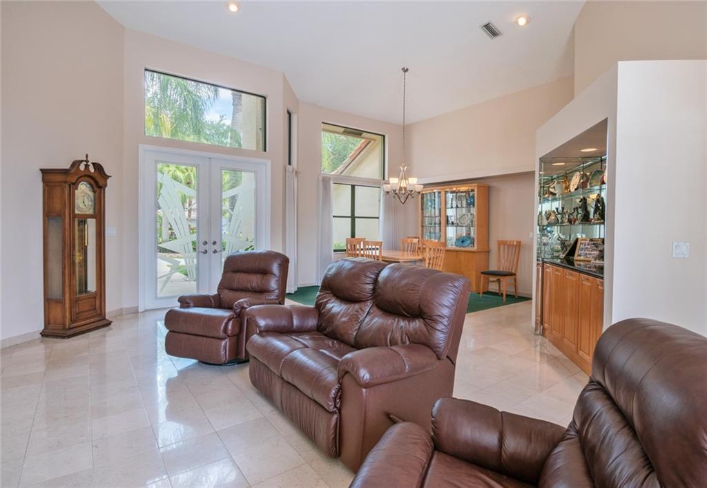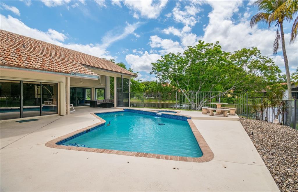 Spacious inviting home in a gated community with beautiful views in Tequesta Lakes that can be seen the minute you walk through the door. This home features an extended covered patio with pool and a custom addition home gym/playroom that is 22 x 18 that overlooks the lake and lit fountain. Situated on a cul-de-sac with a circular driveway, this single story naturally lit open floor plan home has split bedrooms, vaulted ceilings and is perfect for entertaining or just relaxing. Hurricane shutters, pool was redone in 2018, roof 2008