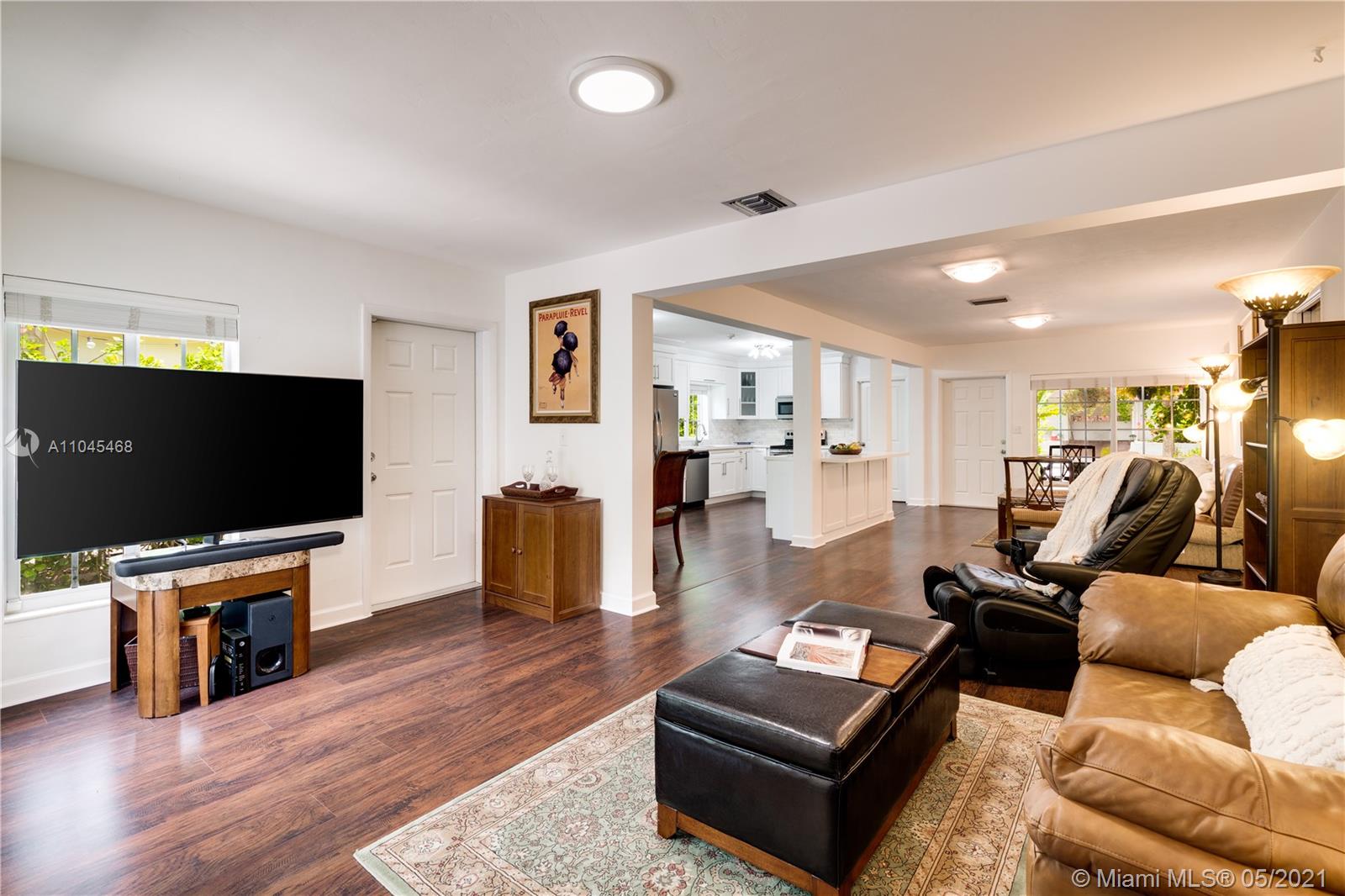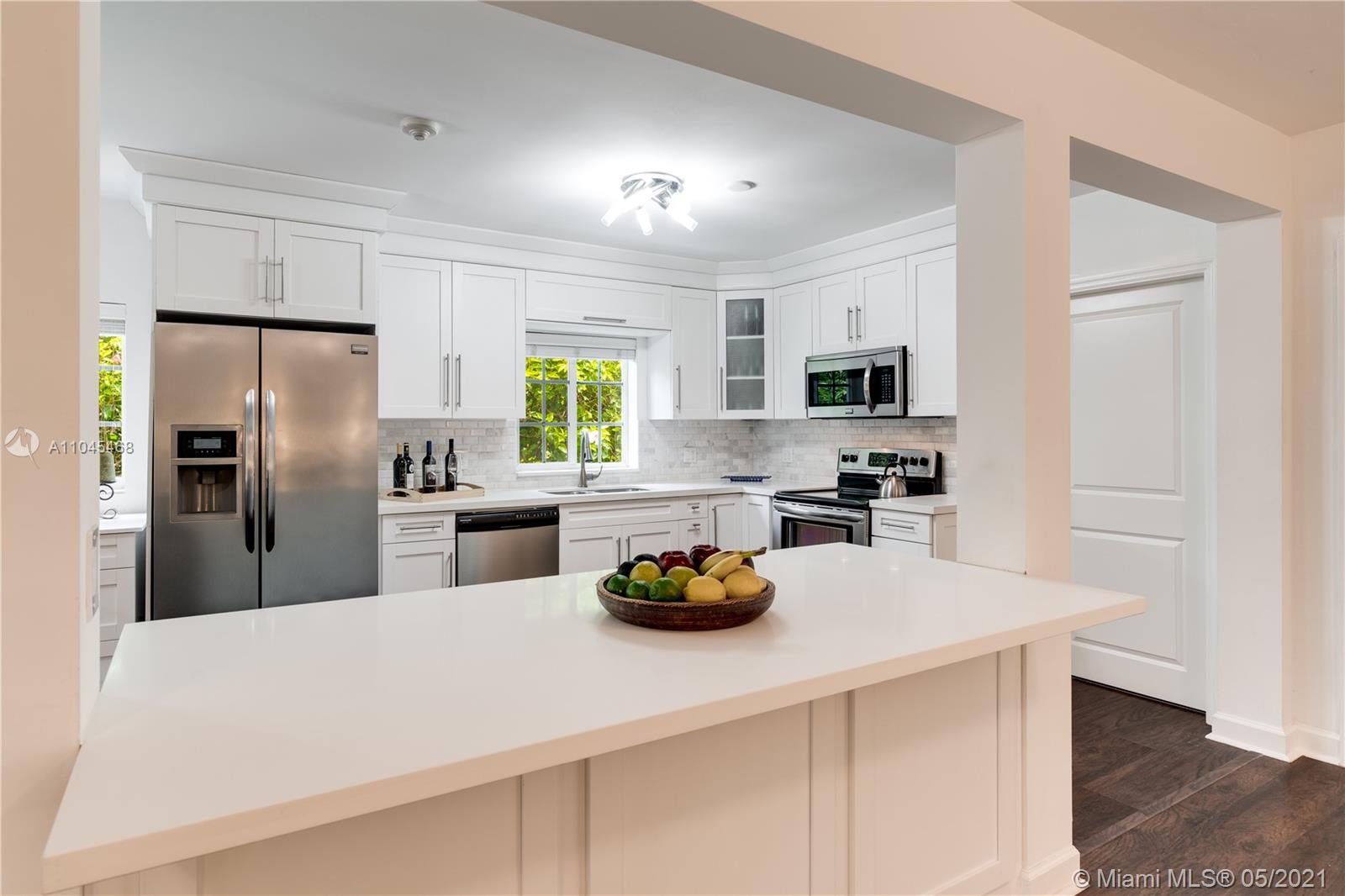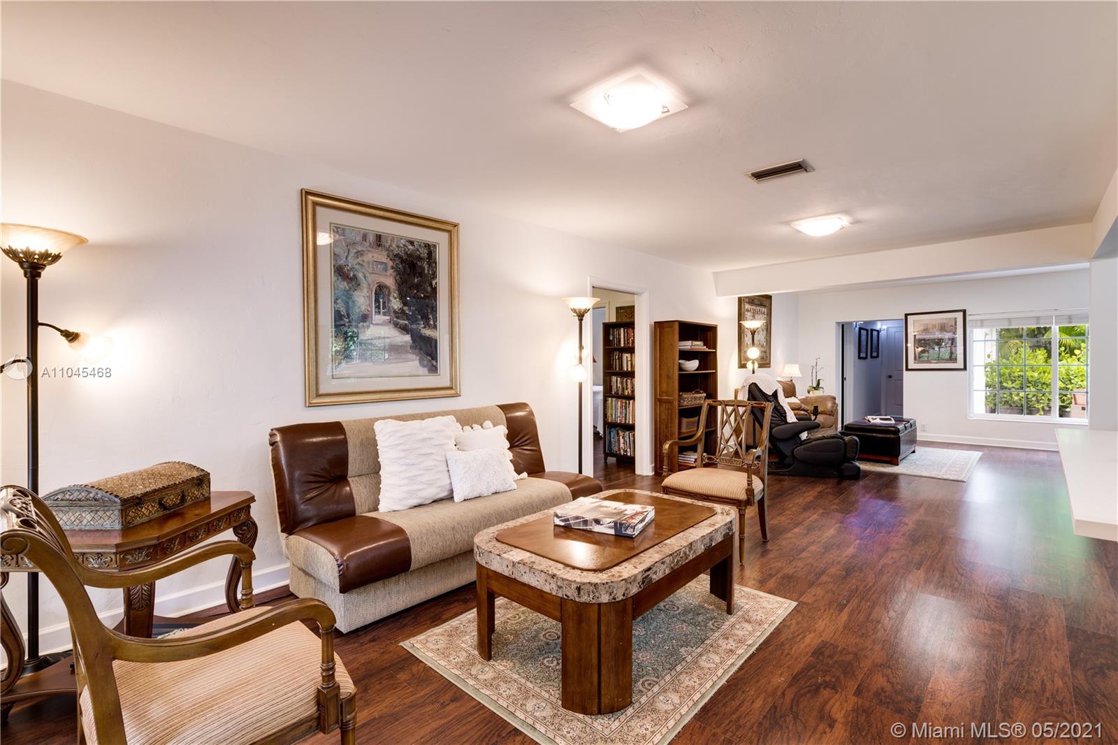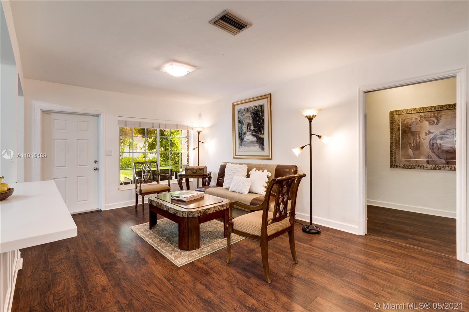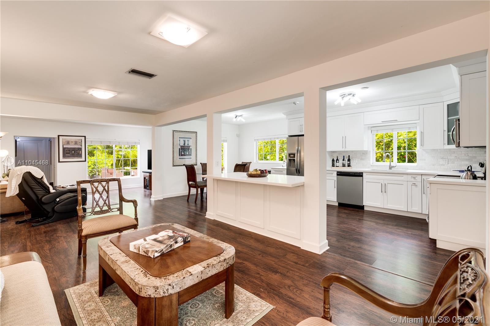 Enchanting curb appeal greets you as you arrive at this charming Coral Gables home on the quietest tucked away street of Costado. 2034 sf per seller. The darling porch framed w/colorful flowering plants is like a welcoming smile. Impact glass & doors gives you peace of mind as you step inside. The sizable & striking kitchen has been attractively updated w/quartz countertops & white cabinetry. Clearly designed to be the star of the show, the kitchen is open to the living areas offering true, usable living space. In keeping with the rest of the home, the patio is low-maintenance while packing a punch-both for its potential & easy living style. Spacious 4 bedrooms, newer a/c, new water heater, new exterior lighting/wiring & new brick driveway make this home very appealing. A Very Special Home