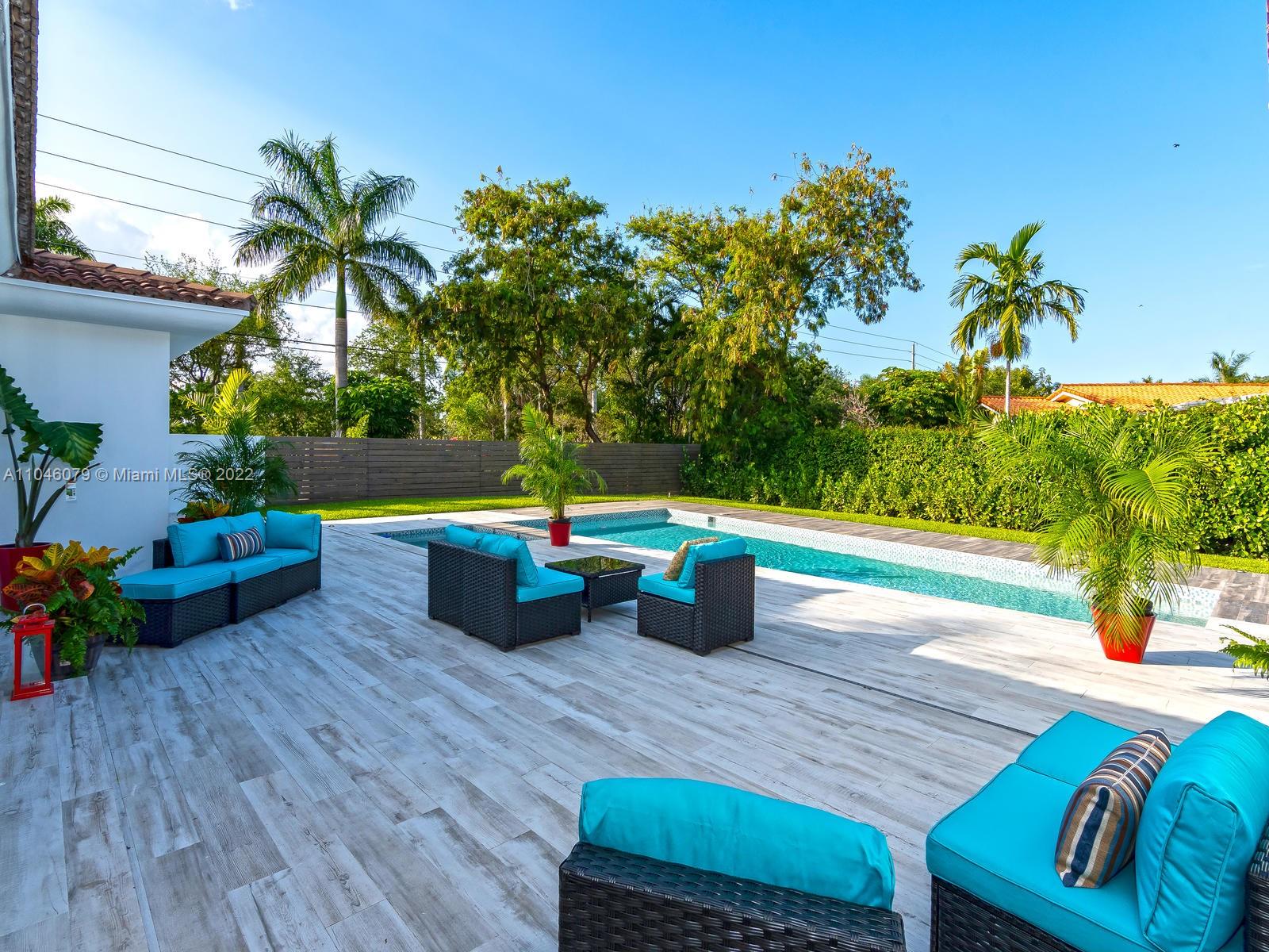 Stunning, totally remodeled and enlarged home with an additional master bedroom and bathroom suite.The property(2.689 sqft.) consist of 3 large bedrooms, 3 full bathroom and 1 powder room. Sits on a beautifully landscaped double lot, located on a semi-private street.Modern bright eat-in kitchen with natural grey quartz countertops, island cooktop with range hood, additional pantry behind the kitchen for added storage space and separate laundry room. All stainless steel BOSCH appliances. New and spacious master with walk-in closet and built-in cabinetry. Master bathroom has wall to wall Italian designer tiles, white quartz countertops, rain shower and soaking bathtub. Open floor plan with Italian tiles throughout. Extra large pool with Jacuzzi. Double cars garage with automatic opener.
