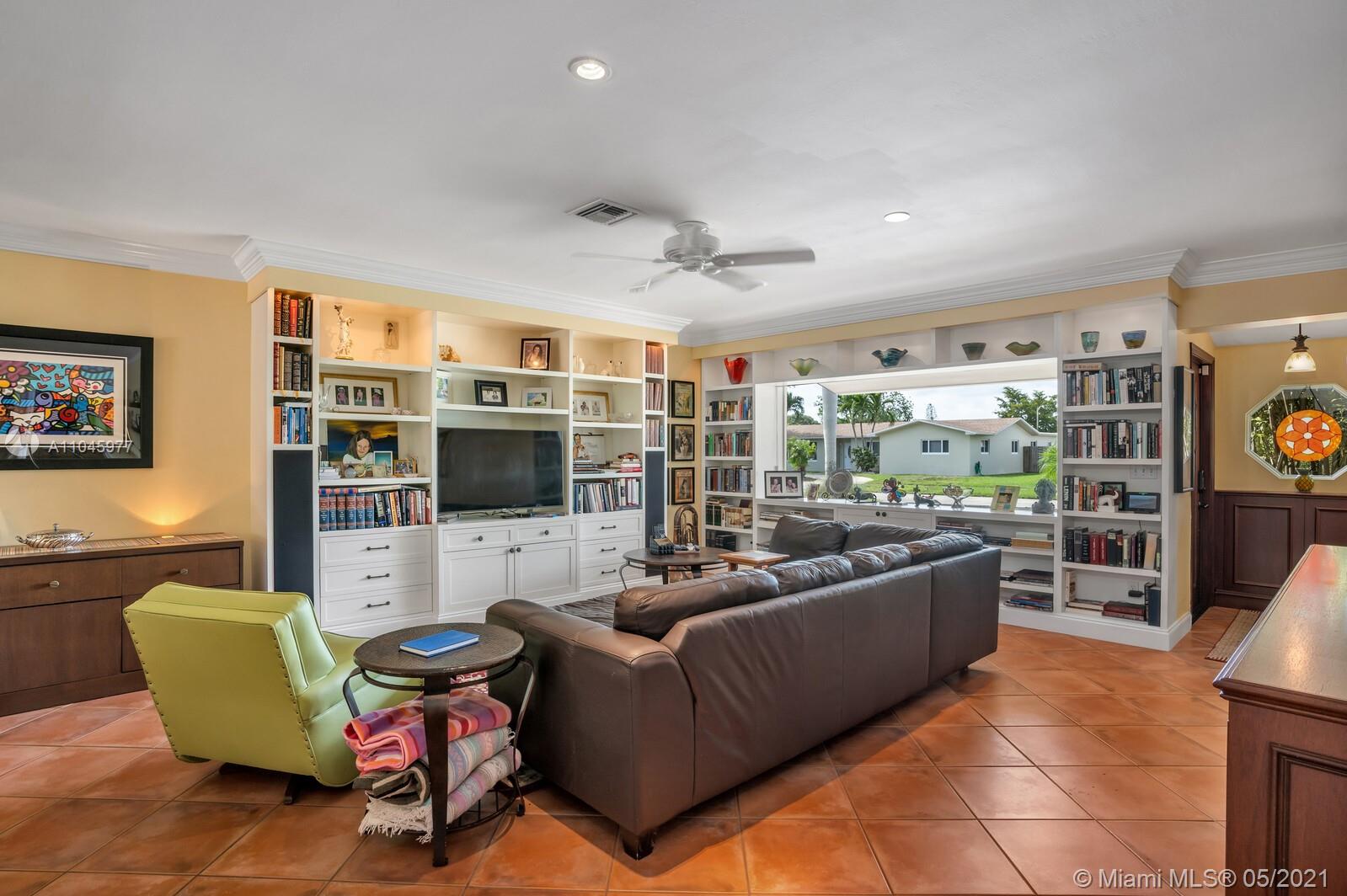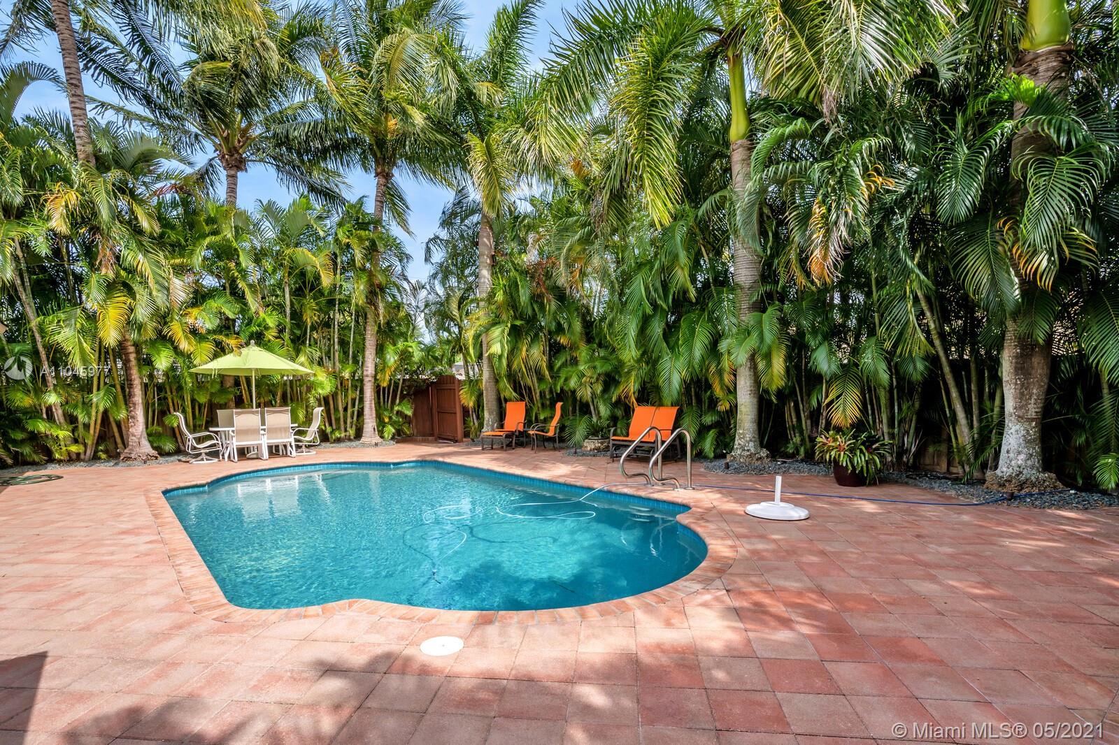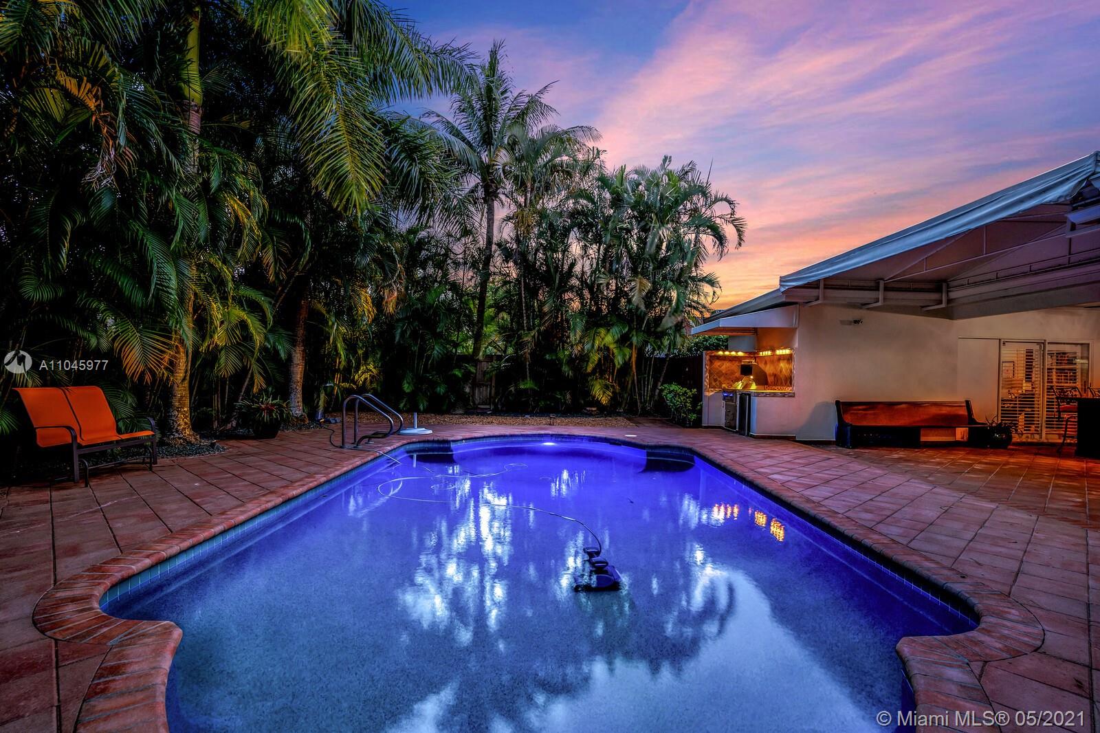 Secluded tropical paradise in the exclusive Hollywood Hills! Magnificent lush gardens lead you to beautifully appointed open living spaces enhanced by a custom-built entertainment center, formal dining, and a sliding glass door allowing flawless integration between the indoors and outdoors. Modernized kitchen offering garden/pool views and direct access to the backyard. The outside is equipped with a saltwater pool with Pebble Tec finish, IntelliBrite pool light, and Dolphin cleaning robot. Outdoor great room offers 400sqft shaded area perfect for entertaining, marble table/bar w/ built-in storage & lighting, custom built-in Lynx Pro + mini-fridge. Master bedroom w/ plantation shutters, his and hers custom California closets, and direct access to the pool complete this offering.
