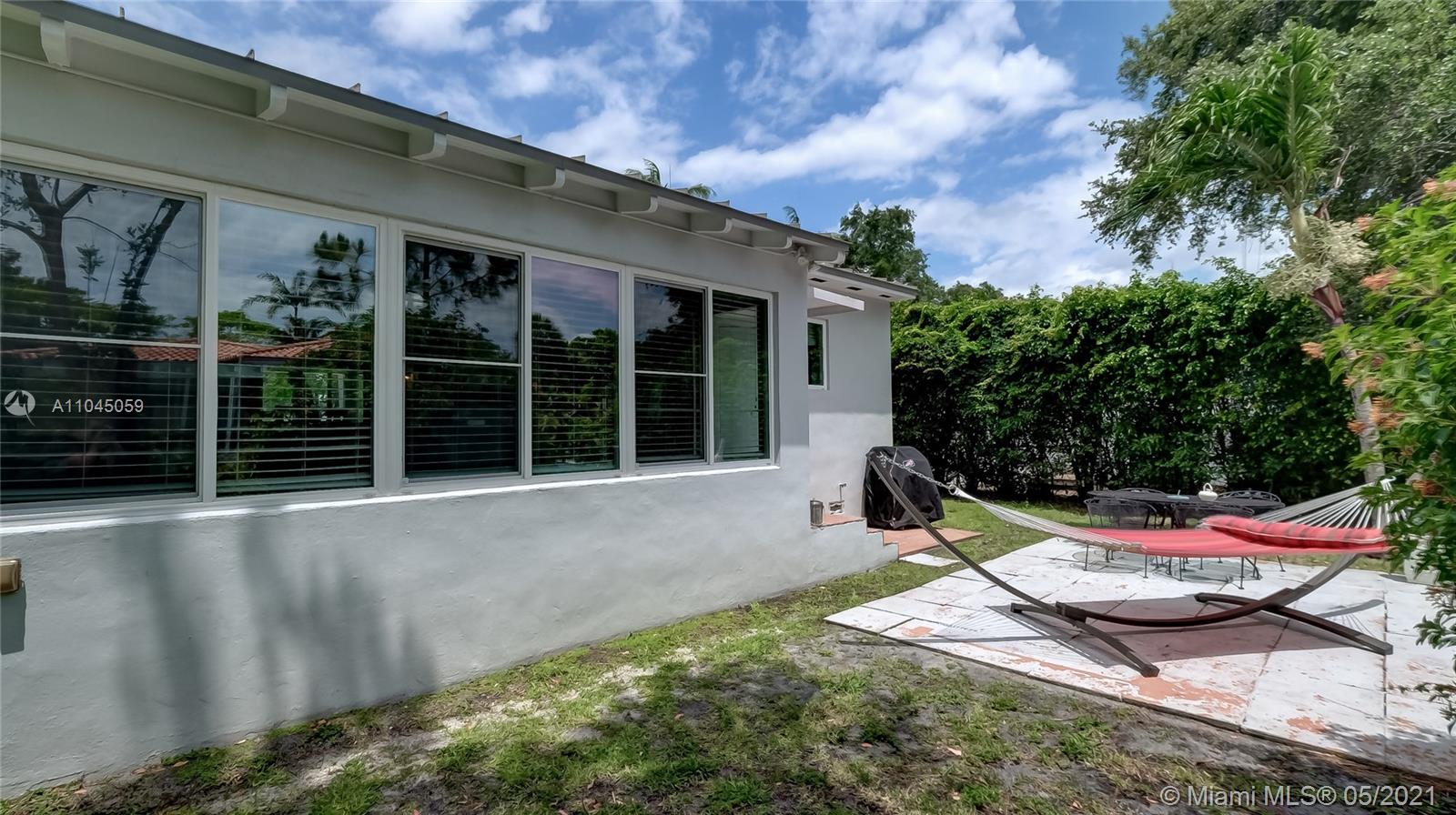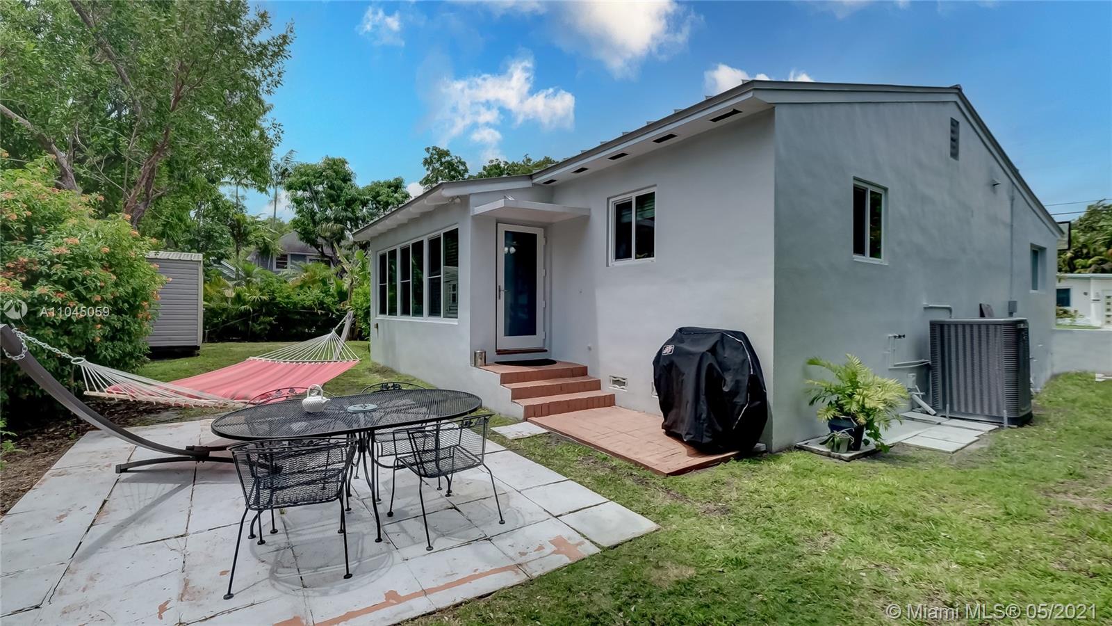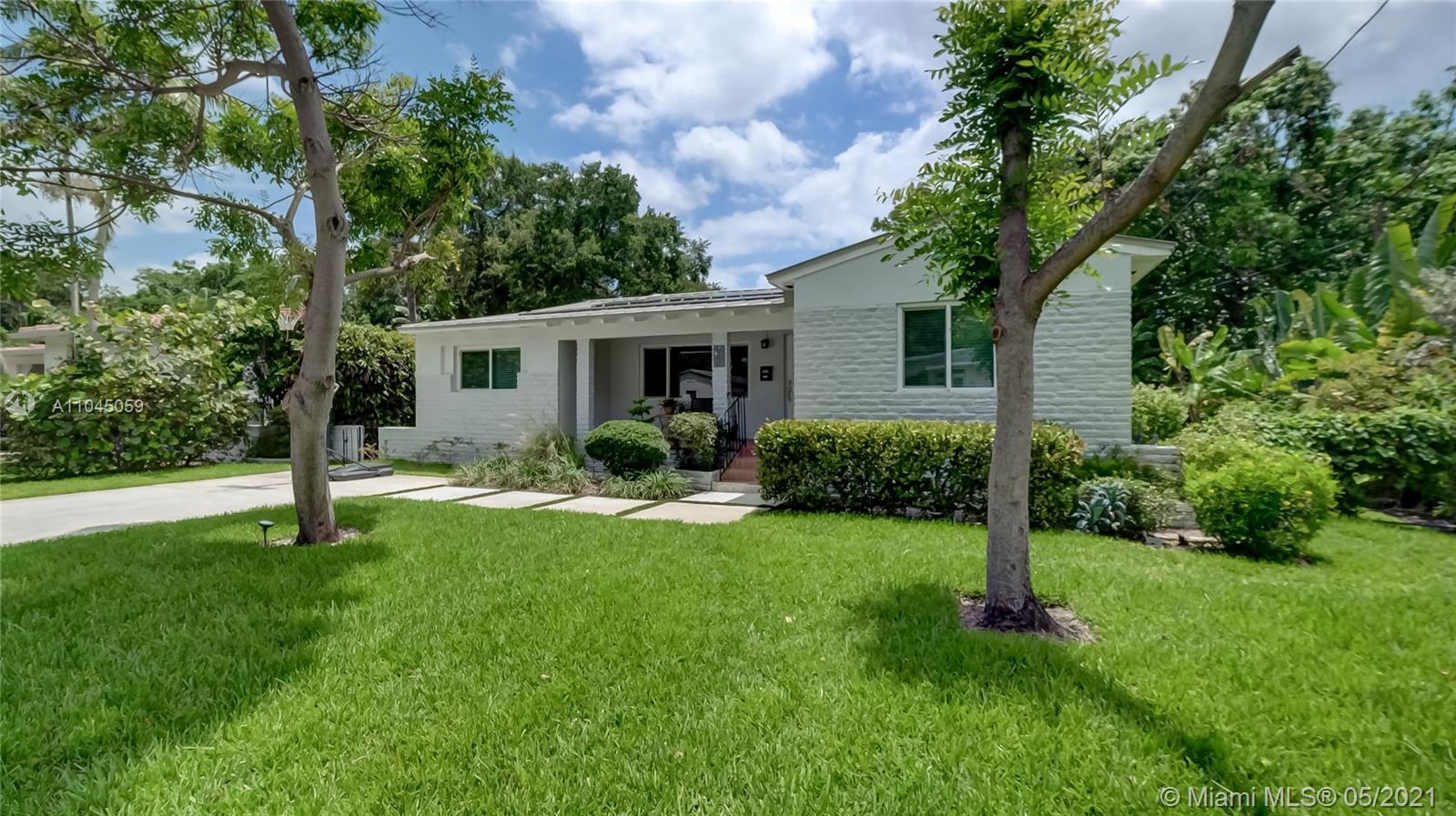 Location, location, location. This Miami Shores mid century home has so much to offer...three bedrooms/three baths with 1,811 s.f. per architectural drawings, beautiful wood floors except in kitchen and family room, updated electric and plumbing, newer aluminum roof, solar panels, air conditioning unit, 10x12 shed to name a few. Garage was just converted to bedroom/bath and laundry room with permits. Centrally located east of Biscayne Boulevard in Miami Shores Village which offers a recreation center, golfing, aquatic center, parks and more. And if all of this is not enough, the property is in flood zone X.
