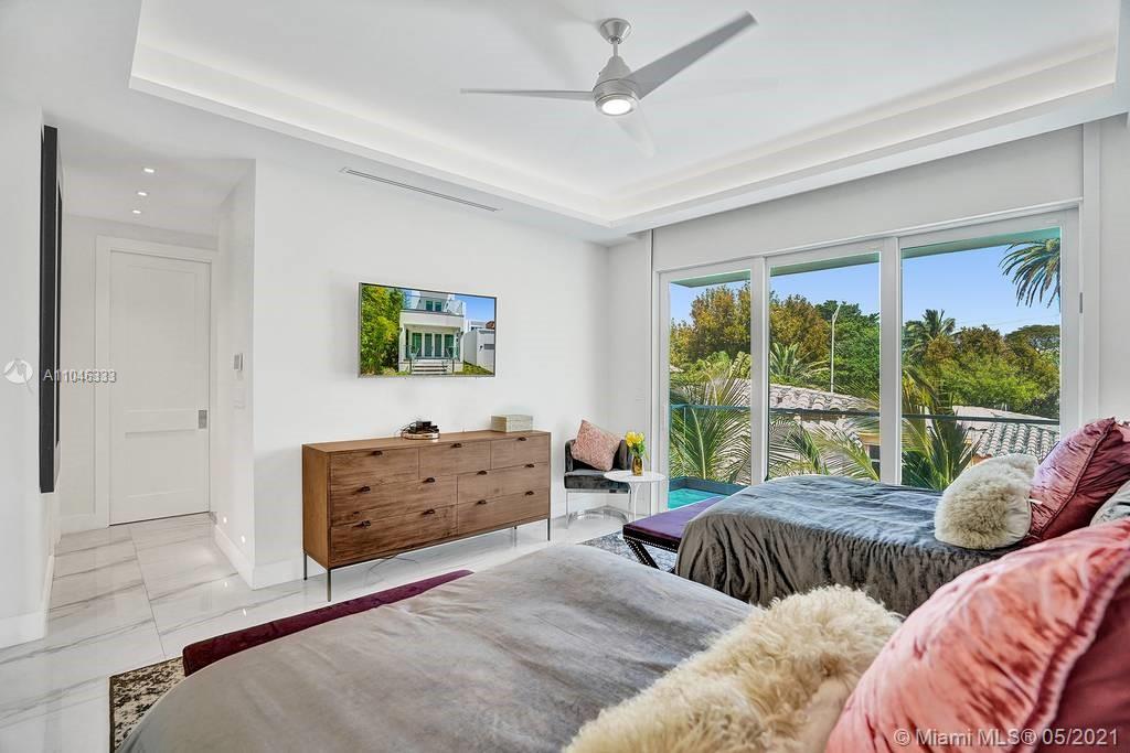 Gorgeous modern single family home in the heart of Miami Beach. The home boasts 5 bedrooms, and 4 bathrooms, including 1 bedroom on the main floor. The home was professionally designed with the most luxurious finishes. A real entertainers dream home. The home offers a true indoor-outdoor lifestyle with sliding doors throughout. The backyard has an elegant pool deck with a long heated pool and spa. The interiors have been finished with high-end appliances and a beautiful staircase. The home has a full smart home technology system, with built-in speakers, cameras throughout, electronic shades enabling the owner to monitor the entire residence remotely. From the bedroom porches you can enjoy breathtaking views of the sunset and partial bay views. Truly a most beautiful home!
