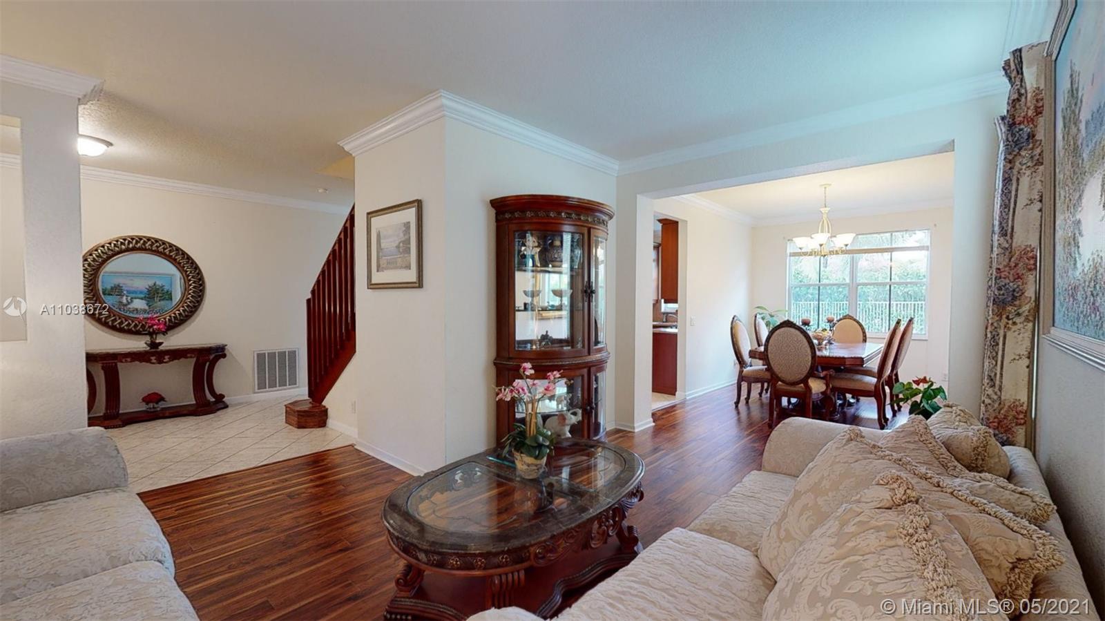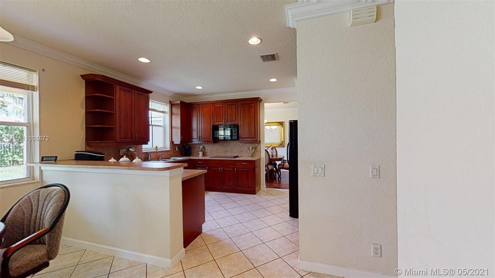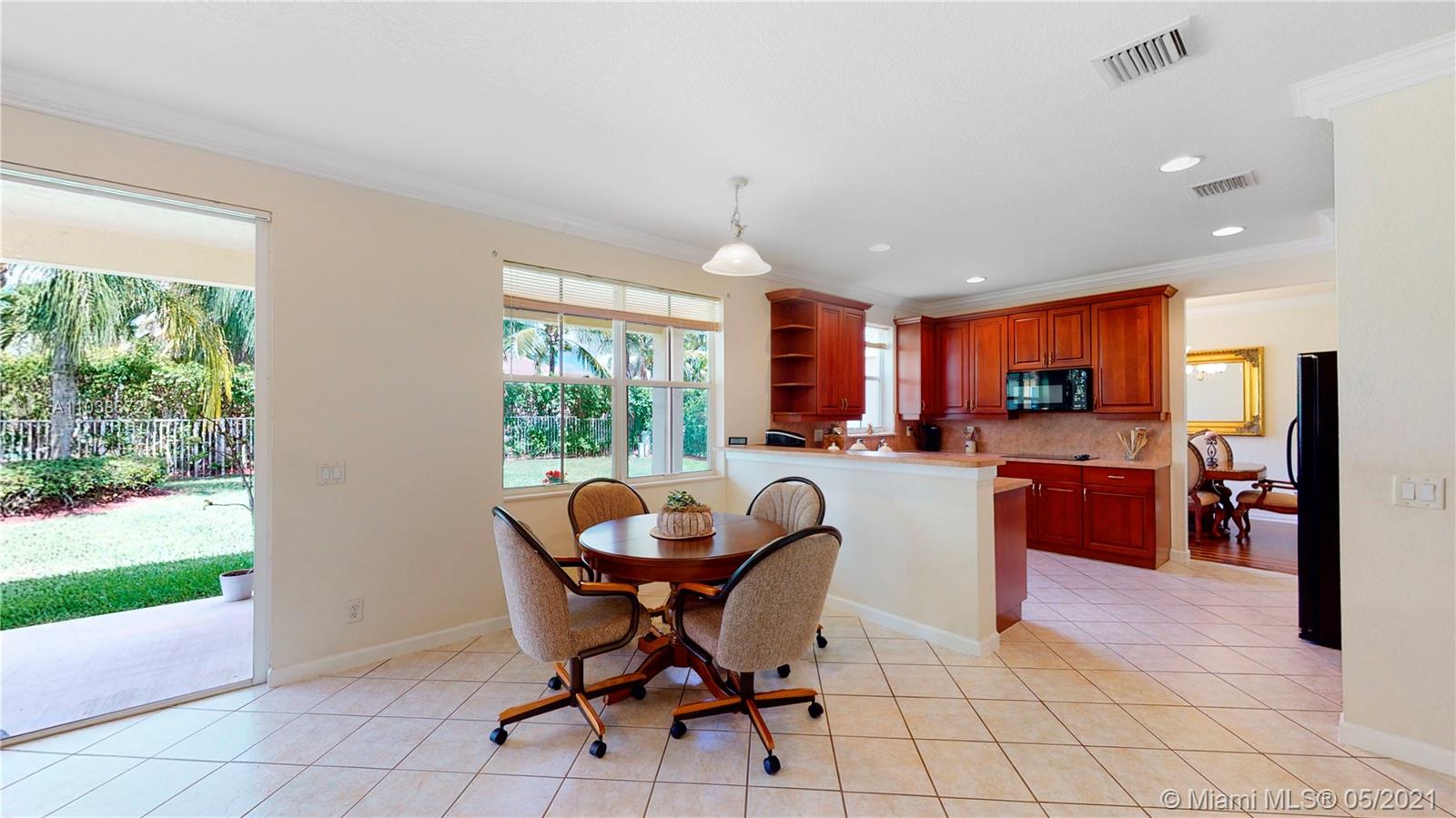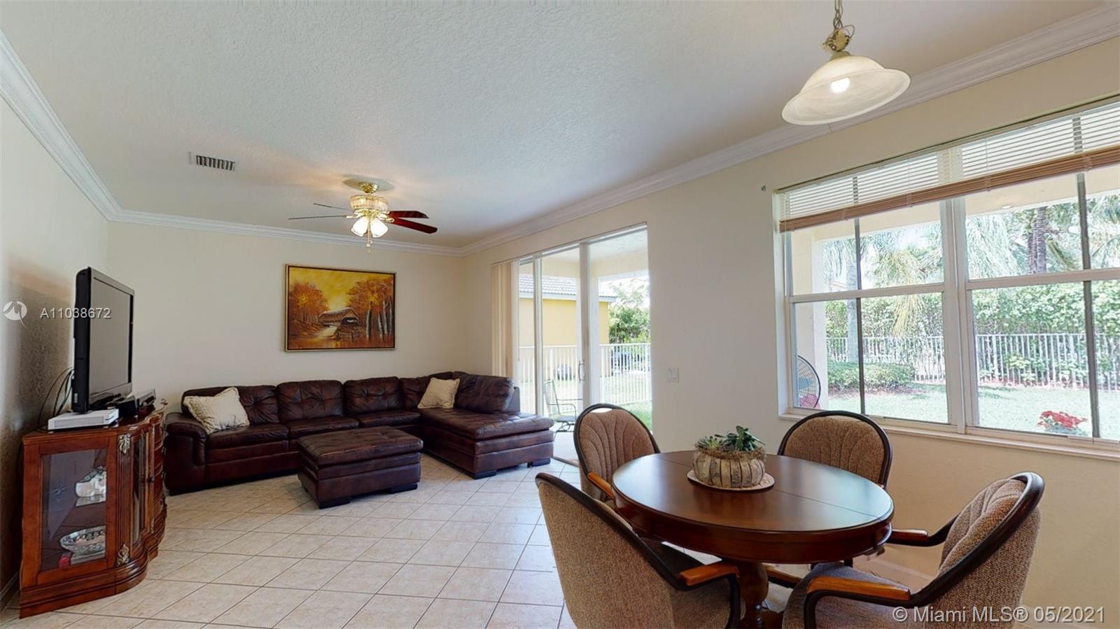 Elegant 5 bedroom Estate home located in the gorgeous community of Savanna!! This home has been meticulously maintained by its original owners. Unique Fuchsia model which offers a guest bedroom and full bathroom in a separate hallway upstairs for privacy. Upstairs impact windows in some rooms. Crown molding and neutral tiles downstairs, premium laminated flooring on stairs, upstairs, and formal living/dining area. Immaculate kitchen with 42" rich cherry wood cabinets/ over-counter range and double oven. Covered porch at entry level and backyard. Oversized lot- great for swimming pool and entertainment. The community of Savanna is truly a resort-style community with an incredible clubhouse, swimming pools, a waterslide, playgrounds, tot lot, basketball, Tennis Courts, and mini golf.