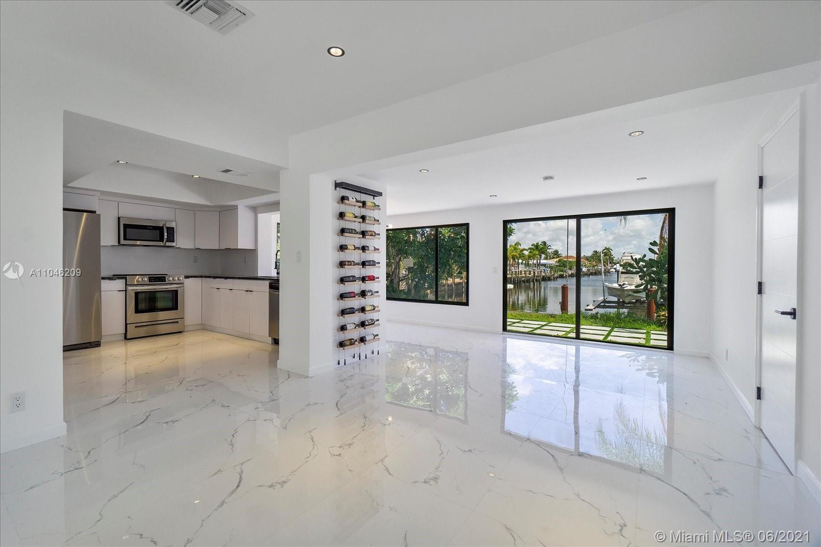 Beautifully renovated, modernized canal front house with stunning views! This boaters paradise, gorgeous home rests at the end of a canal with approximately 40' concrete seawall with easy ocean access! 3 full baths and 2 of the 3 bedrooms are masters with canal views and backyard access. Room for pool in backyard! This complete smart home features in-Ceiling Home Theater Speaker System, Nest thermostat, Ring video doorbell & LED lighting throughout. All new impact resistant doors, windows & garage door is installed. Stay cool & comfortable with air conditioned, smart garage including a new washer & dryer. The kitchen is fully upgraded with brand new appliances, cabinets & granite counter tops. Brand New Roof!