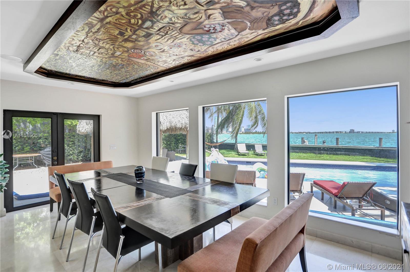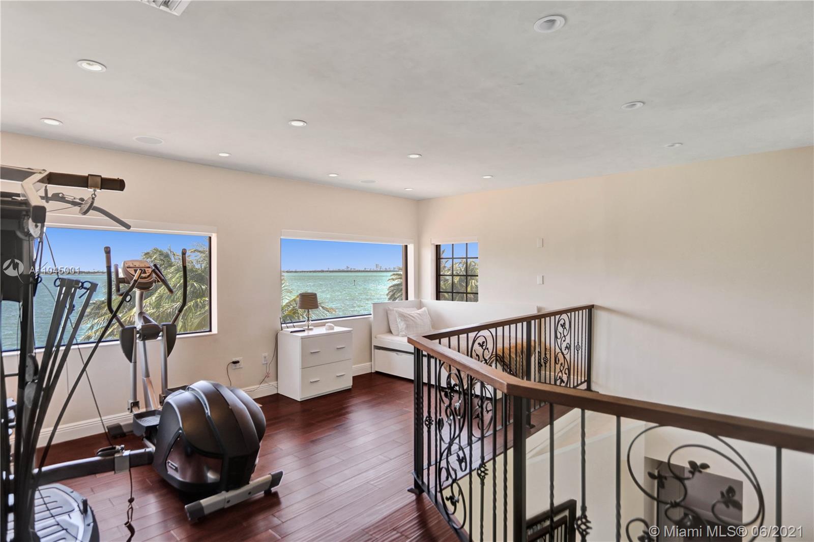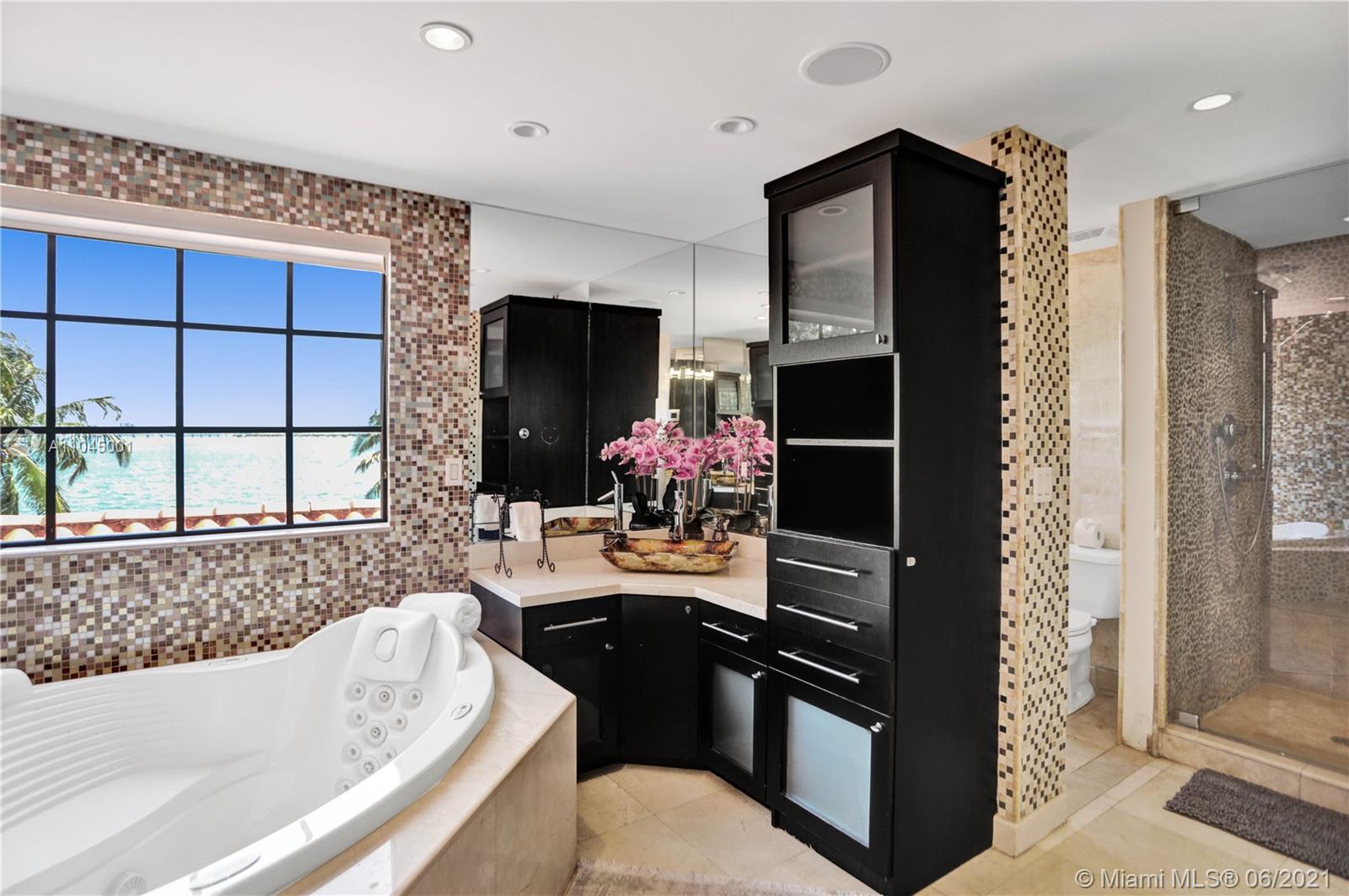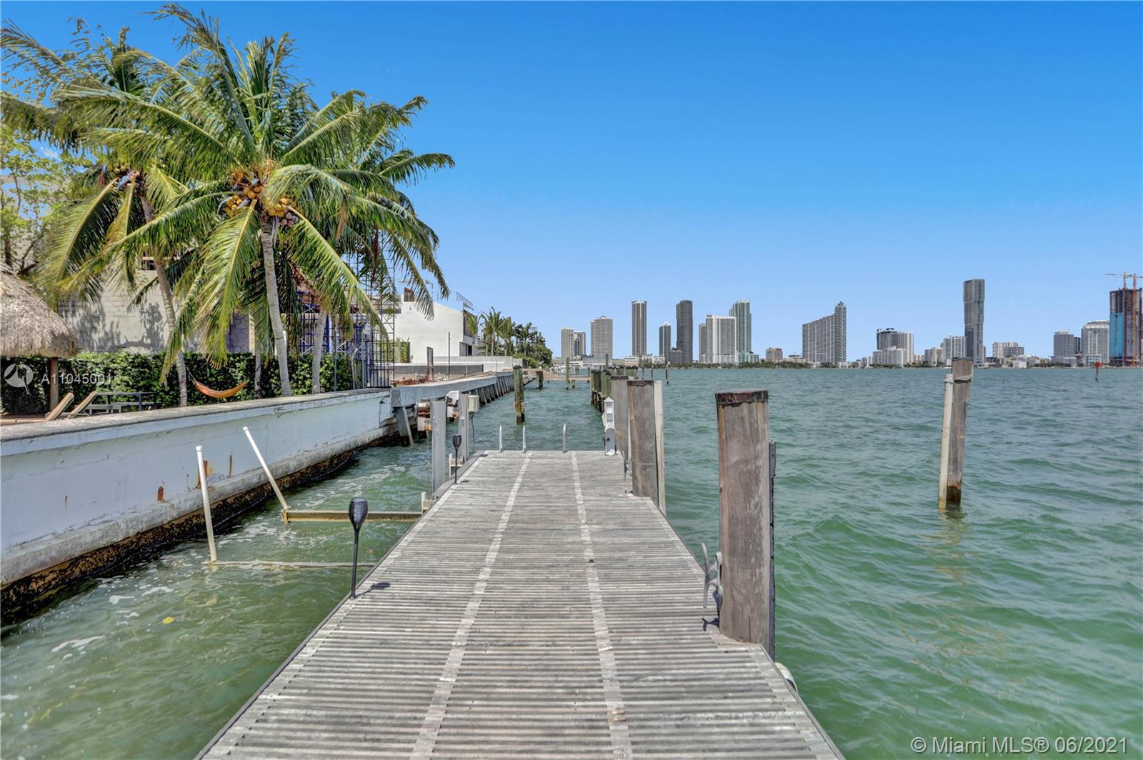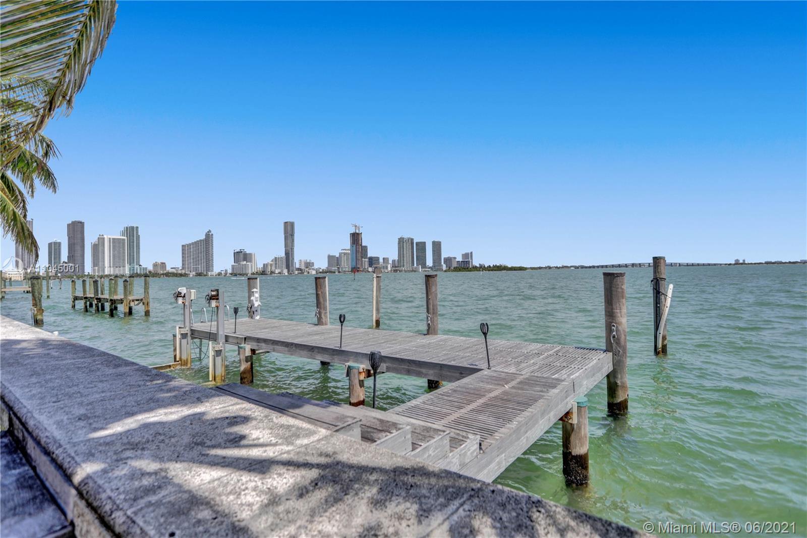 Beautiful Mediterranean three story gated waterfront home located in the prestigious Venetian Isles with amazing wide views of Biscayne Bay and Miami skyline from almost every room! 6 bedrooms and 6 baths, it was rebuilt in 2005 and has open light and bright living areas that have marble floors in the main areas and wood flooring in the bedrooms. Impact windows and doors. The open kitchen has stainless steel appliances including wine cooler. The main suite has a custom closet and master bath with spa tub and separate shower. The grounds have lush landscaping and a heated pool with mosaic tile. There is a Tiki hut and a 65 ft. dock with water frontage of 75 feet. Sunset views plus a great location!