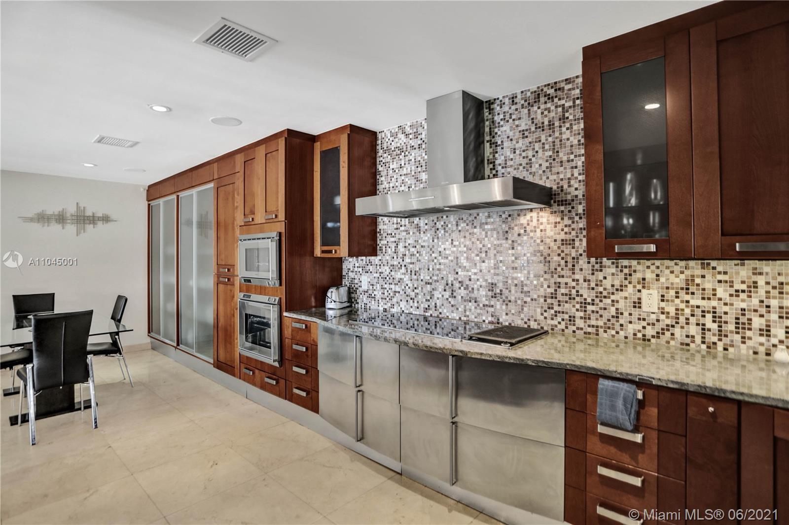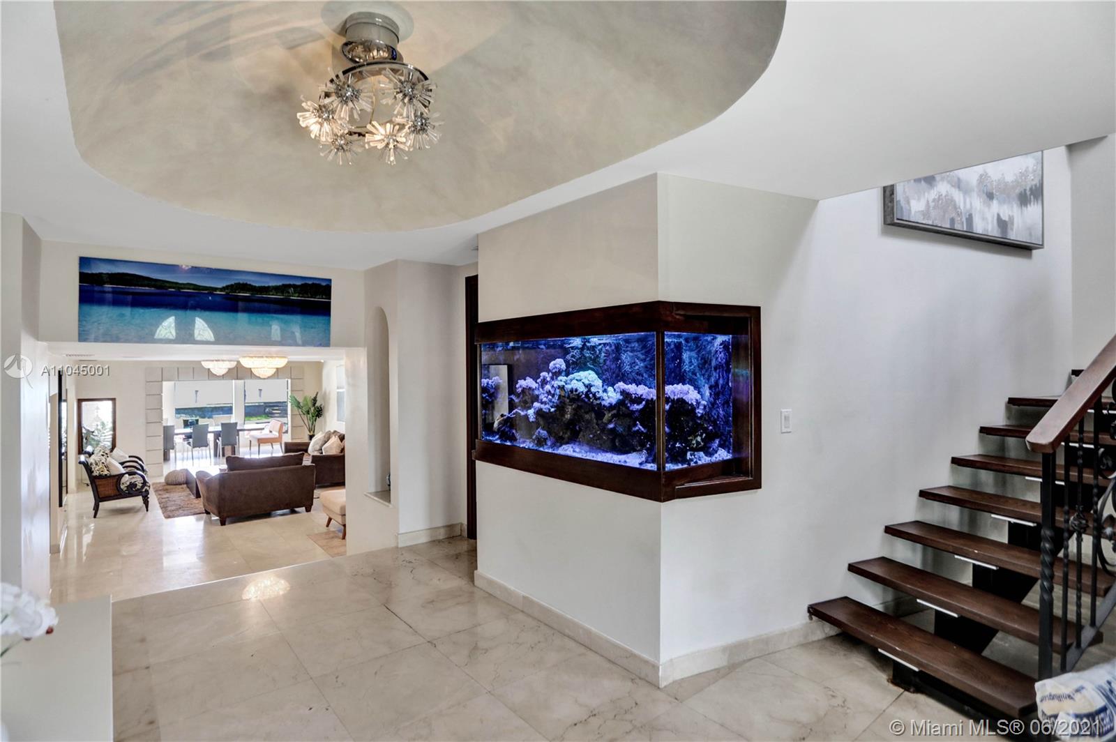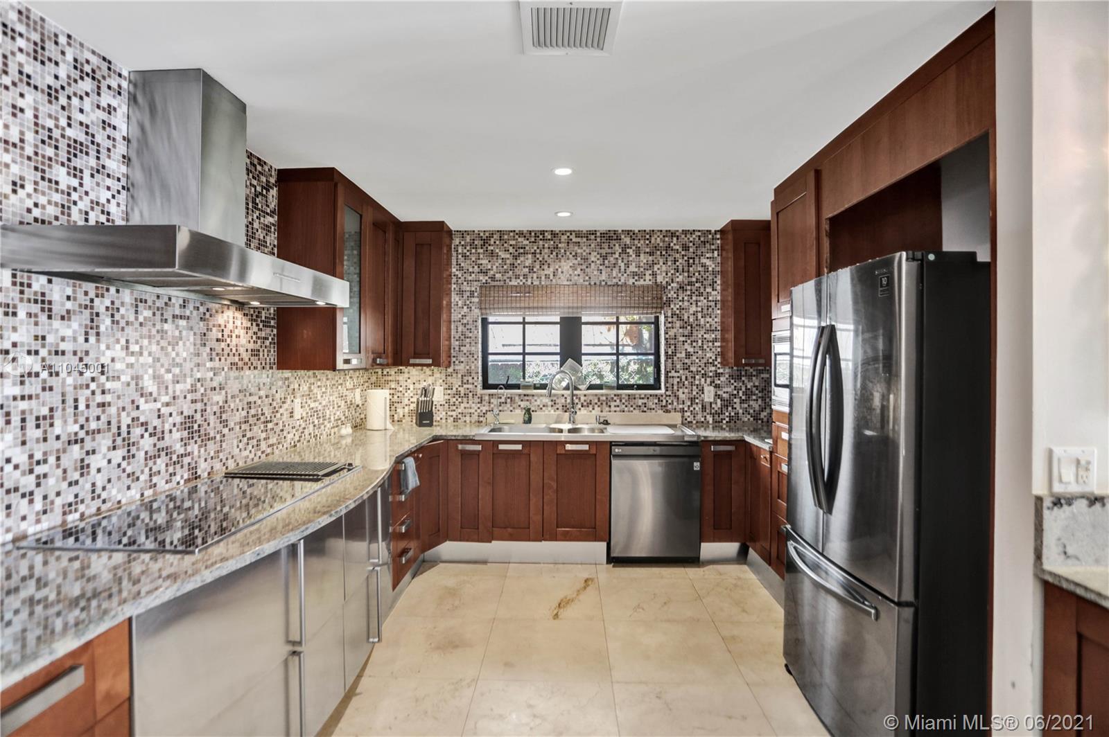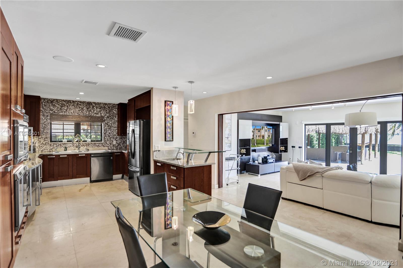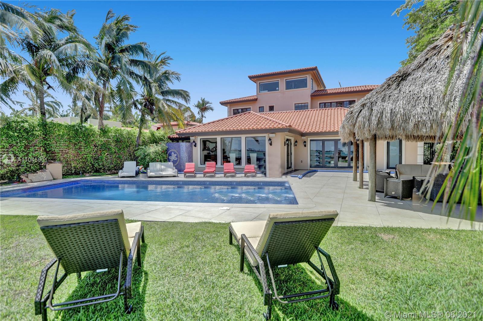 Beautiful Mediterranean three story gated waterfront home located in the prestigious Venetian Isles with amazing wide views of Biscayne Bay and Miami skyline from almost every room! 6 bedrooms and 6 baths, it was rebuilt in 2005 and has open light and bright living areas that have marble floors in the main areas and wood flooring in the bedrooms. Impact windows and doors. The open kitchen has stainless steel appliances including wine cooler. The main suite has a custom closet and master bath with spa tub and separate shower. The grounds have lush landscaping and a heated pool with mosaic tile. There is a Tiki hut and a 65 ft. dock with water frontage of 75 feet. Sunset views plus a great location!