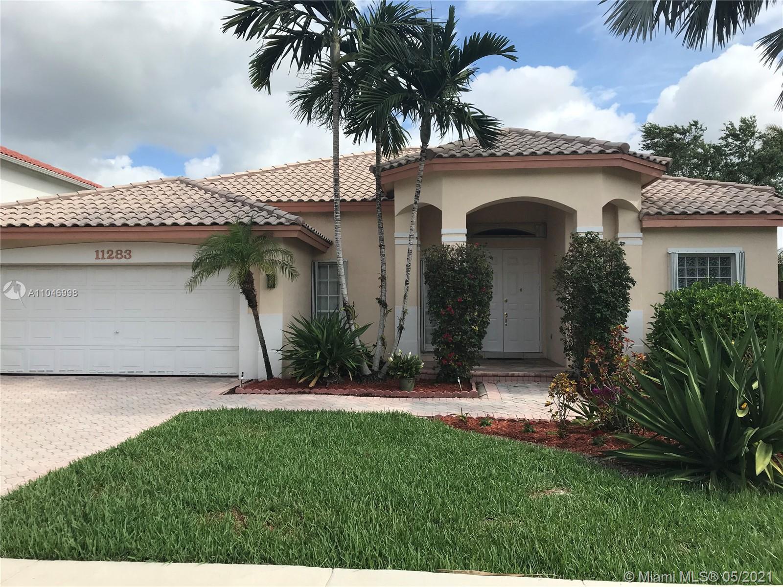 Elegant, executive single story 3/2 home with 2-car garage located on a corner lot in the Riviera Section of Doral Isles. The home has been remodeled with beautiful granite kitchen counters, brand new SS appliances, Spanish marble and wood floors. Bathrooms have been updated with floor to ceiling crema marfil marble tiles.