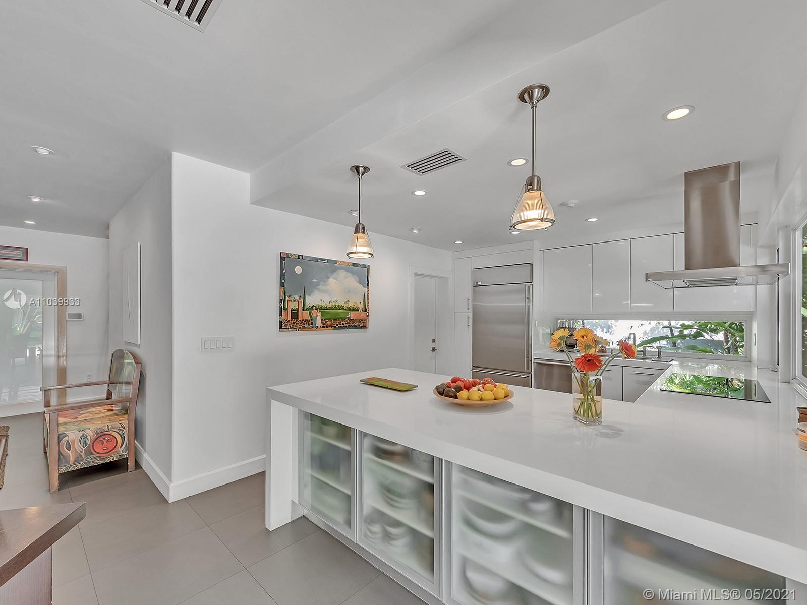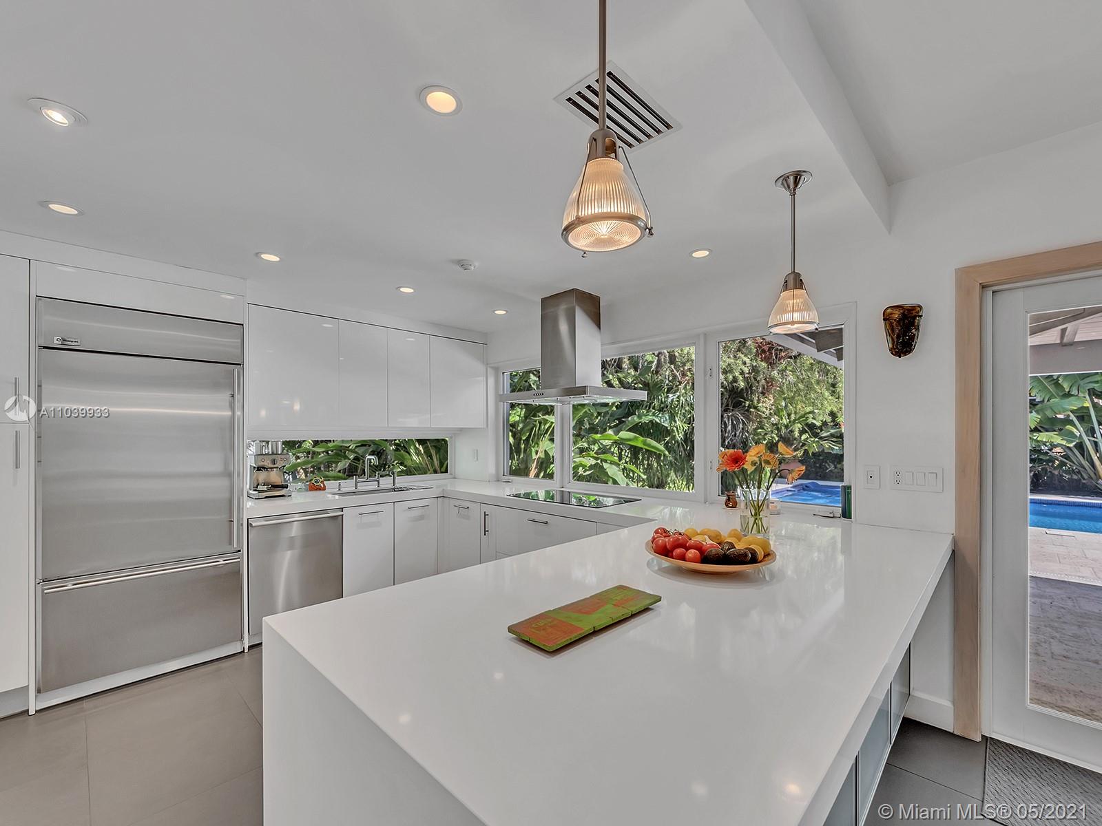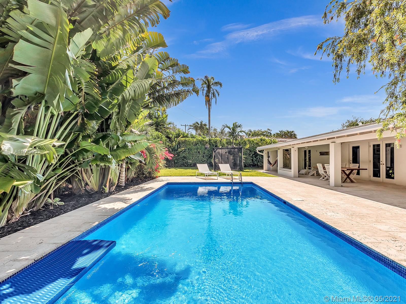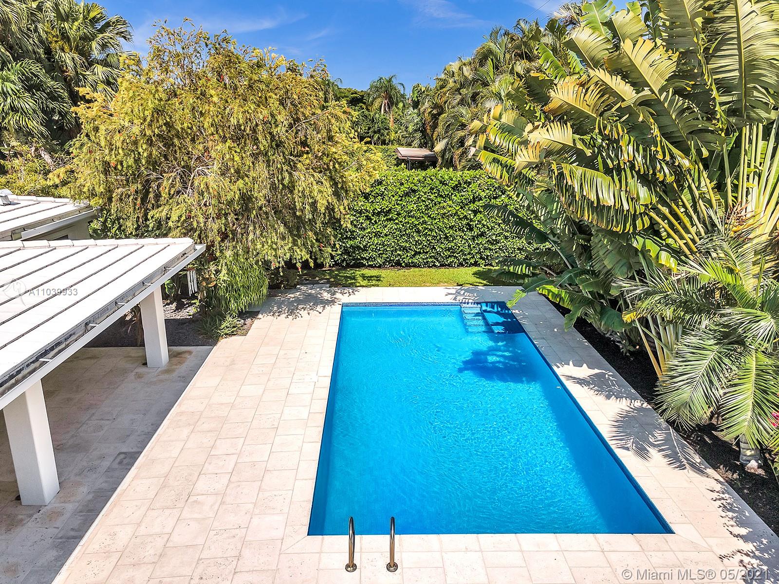 Welcome to a lovely home nested in desirable Coral Gables Riviera Section 2, 2748 Sq.Ft Actual Area. Enjoy this spacious 3 bedroom 3 full bath, completely renovated from the studs in 2010, features open kitchen with Euro kitchen cabinetry (white Italian) ample area for family breakfast/brunches, top-of-the-line stainless steel appliances, living & dining area with lots of natural light, 2X2 quartz flooring throughout, two en-suite bedrooms with walk in closets, master bath with shower and granite carved tub made in Bali, impact windows & doors, built in speakers; Crystal tiled pool, salt system, 9ft deep,15x30. Exterior area surrounded by manicured landscaping ideal for relaxing & entertaining. Well for irrigation, sprinklers, electrical lines, phone & cable buried. 1 car garage, must see!