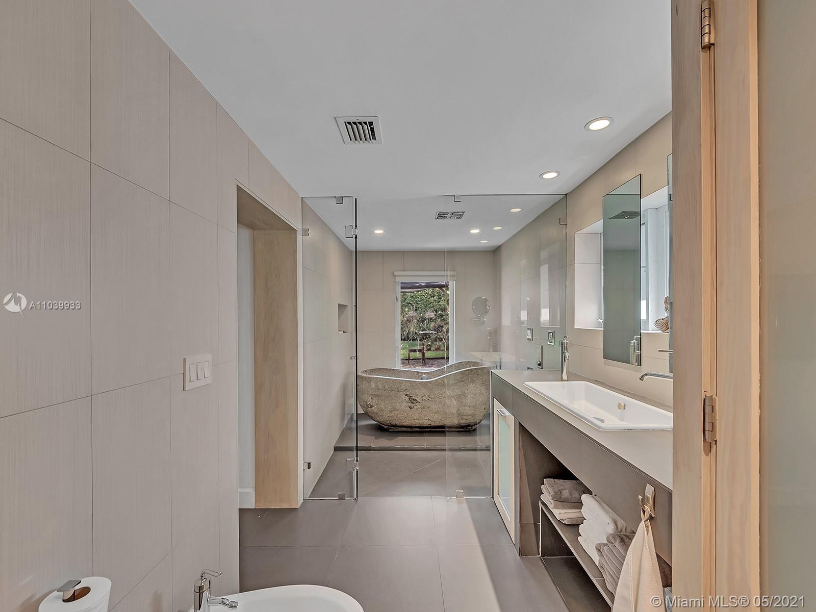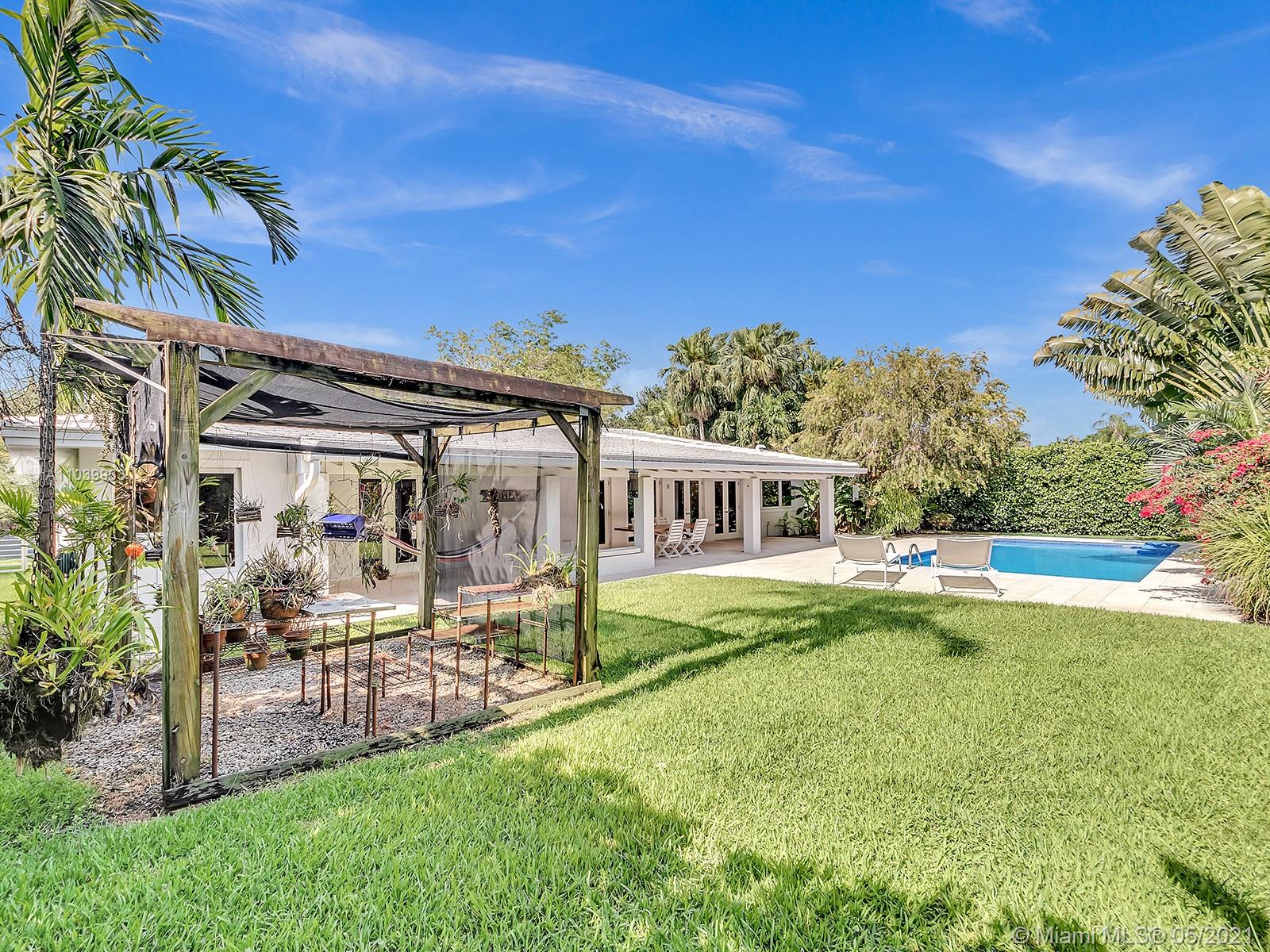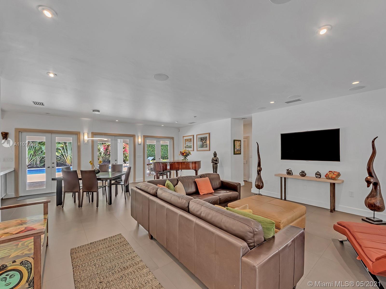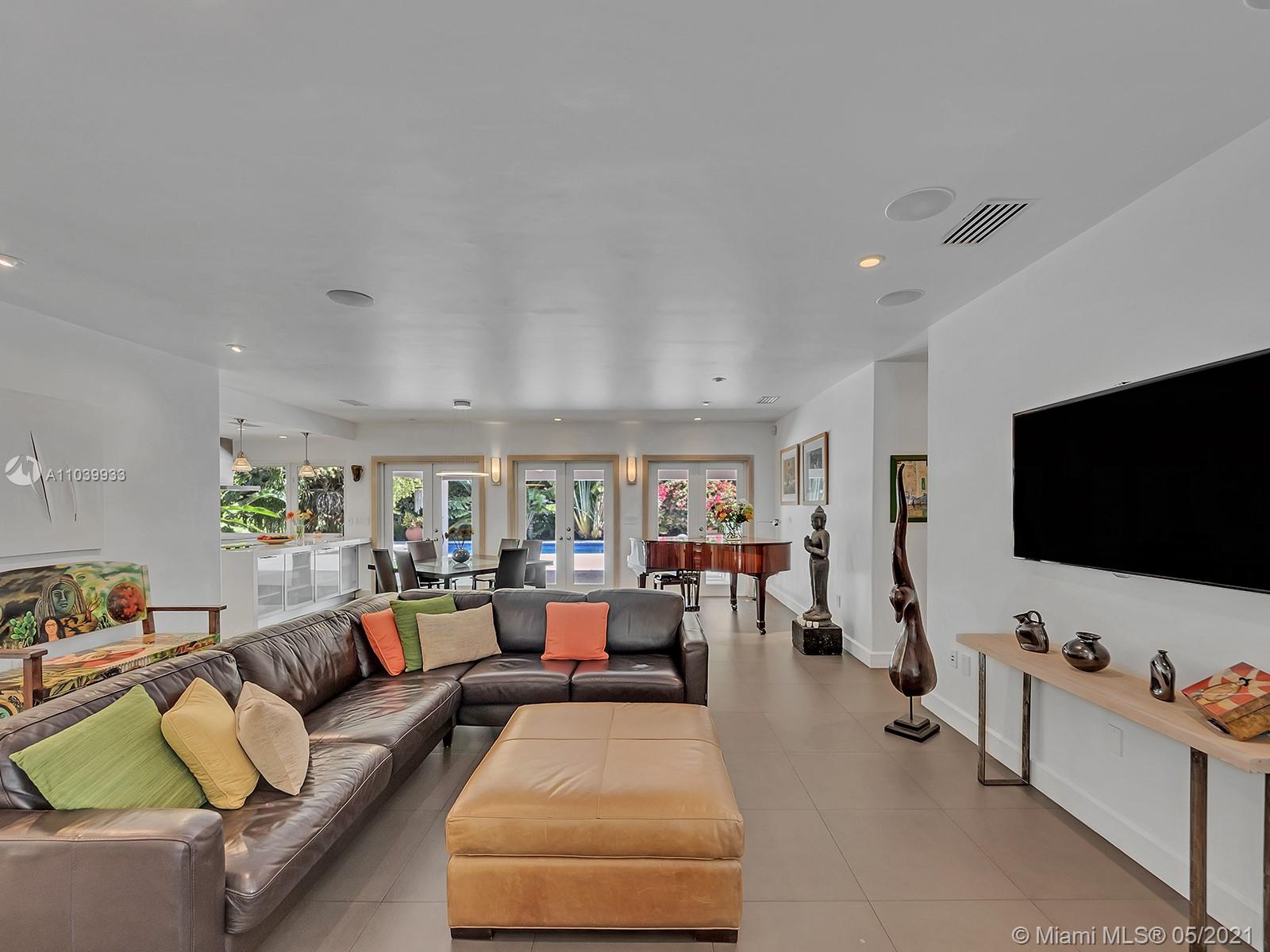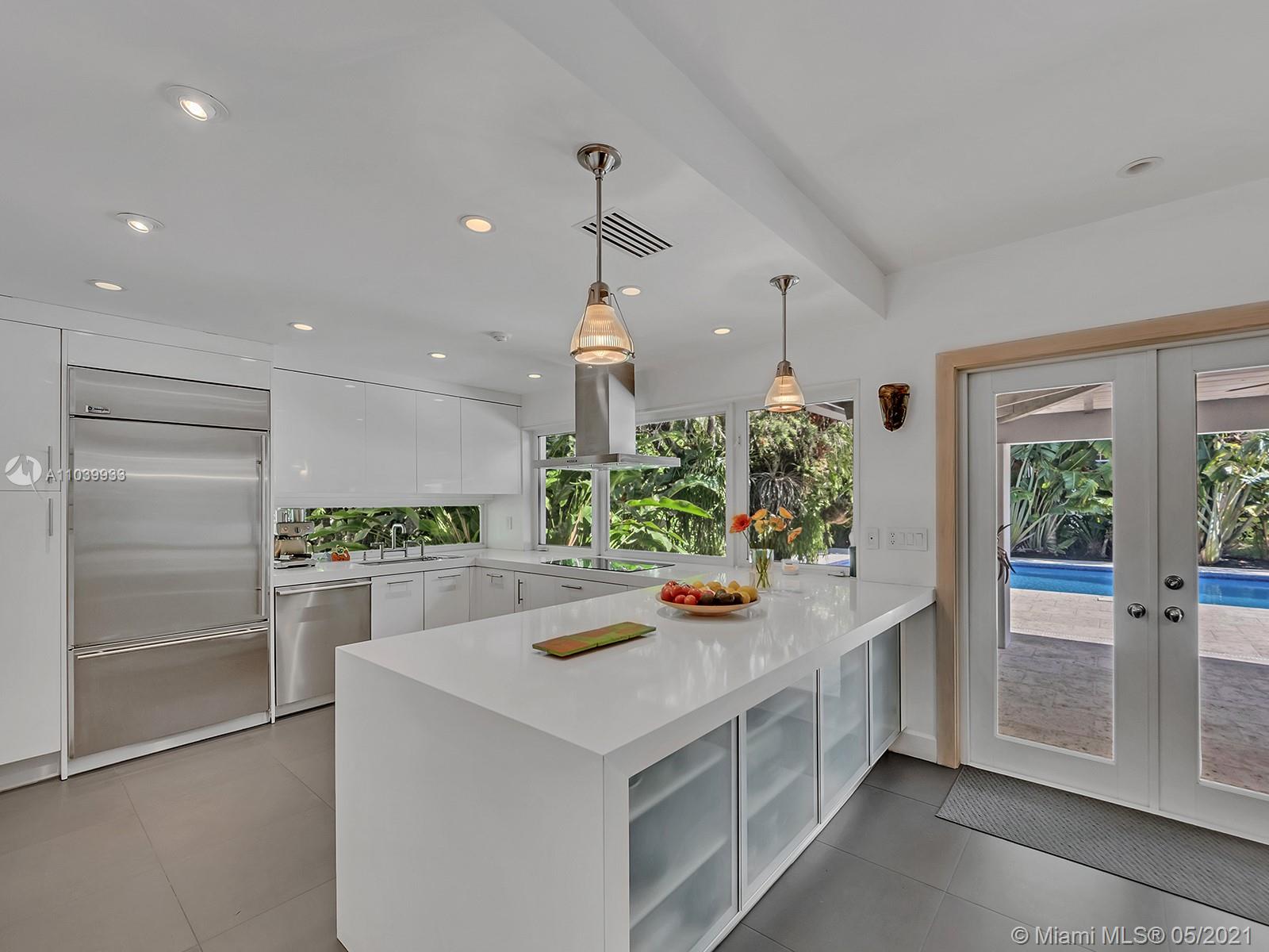 Welcome to a lovely home nested in desirable Coral Gables Riviera Section 2, 2748 Sq.Ft Actual Area. Enjoy this spacious 3 bedroom 3 full bath, completely renovated from the studs in 2010, features open kitchen with Euro kitchen cabinetry (white Italian) ample area for family breakfast/brunches, top-of-the-line stainless steel appliances, living & dining area with lots of natural light, 2X2 quartz flooring throughout, two en-suite bedrooms with walk in closets, master bath with shower and granite carved tub made in Bali, impact windows & doors, built in speakers; Crystal tiled pool, salt system, 9ft deep,15x30. Exterior area surrounded by manicured landscaping ideal for relaxing & entertaining. Well for irrigation, sprinklers, electrical lines, phone & cable buried. 1 car garage, must see!