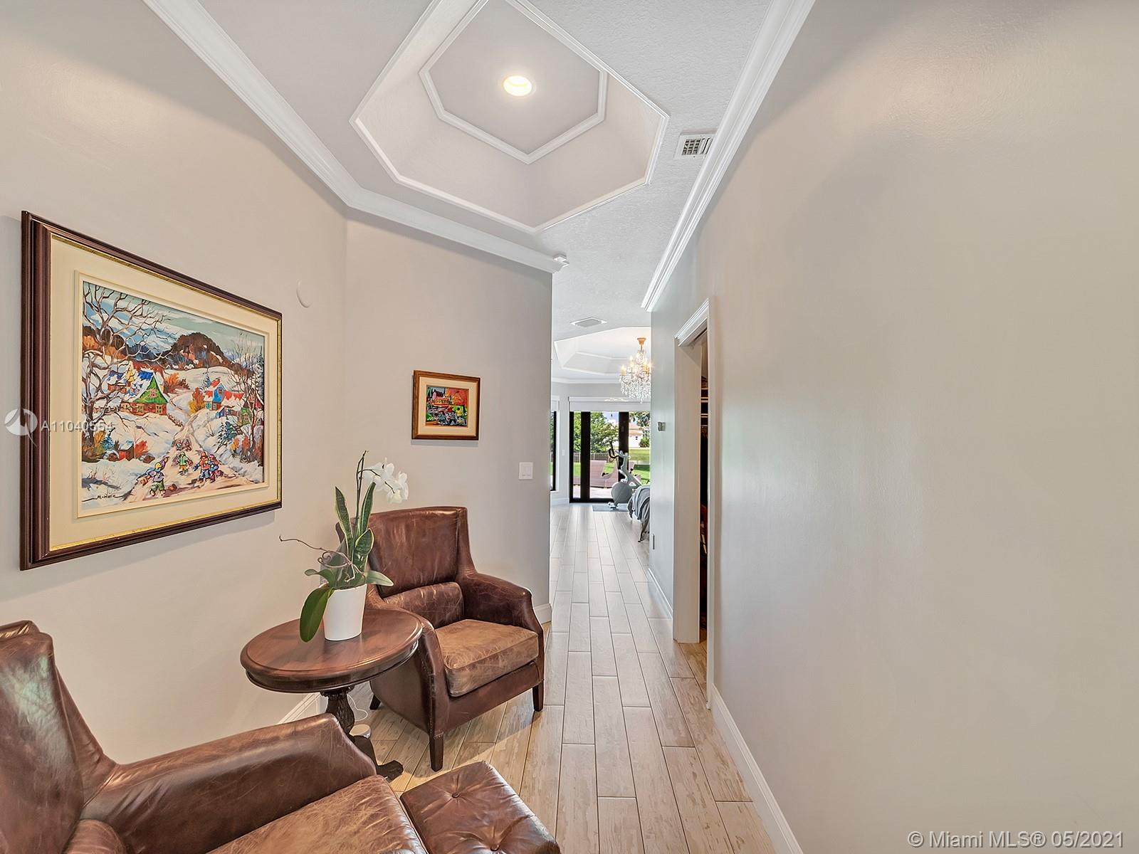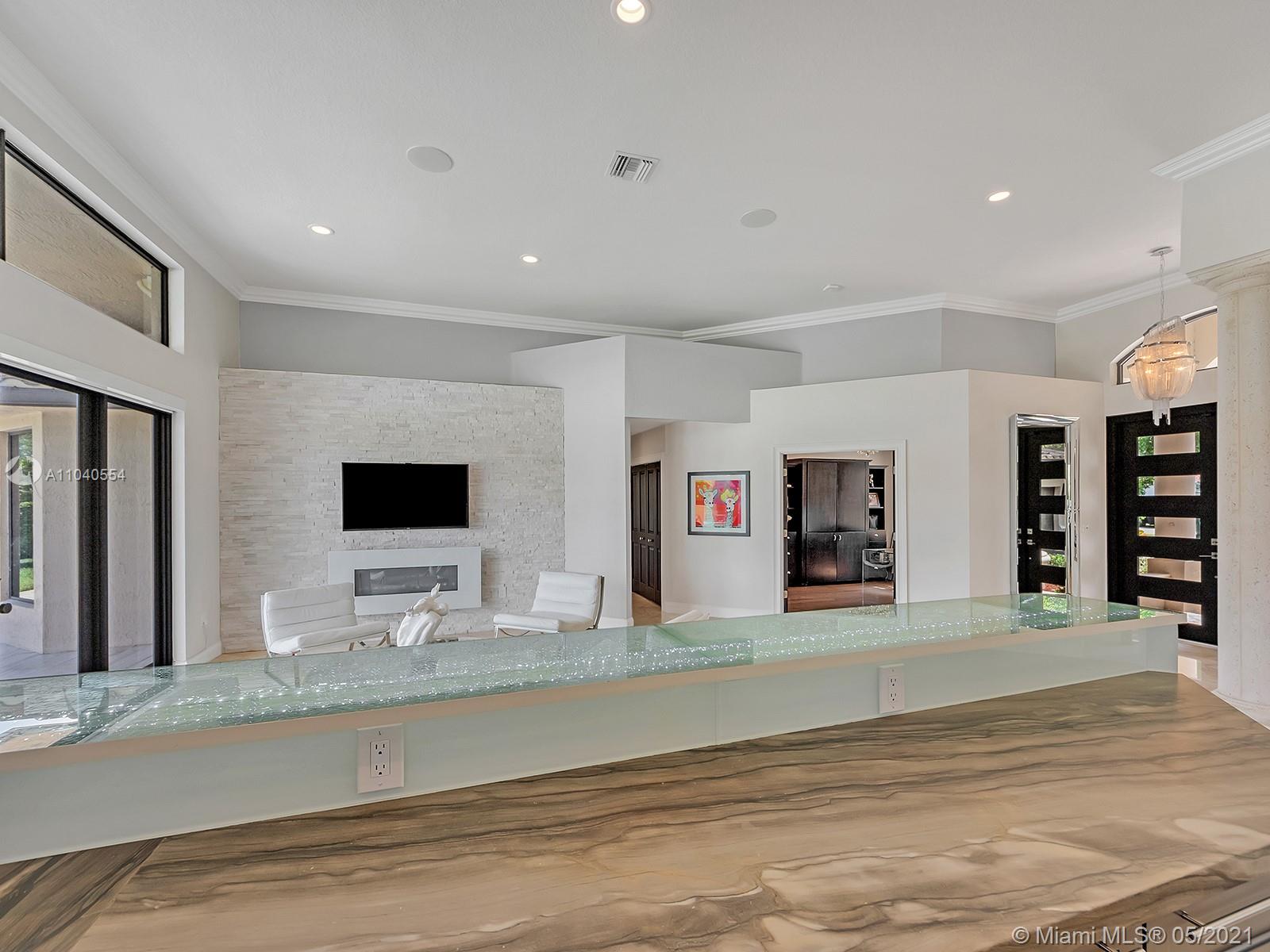 Exquisitely remodeled, casual contemporary residence with an artistic flair, skillfully appointed w/the finest taste and attention to detail! Nestled in exclusive guard gated tree lined community, this 5bed/5ba home sits on builder's acre private waterfront lot w/jet ski dock, perfect for water sports enthusiasts. Enter this completely updated oasis and be wowed! Chef's kitchen boasts custom cabinetry, unique quartz counter tops, lighted cracked glass bar, top of the line appliances, completed by amazing 8 ft hood over the center island induction cooktop. Master suite features sitting area, huge walk-in closet and spa-like bathroom. Spectacular tiled patio and pool deck surrounds modernized heated pool/spa and overlooks huge yard. Impact windows/doors! Newer roof! 3 car garage and more!