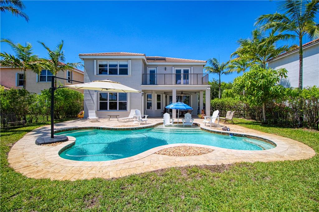 Enjoy stunning, ocean-like views sitting on the largest lake in Broward County. This gorgeous 6 bedroom, 4 bath home is one of the largest lots in the beautiful, secluded Sunset Falls. Huge master bedroom accentuated by a private balcony overlooking backyard oasis and breathtaking sunsets. Excellent fishing, refreshing breezes, and a large backyard make it ideal for entertaining. Outdoors accompanied by saltwater pool system, solar & electric heater, accordion shutters, and Travertine marble pavers. This gem features hardwood floors upstairs, classic tile downstairs, granite countertops, and a center island. 3 car, air-conditioned garage & built-in cabinetry. 24 hr manned & gated community with surrounding wall, minutes to top schools. Make an appointment today to see this beautiful home.