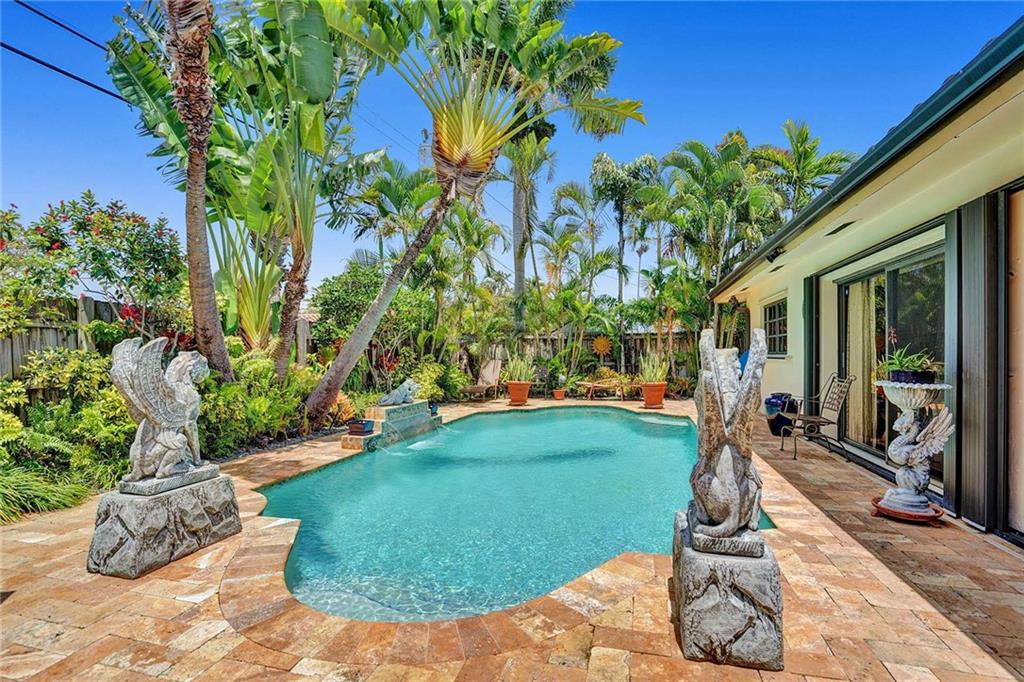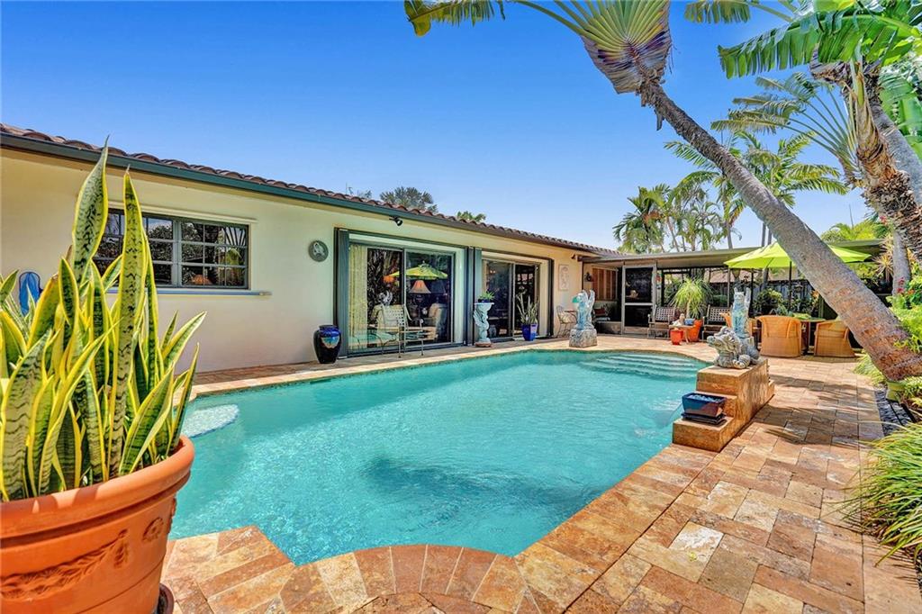 Magnificent Pool home located in one of the most desirable sections of Fort Lauderdale. 3 bedrooms and an office ! 2 bath and gorgeous curb appeal! Garage converted to finished living area, electric panel & wiring replaced, a/c 4 ton upgrade, remodeled heated pool with color changing LED light, travertine tile patio, fenced yard with lush tropical landscaping & lighting, large screened lanai. Close to the beach, great surrounding entertainment, dining, and shopping.