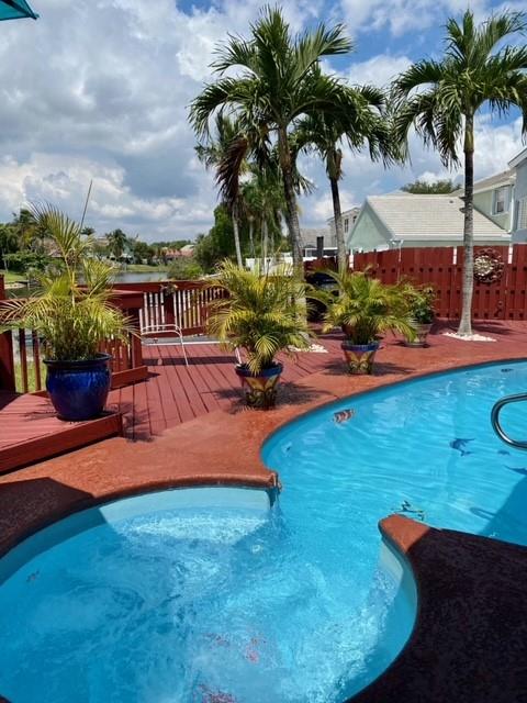 Fantastic two story waterfront home in desirable community. Home features 3 bedrooms 2.5 bath, freeform pool with new roof and HVAC system under extended warranty. Many upgrades; granite kitchen, appliances, custom flooring and updated bathrooms. Main living room and breakfast area looks over lake and pool with amazing sunsets. Great schools and easy access to highways and shopping make this a very desirable area - wont last long.