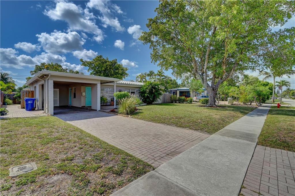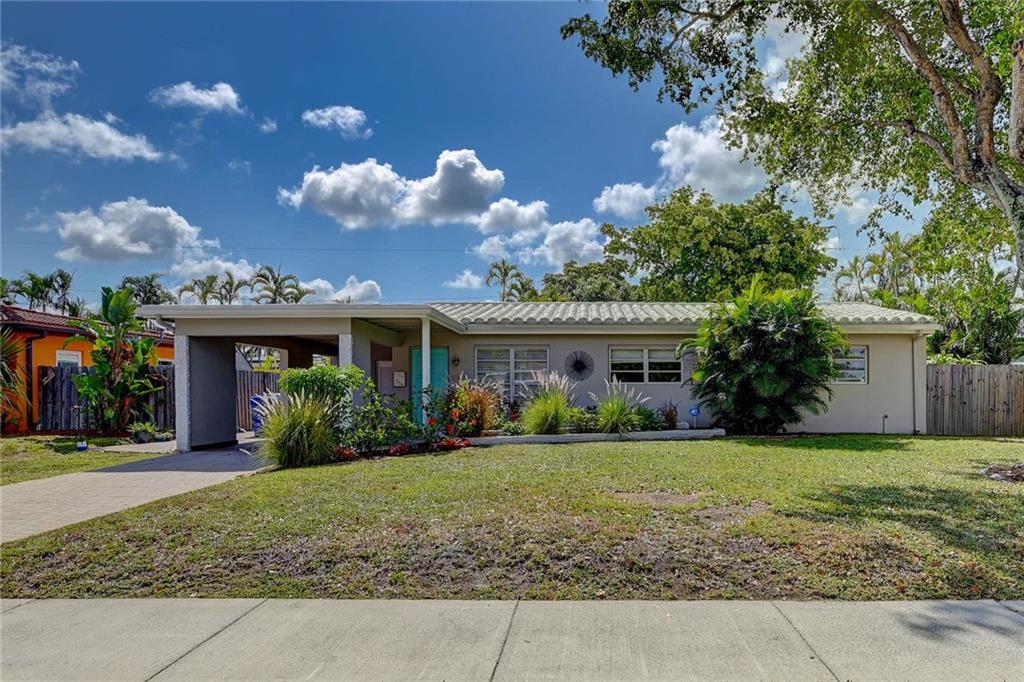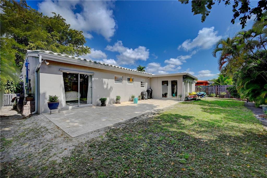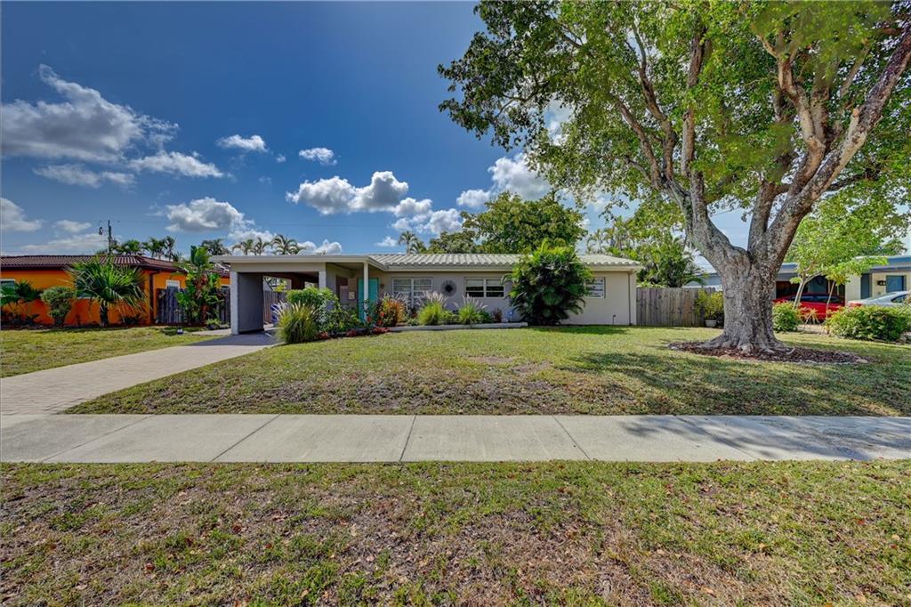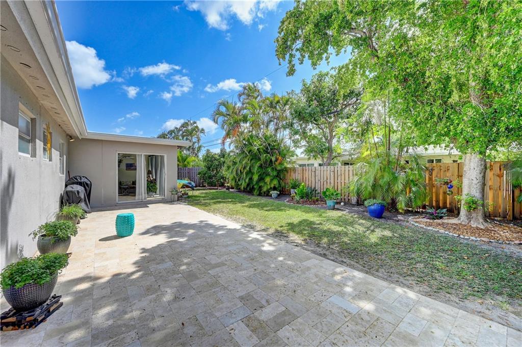 Adorable east Pompano Beach 3 bedroom 2 bathroom home with lots of natural light. Open kitchen with white cabinetry. Updated electric and 2019 Ac. Fenced in backyard with new travertine deck surrounded by tropical fruit trees - great for outdoor entertaining. Tile thru- out. Zen garden.
