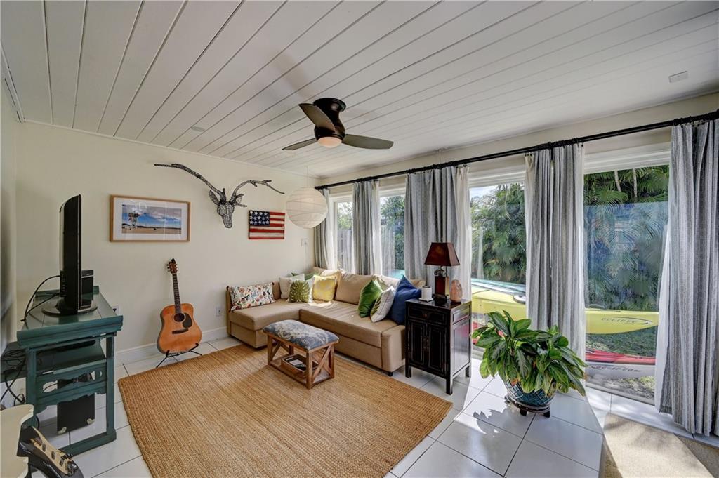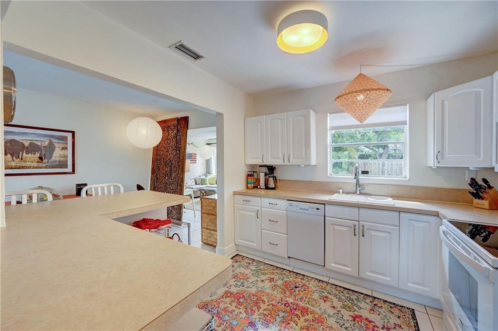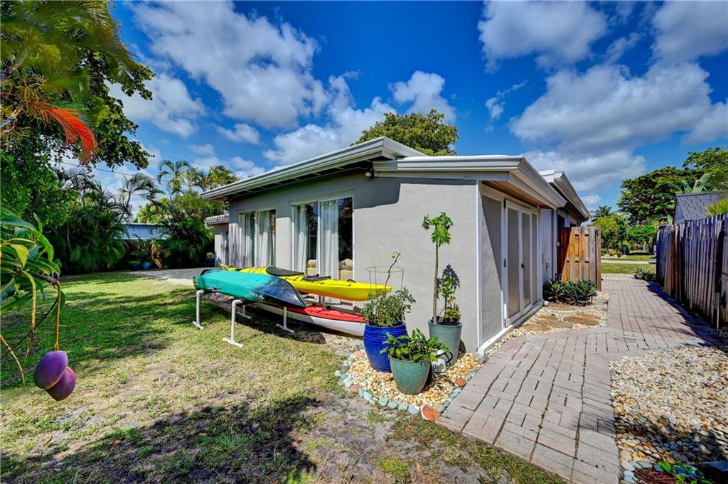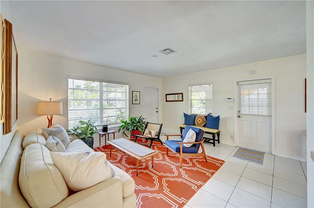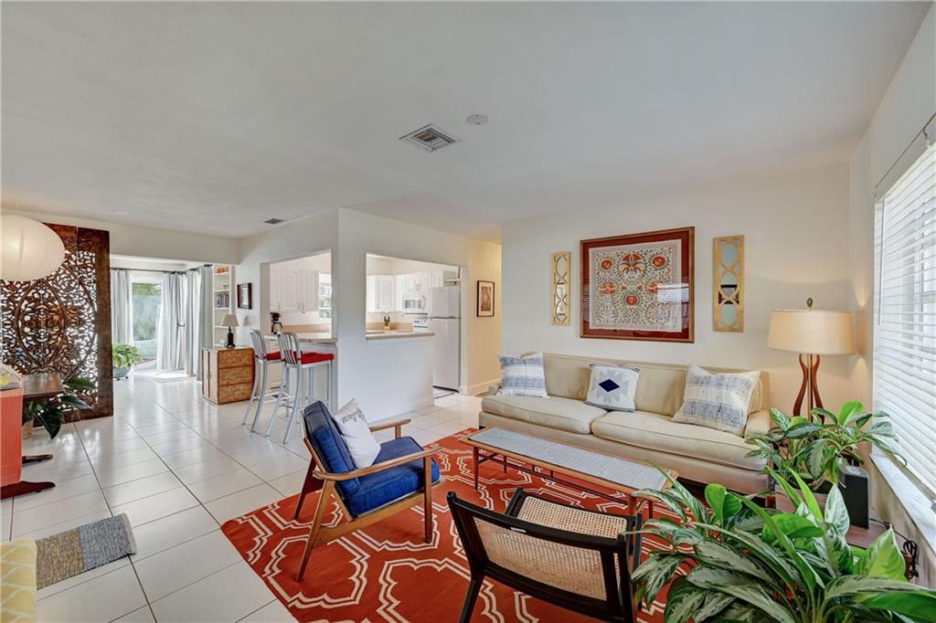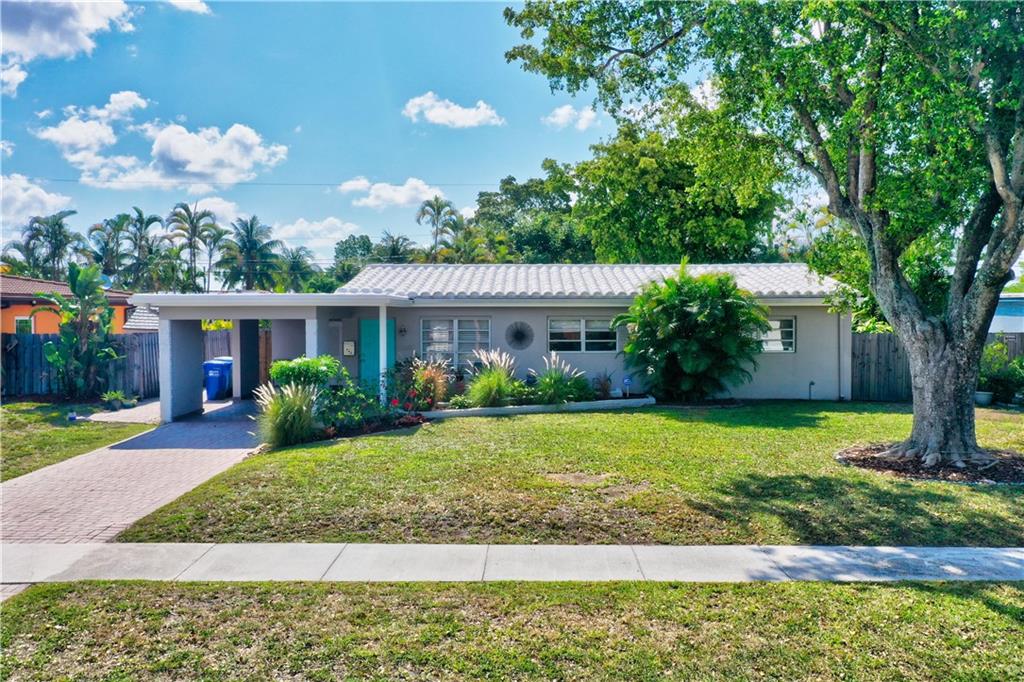 Adorable east Pompano Beach 3 bedroom 2 bathroom home with lots of natural light. Open kitchen with white cabinetry. Updated electric and 2019 Ac. Fenced in backyard with new travertine deck surrounded by tropical fruit trees - great for outdoor entertaining. Tile thru- out. Zen garden.