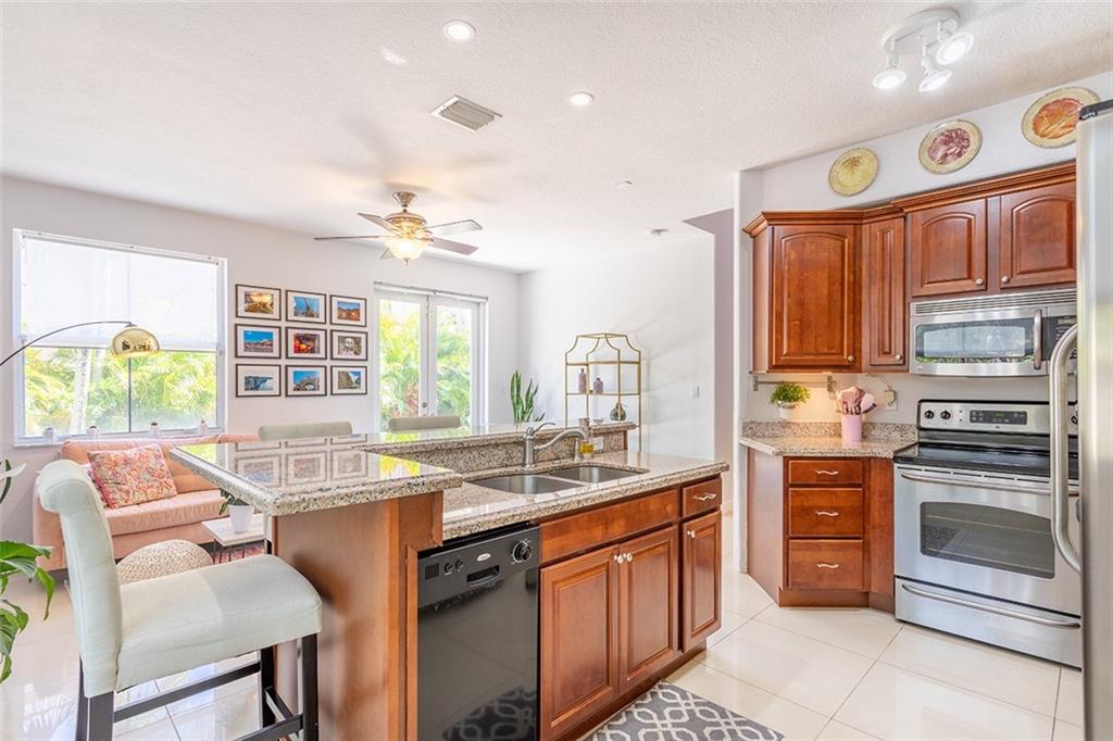 Immaculate corner townhouse features 3 Bedrooms, 2.5 Bathrooms, & a 2 car garage. Located in the welcoming, gated community of Nautica. The minute you walk through the door you feel like you are HOME! Tastefully appointed residence with high ceilings which allow just the right amount of natural light to shine through. Wonderfully maintained kitchen includes hardwood cabinets, stainless steel appliances & granite counters. Modern vinyl flooring upstairs, porcelain tiles downstairs. The primary suite features a spacious bedroom, walk-in closet & secondary closet. Both bathrooms are beautifully remodeled. Accordion shutters, inviting back yard. Great amenities, excellent schools, highway, & shopping nearby.