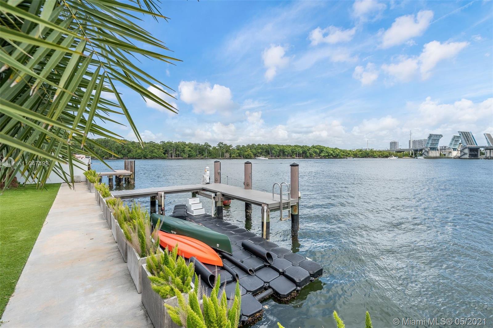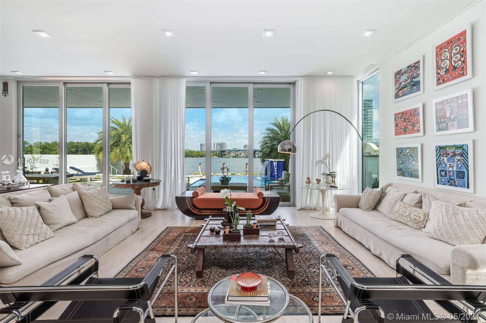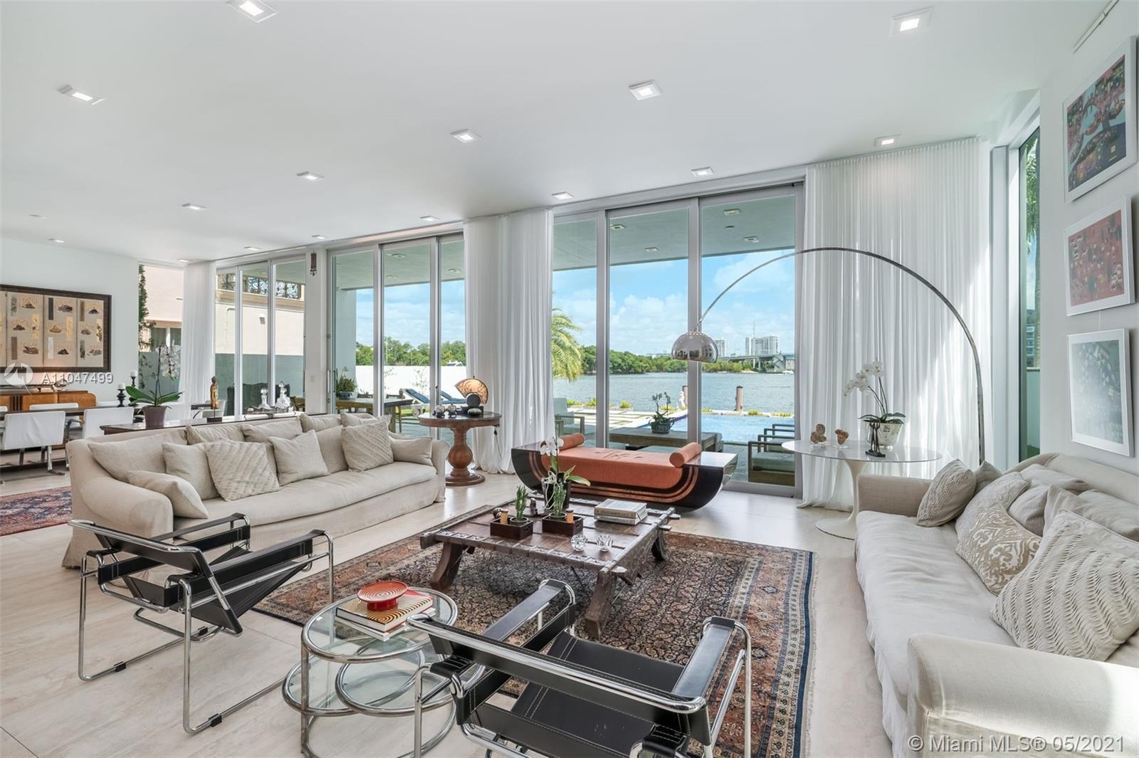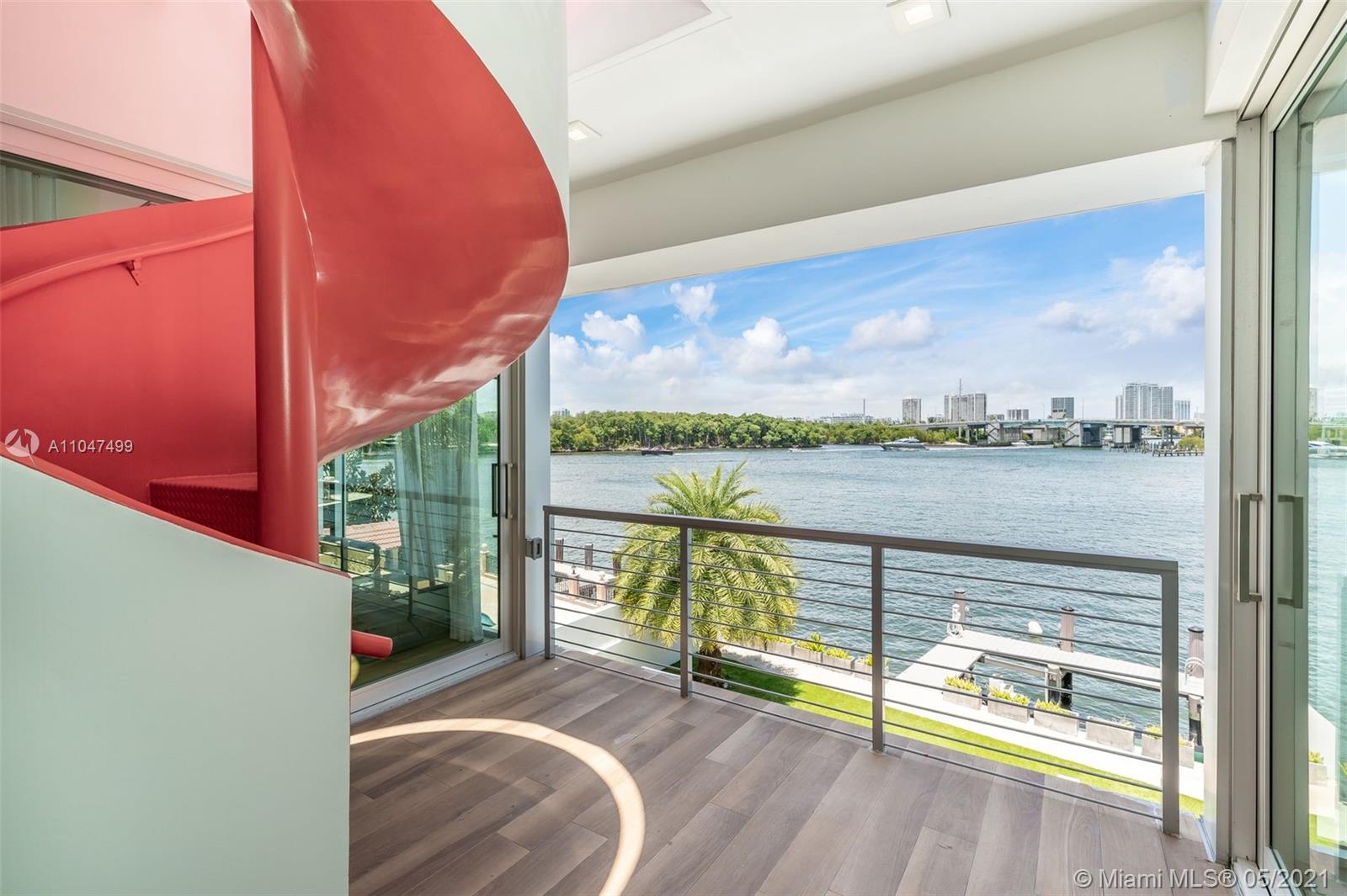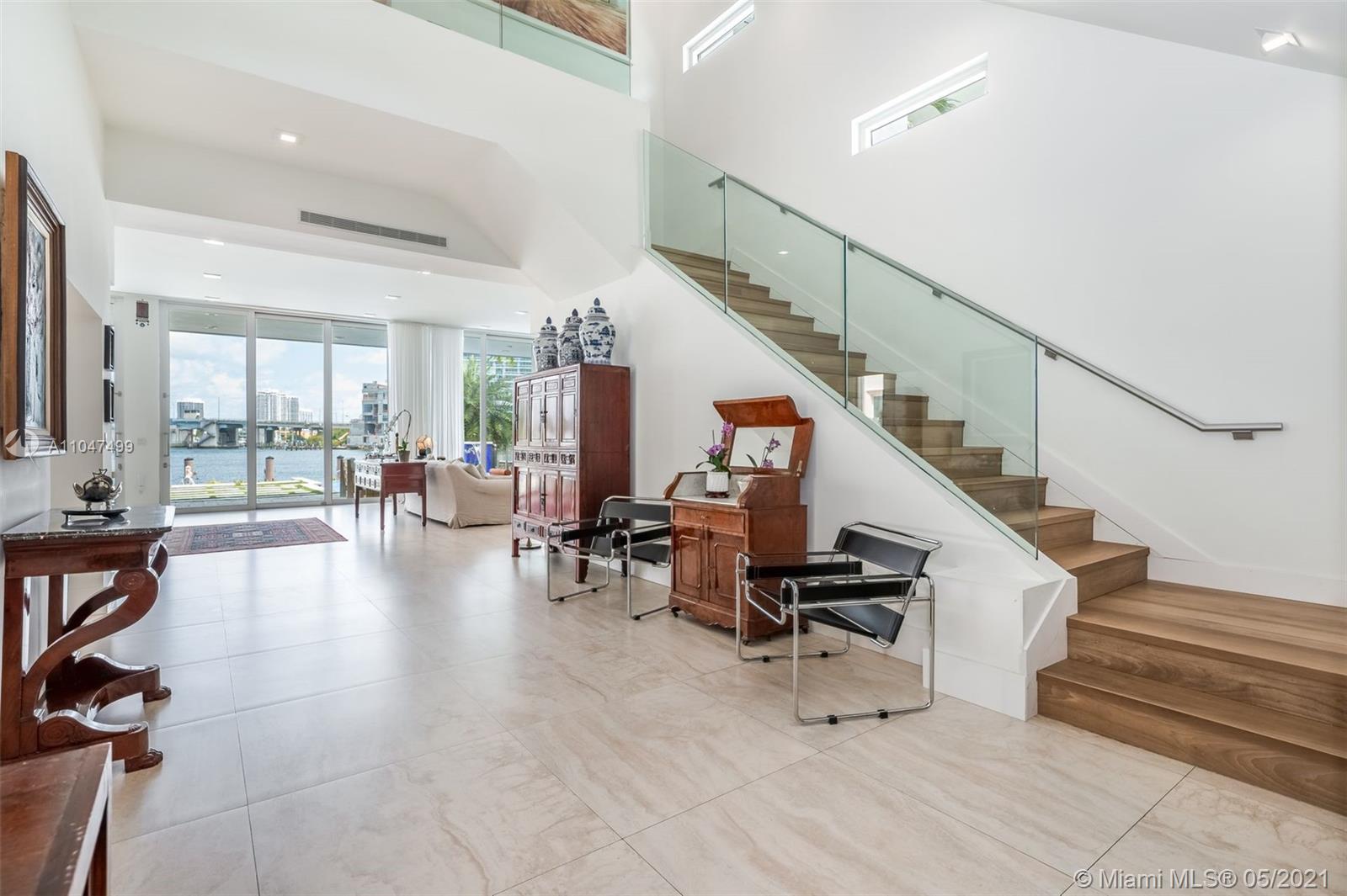 The architecture and execution of this contemporary waterfront masterpiece are truly unmatched. Located on secluded Atlantic Isle across from a deeded private beach lot, this modern custom-built residence boasts 10', 12' & 14' high ceilings and an abundance of windows offering natural light throughout. The currently features 4 bedrooms, large upstairs den, 5 1/2 baths, library den, a laundry room (can be second kitchen), and a garage with adjacent full bath currently used as a gym. Bold red exterior staircase leads to a rooftop terrace that could be build out as a 3rd level. Dock can accommodate 60' vessel, custom-designed infinity pool by VanKirk, surrounding home IP cameras, professional basketball hoop, custom-designed electric security gate, front area can accommodate up to 6 cars.