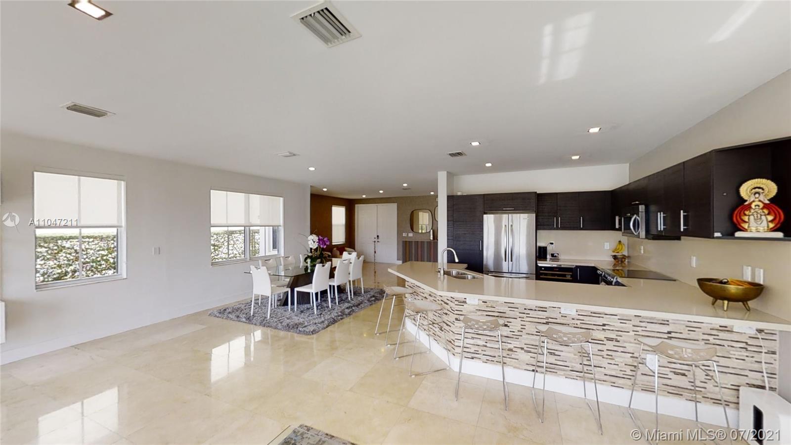 Unique mansion 3 BR 2.5 BA. 2,966 sq/Ft (Total Area) Overlooking sparkling lake at Vintage Estates Doral. Build in 2013, Coastal style Albariño model; Fully upgraded and renovated finishes; Elegant modern interior architectural details; glass-steel stairs, marble & porcelain flooring, modern kitchen; wood cabinets, quartz backsplash & countertop, SS appliances; wine cooler, electric range top, microwave, Outdoor Grill with counter, sink and refrigerator package. Energy-efficient & smart home, insulated garage, security system, hurricane high impact windows. Private gated community, 24 hours security guard, the community offers quality living of all residents, situated in the peaceful City of Doral, America’s Top Cities to Live & schools A+ rated.