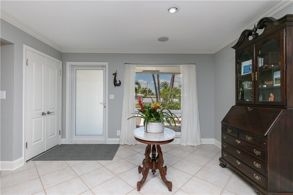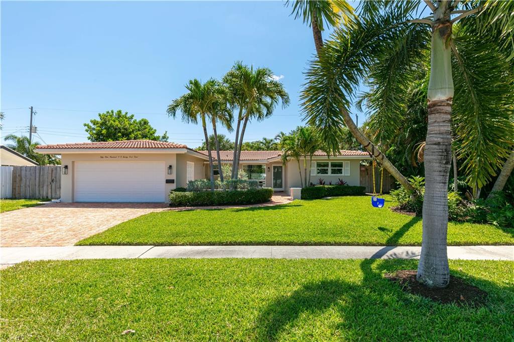 Beautifully updated home on a quiet street in highly sought after Imperial Point. 3bedrooms/2 baths, office and two car garage. Huge living area, open kitchen with SS appliances and granite countertops. Impact windows and doors, recessed lighting and solar water heater. Flooring is ceramic tiles and Brazilian hardwood in 2 bedrooms. This is a Smart Home with a mesh wireless system; there is also a high tech network closet. Fence installed in 2017, flat roof reroofed in 2020. New water service line between meter & home. The home is freshly painted, has lush landscaping and Chicago brick in the driveway/patio. Imperial Point is less than 2 miles from the beach and nearby shoppes, fine dining, schools and more. The neighborhood has sidewalks and a playground.
