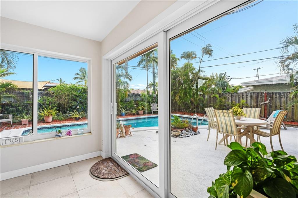 Charming 2/2 pool home in great east Fort Lauderdale neighborhood, just 1.8 miles from the beach and close to everything! Large lot (100 X 75)with tons of mature landscaping. Fenced backyard, pool with new diamond-brite finish, as well as an additional backyard space. All impact windows and doors. Both the barrel tile roof and AC are 5 years old. Natural gas runs stove and water heater. Large all-window Florida room surrounds you with tons of natural light and views of the pool and yard. Terrazzo floors, large inside laundry room, and the area behind side gate could be great place for small boat trailer or green house. This home has been lovingly cared for and maintained, in quiet neighborhood with sidewalks and tons of trees.