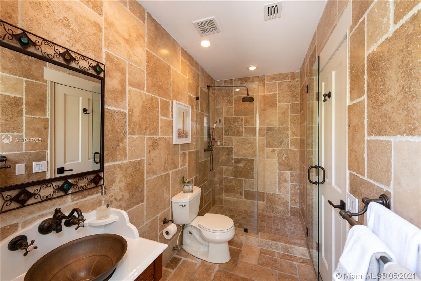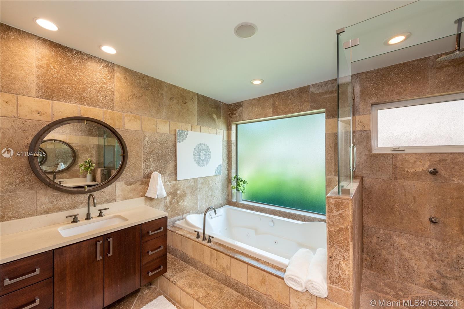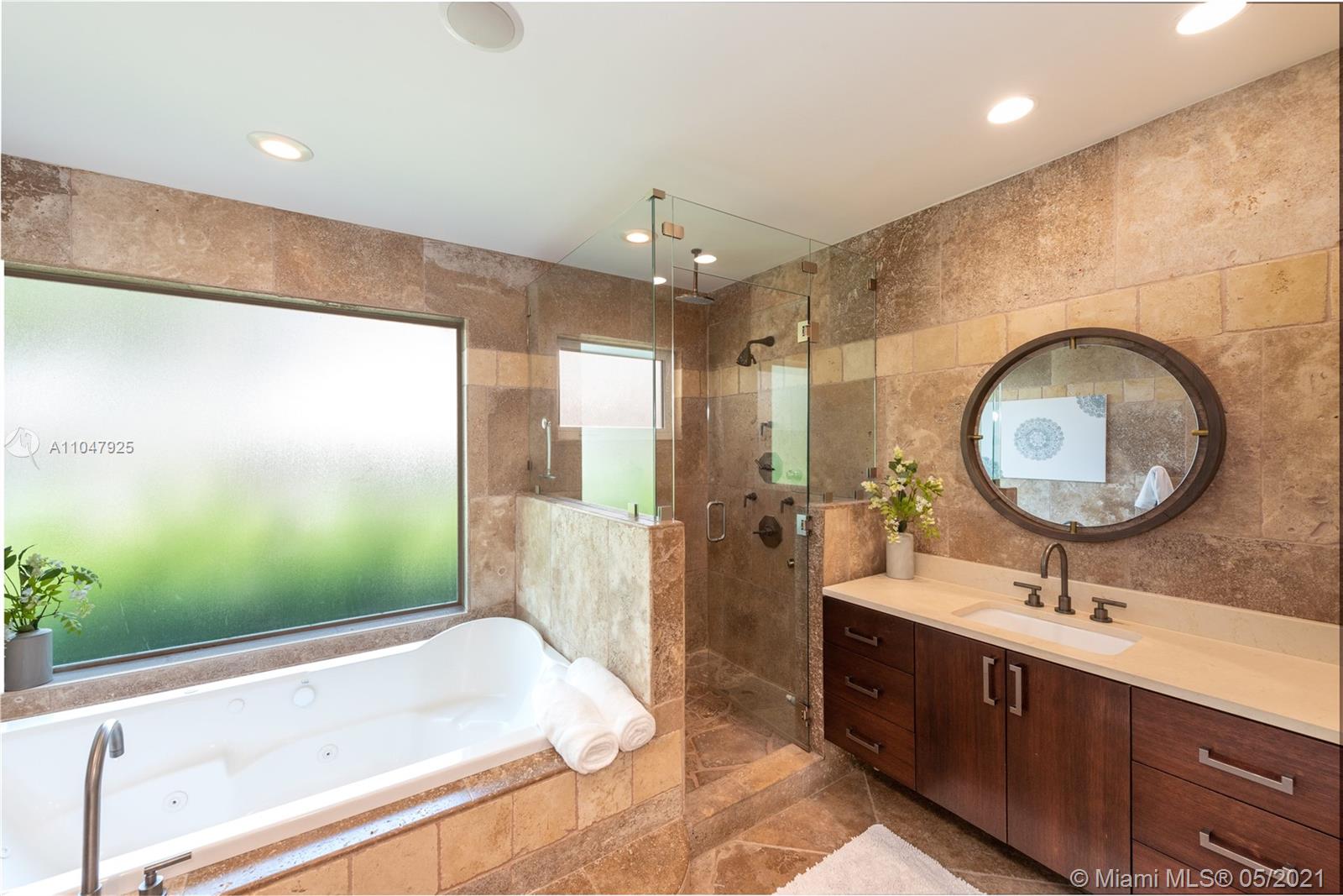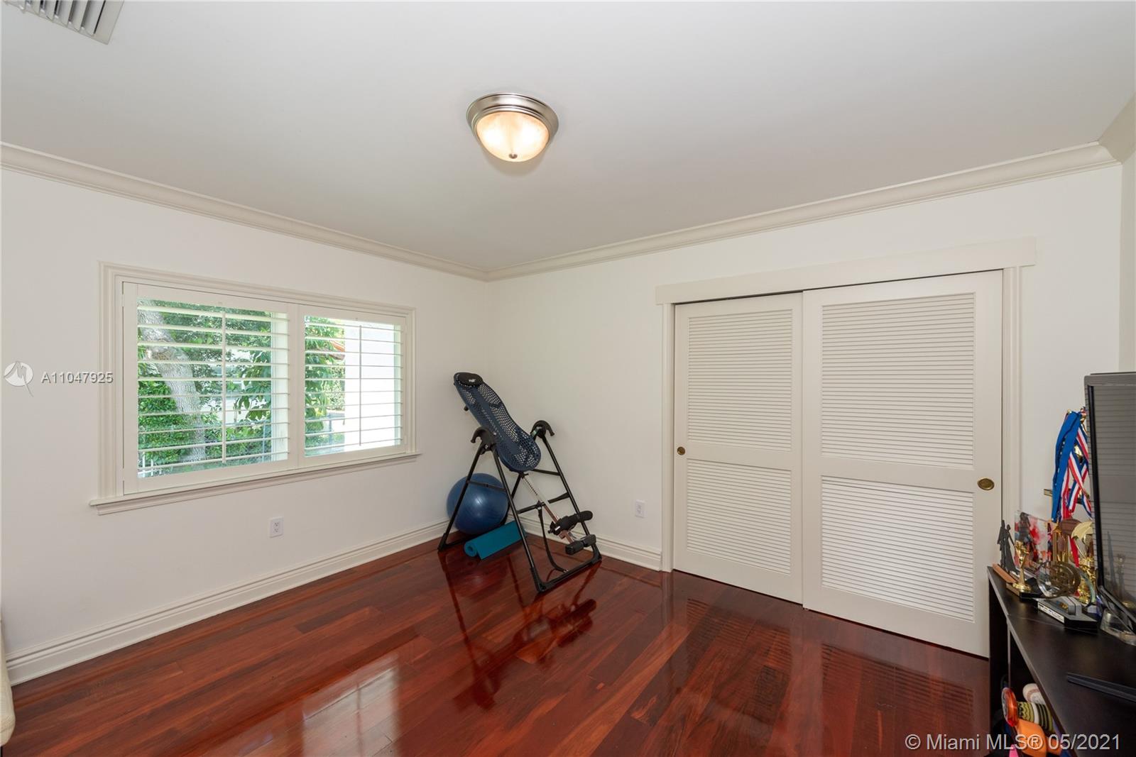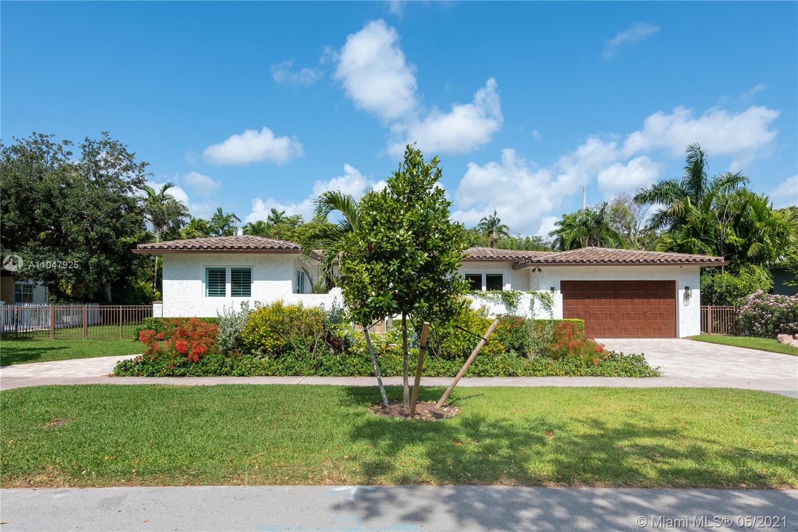 Sophisticated and charming, single-story, 4 bdrm/3 bath home within the Golden Triangle of Coral Gables. Extensively updated with 3000 adj. sq. ft., on a 10,900 ft. lot features a beautiful courtyard entry, impact doors/windows. There is a new 2020 gourmet, eat-in kitchen with top-of-the-line appliances, and a sunny breakfast area. Formal living and dining rooms plus a cozy Family room. To the left of the living room are all the bedrooms. The spacious master has walk-in closets and French doors to the patio/pool that features an infinity fast-lane resistance machine. The pool can be seen through French doors from many rooms in the house. The 2-car garage has a Clopay door and epoxy floors. Separate laundry room with a built-in desk/office area and a Standby generator. FIRM PRICE.