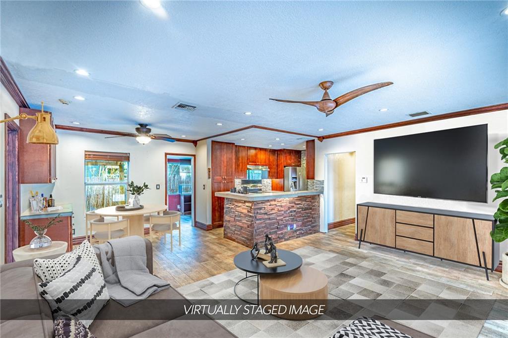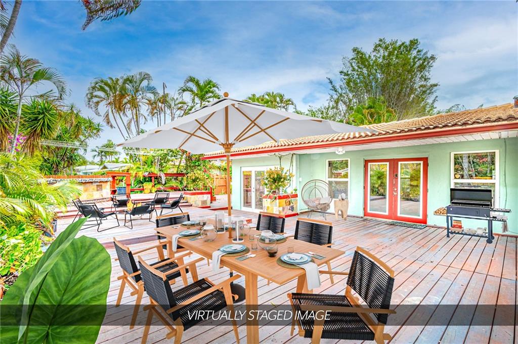 HUGE CORNER LOT IN POINSETTIA HEIGHTS IS BACK ON MARKET. Escape the hustle and bustle of the nearby city and walk behind the gate and make this your very own whimsical tropical oasis on this oversized corner lot. Step inside the home and enjoy the flow of the living space from the open kitchen to the solarium.This is a well designed three-bedroom split floor plan home.The kitchen has custom cabinets and high-end concrete countertop designed by local artist, Jake Brady. Both bathrooms have been beautifully updated. Equidistant from downtown Ft. Lauderdale and Wilton Manors, approx 2 miles to the beach, a few blocks to 13th Street and Flagler Village. ACTUAL AND STAGED PHOTOS.