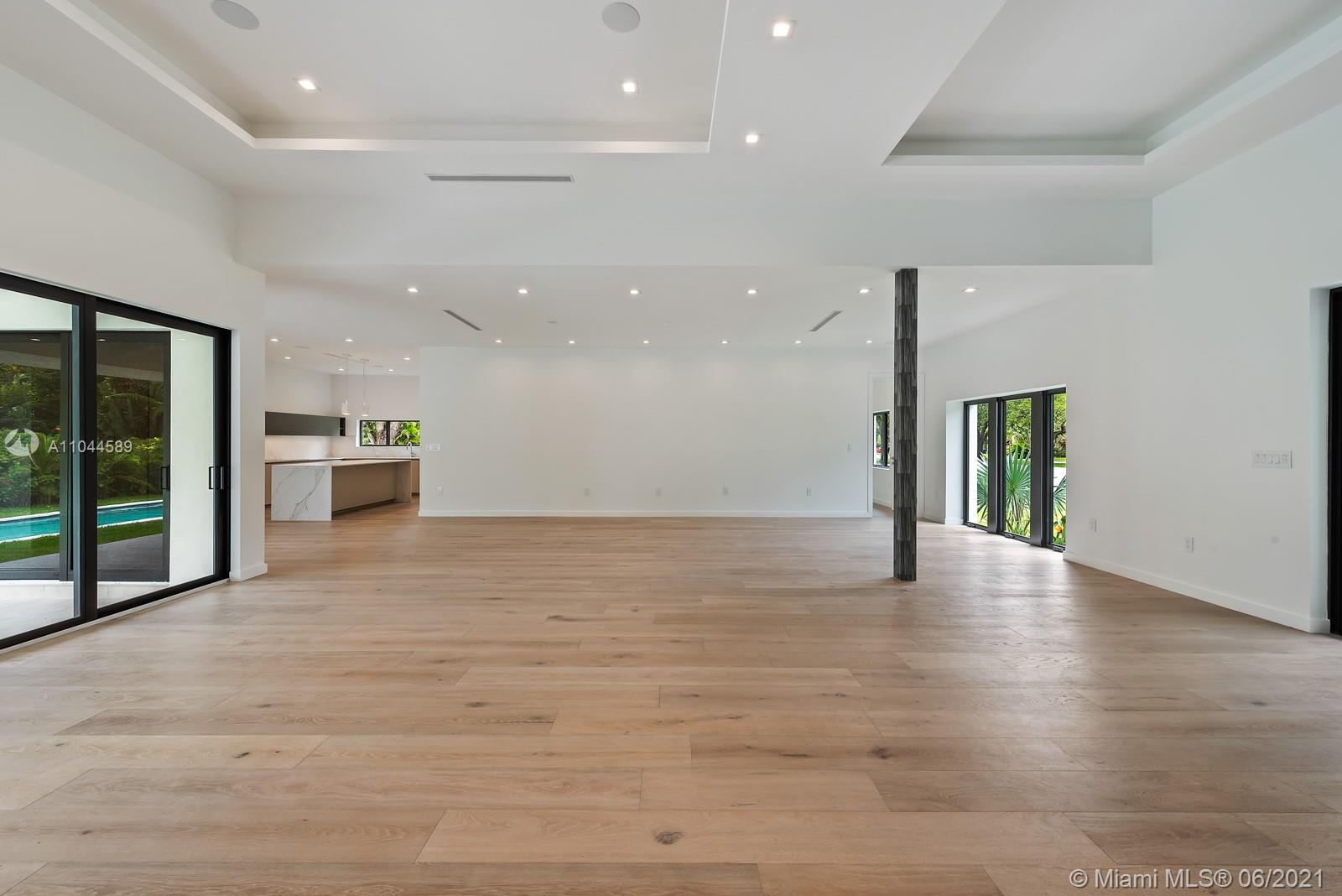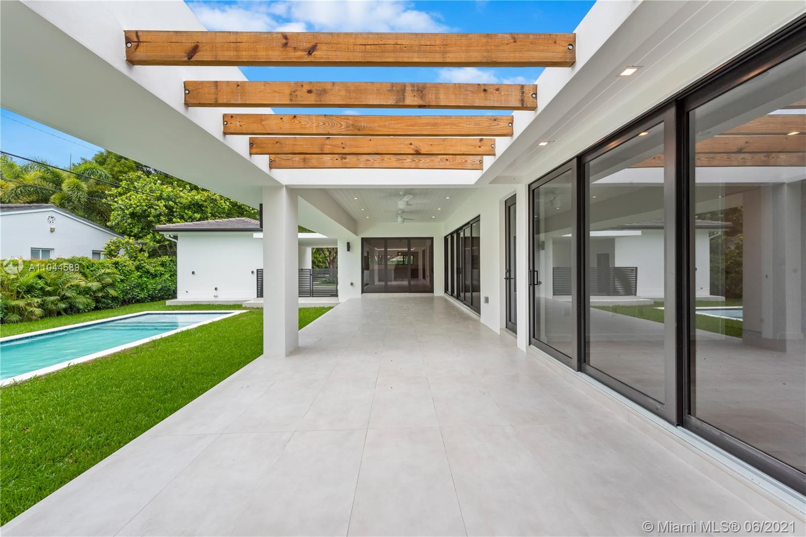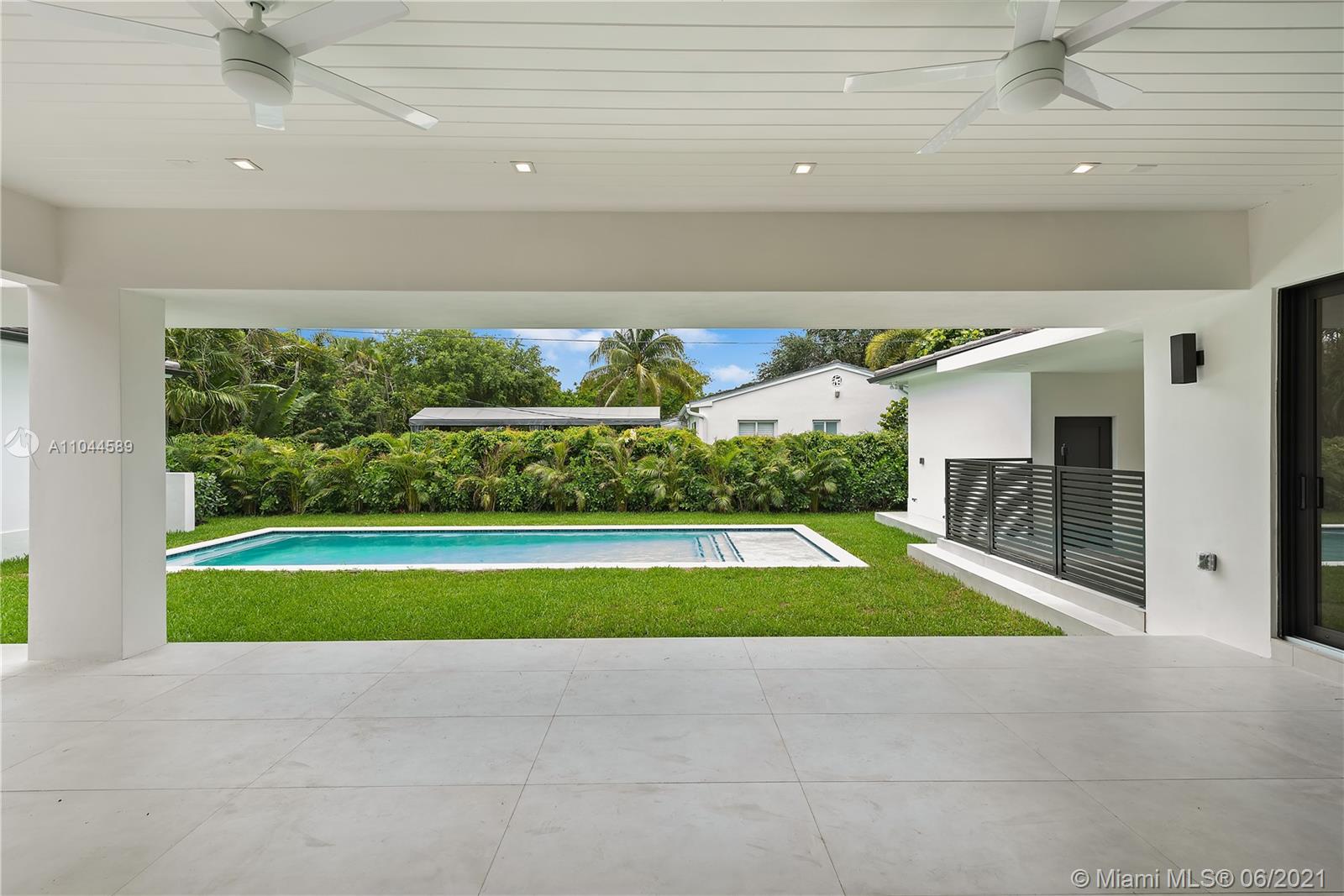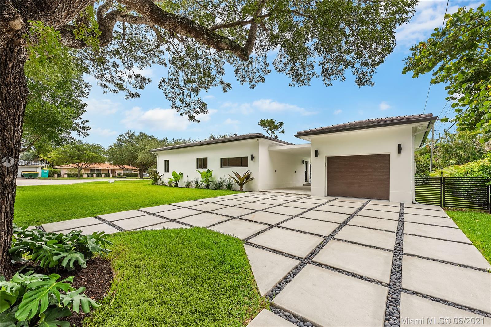 Located in the beautiful area of Coral Gables, this stunning home is close to shops, restaurants, parks, and great schools. A new property tastefully designed for comfort, functionality, and entertainment. This modern home provides an abundance of natural light throughout and it sits on a 13,616 SqFt. corner lot. It offers spacious 5 beds/5 baths, with His & Her vanities and a large master walk-in closet. One of the bedrooms could be used as a TV room/ an office or a playroom. This modern home has an open floor plan with 10ft. ceilings, stunning floors, impact glass doors, and windows throughout. The Yamini-designed kitchen showcases Thermador appliances adorned by a large kitchen island. Enjoy the oversized terrace overlooking the pool surrounded by an impeccable landscape.