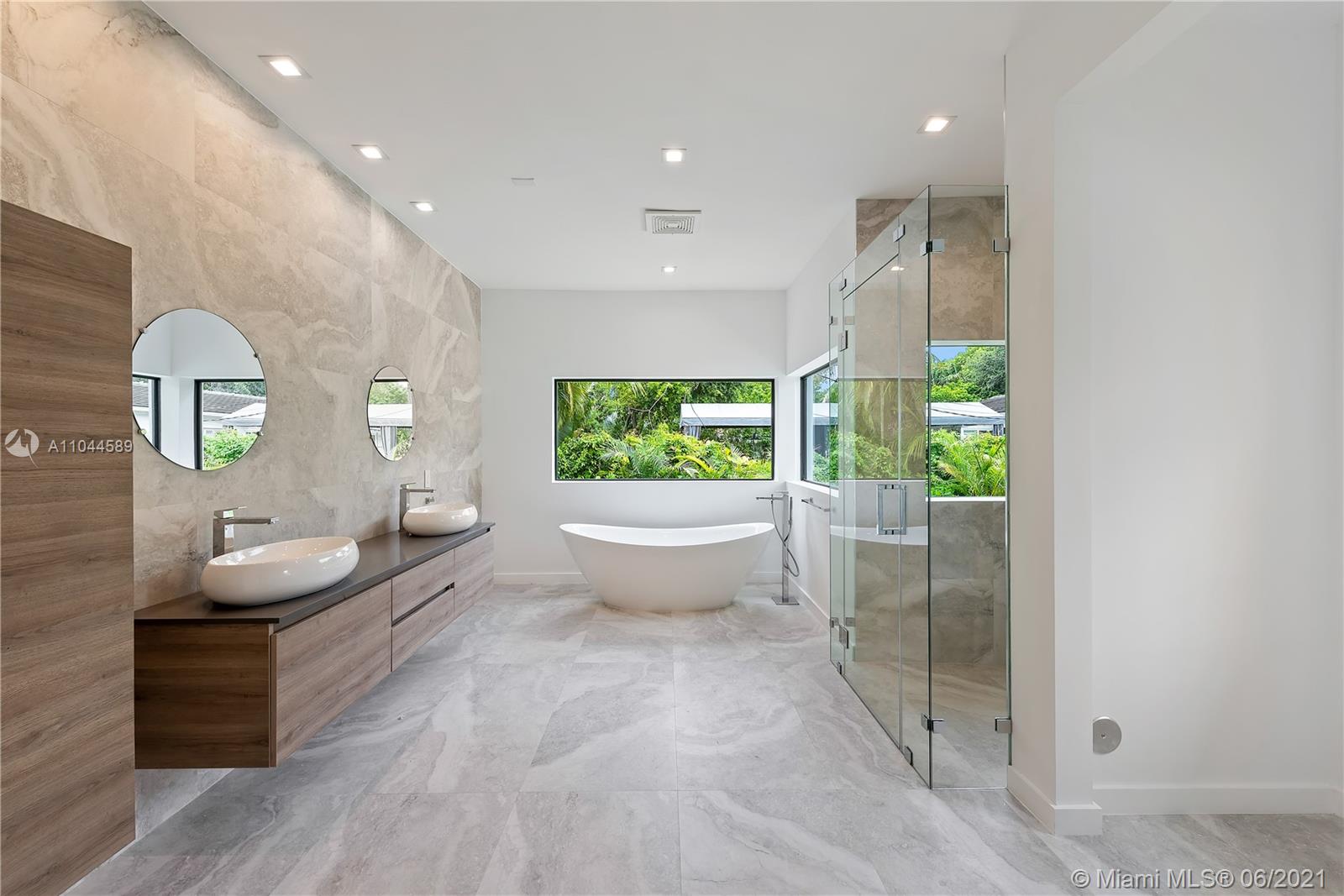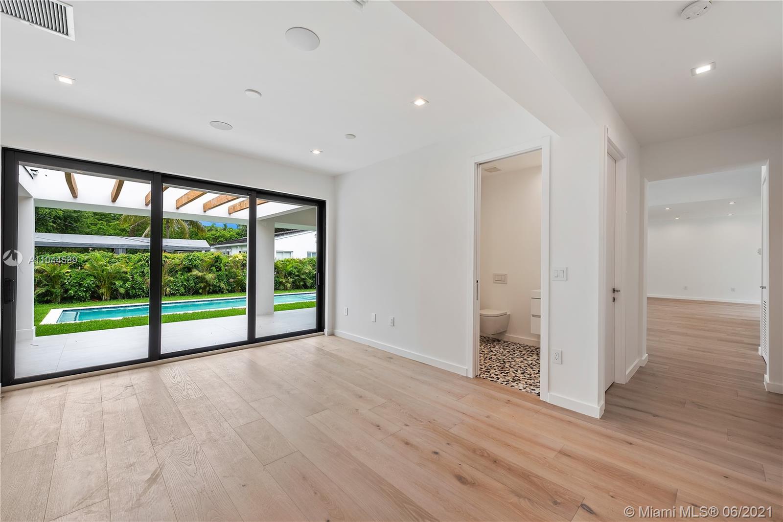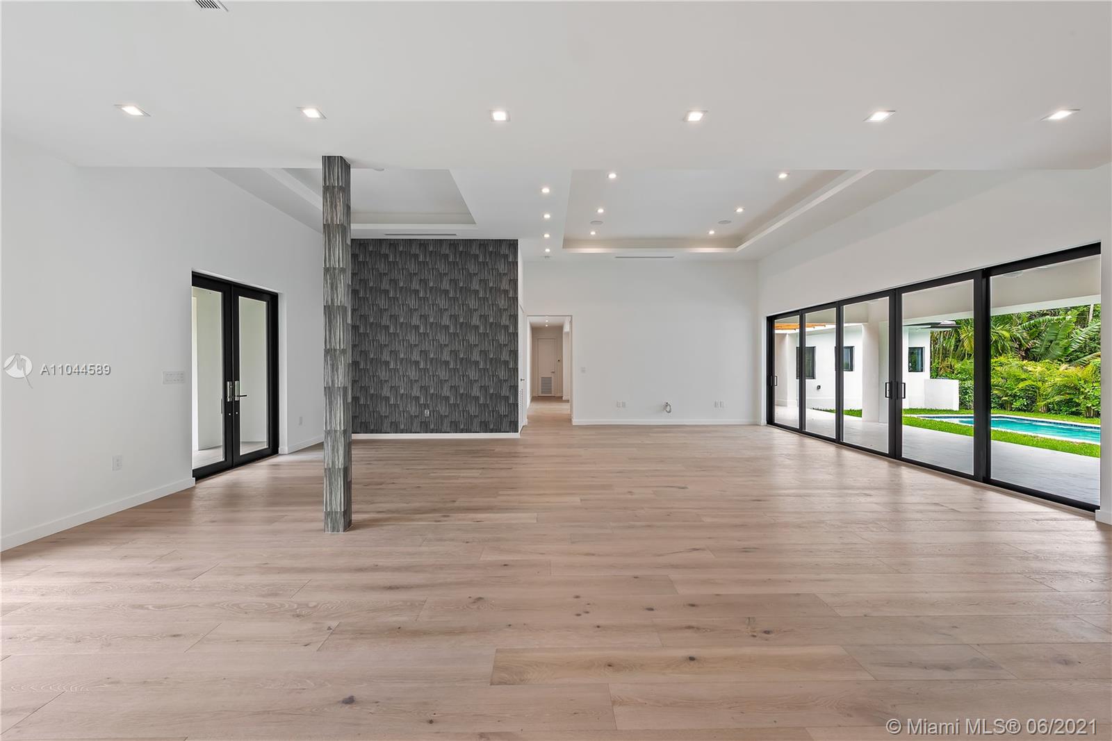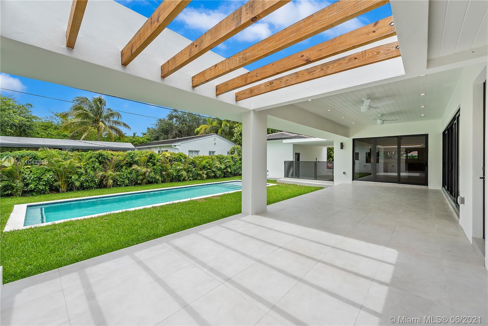 Located in the beautiful area of Coral Gables, this stunning home is close to shops, restaurants, parks, and great schools. A new property tastefully designed for comfort, functionality, and entertainment. This modern home provides an abundance of natural light throughout and it sits on a 13,616 SqFt. corner lot. It offers spacious 5 beds/5 baths, with His & Her vanities and a large master walk-in closet. One of the bedrooms could be used as a TV room/ an office or a playroom. This modern home has an open floor plan with 10ft. ceilings, stunning floors, impact glass doors, and windows throughout. The Yamini-designed kitchen showcases Thermador appliances adorned by a large kitchen island. Enjoy the oversized terrace overlooking the pool surrounded by an impeccable landscape.