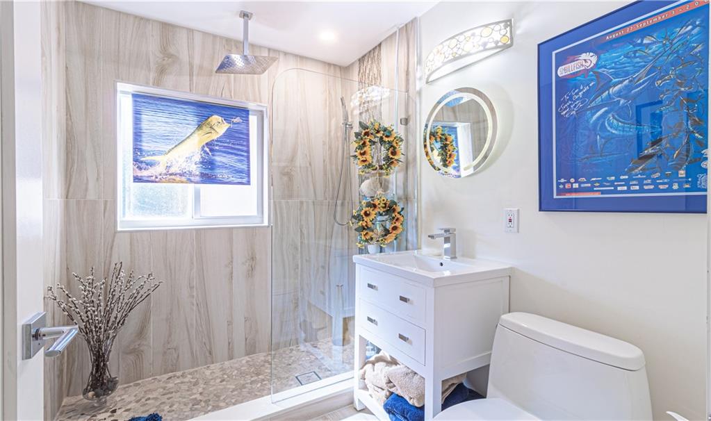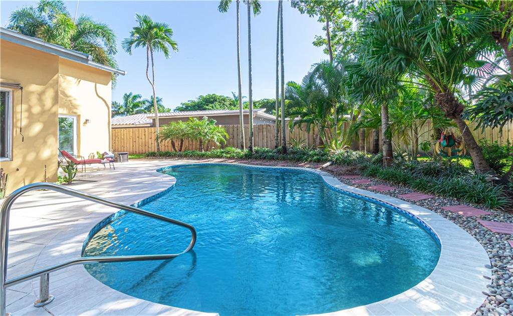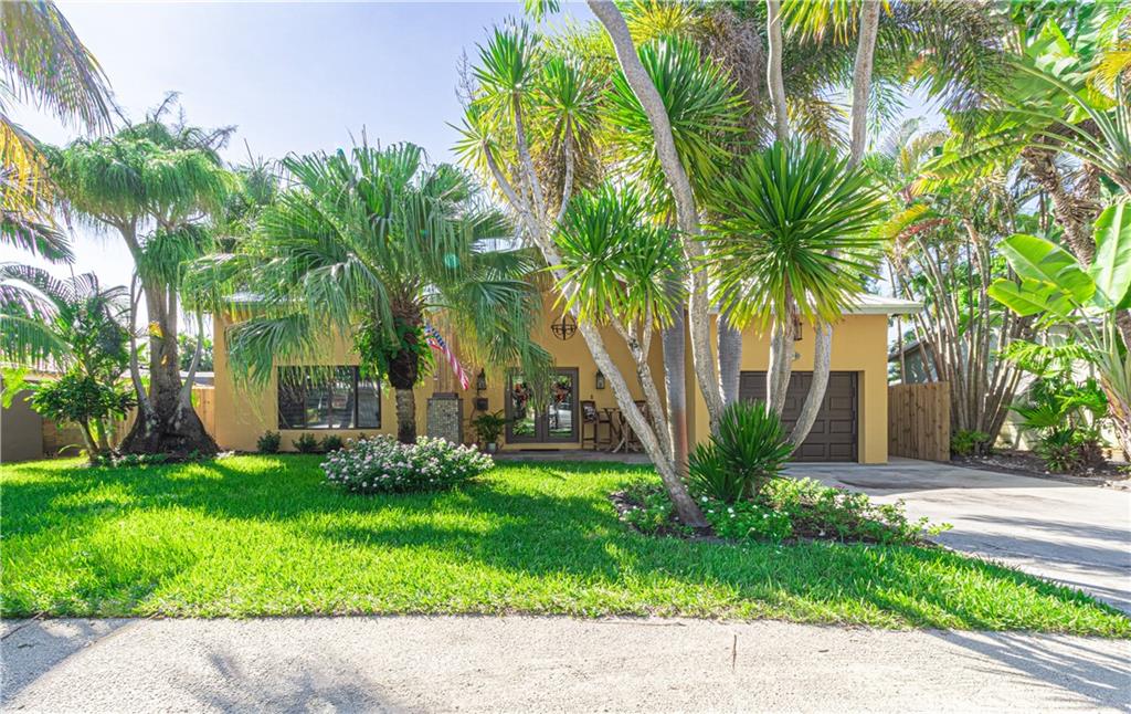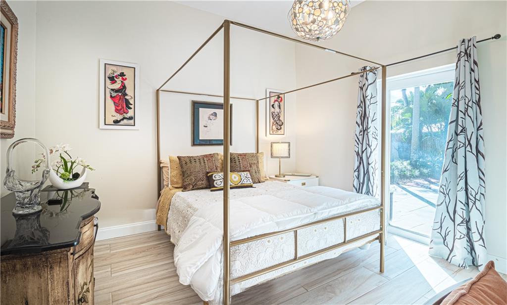 Newly Built 2 bedroom 2 bath pool home w/ garage on a tropically landscaped private lot. A lofty covered front entrance w/ glass double doors welcomes you into this finely appointed home designed by an interior decorator. The expansive living areas offer heightened ceilings, natural light & plenty of room for entertaining. A chef’s delight, modern kitchen equipped w/ Thor appliances including a 6 burning gas range, deep farm house sink, mix of dark & light cabinetry tied together w/ mosaic tiled back splash & solid stone countertops w/ waterfall edge. Impact windows & sliding glass surround the living area, leading out to the private tropical back yard, heated pool, bbq area & covered gazebo! Modern bathrooms featuring rainfall glass enclosed showers, custom closets & beautiful fixtures.