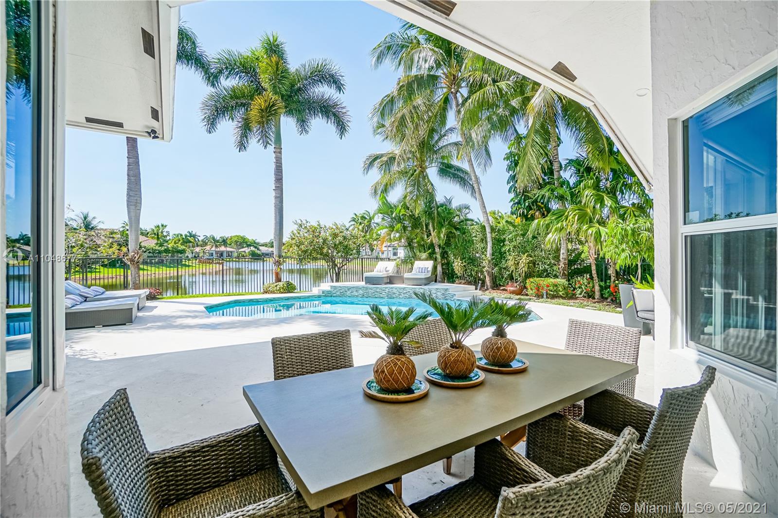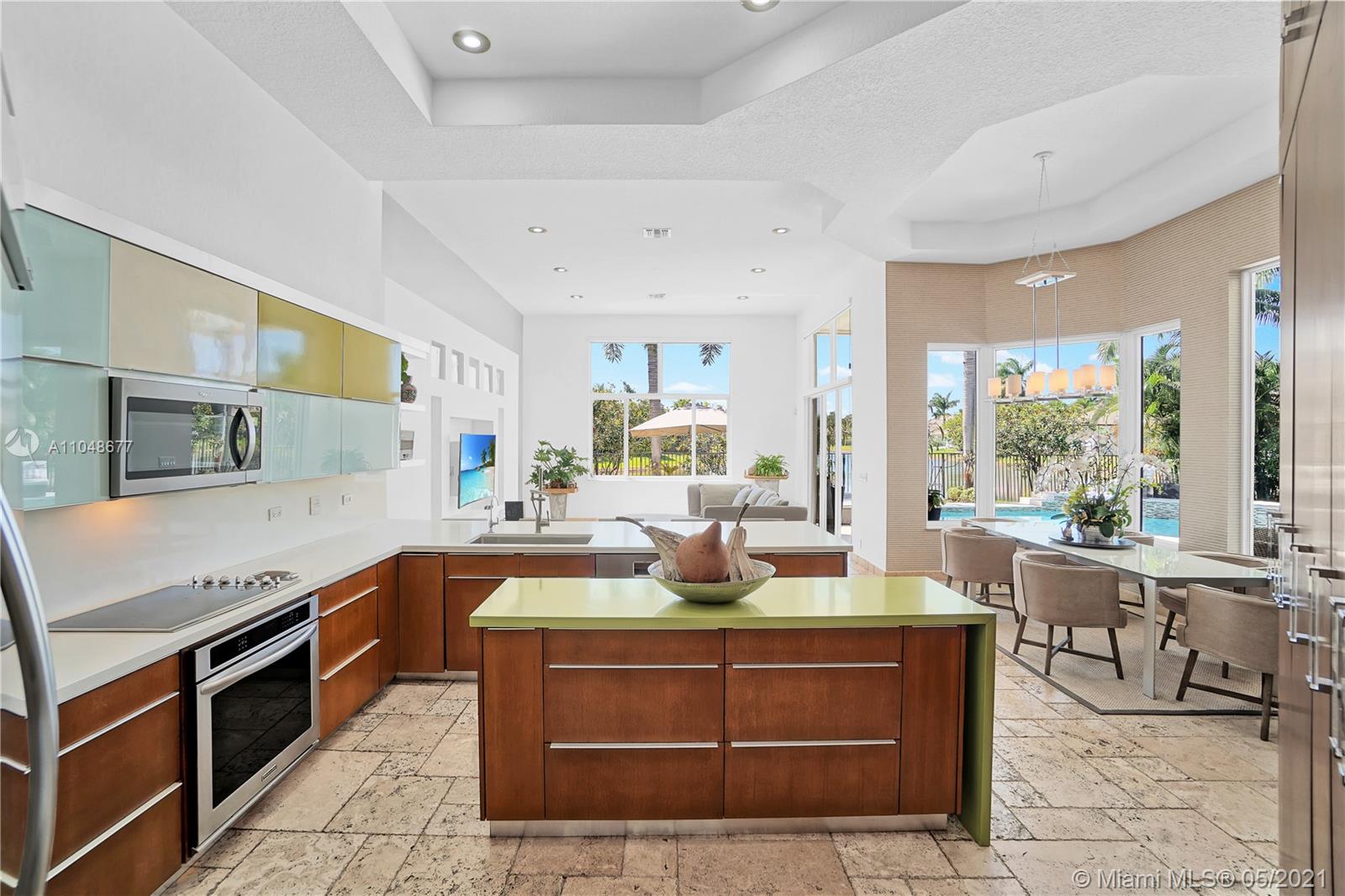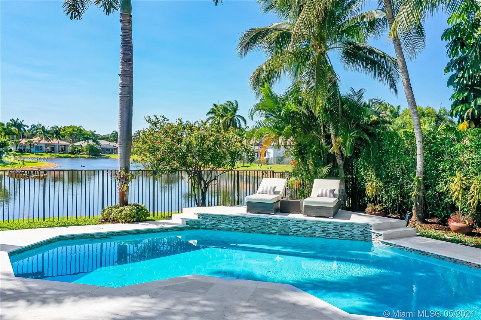 This completely remodeled and beautifully situated estate in the distinguished community of Weston Hills Country Club is one of a kind. As you enter you are welcomed by an impressive grand foyer with soaring ceilings and a beautiful view of the lake. This estate features 4 Bedrooms, 3 baths, plus an office/Den on a premium 13,169 sqft waterfront lot with a pool. Updated kitchen design with wood cabinets, granite countertop & center kitchen island. 3 car garage and circular brick pavers. Outdoor space ready to entertain and relax in your private backyard with pool and outdoor grill area. Meticulously maintained!!!
