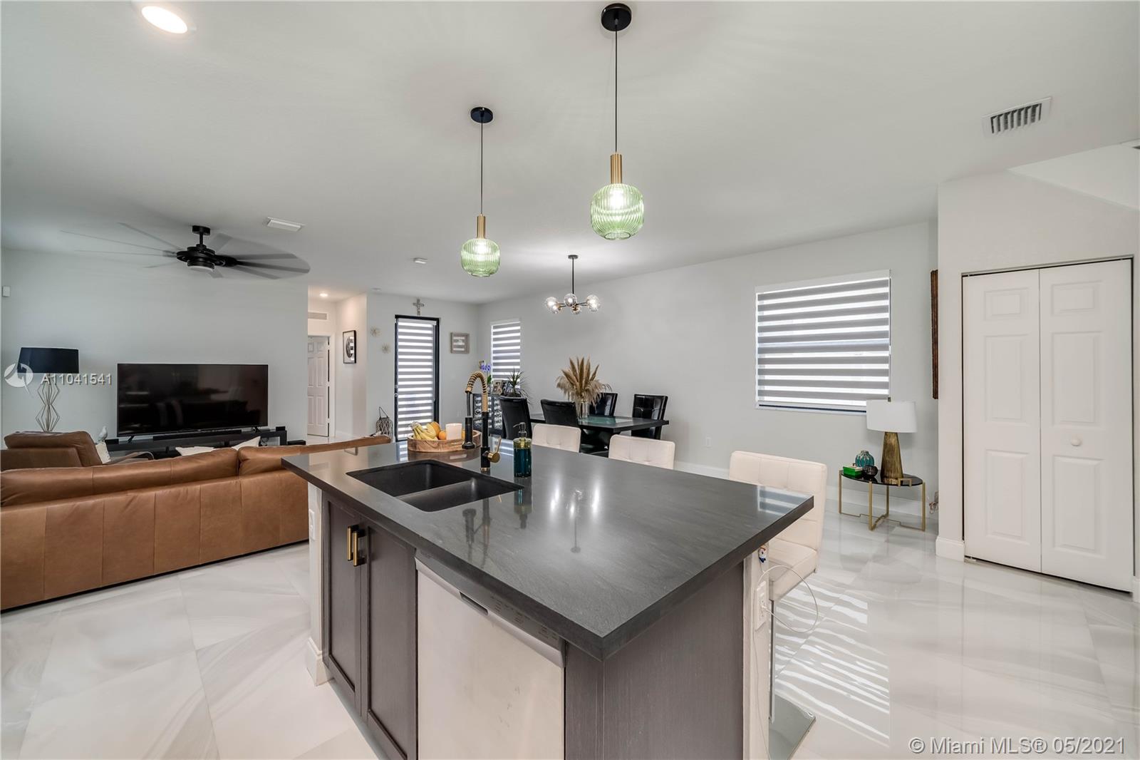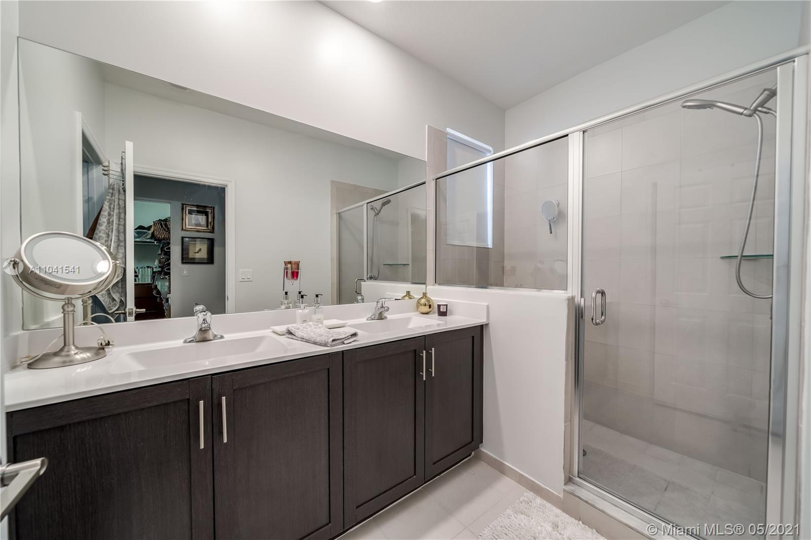 SPECTACULAR and INMACULATE 2020 house. LOTS of UPGRADES, such as PORCELAIN in the 1st floor, QUARTZITE and GRANITE counter tops in kitchen, closed-in patio with white fence and TRAVERTINE sealed pavers, upgraded dryer and washer machine (SAMSUNG), hardwood on stairs and 2nd floor, freshly painted with white and gray colors. MUST SEE IT to appreciate.
