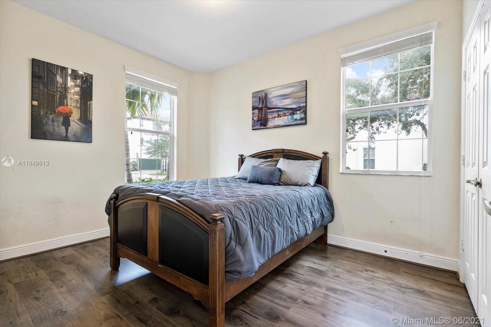 MUST SEE MOVE-IN READY END UNIT TOWNHOUSE! Located in the Coveted GATED Community of Montclair, this 3 story Split Living home is one of the few HIGHLY sought-after corner homes. It features open concept living, 3 bedrooms, 3 bathrooms WITH a Bedroom & Full Bathroom on EACH level! Also, BRAND-NEW Wood Laminate flooring (NO CARPET), laundry room and a TWO car garage with individual doors. Community has a Clubhouse, Gym, Swimming Pool, Children's Playground AND Over 1/2 Mile Lakefront Walking Path. All this in walking distance to Miramar Town Center with Shopping and Restaurants, Miramar Cultural Center and the Miramar Police Headquarters. Association fees covers Cable, Security, In-Unit Alarm Monitoring, Landscaping, Exterior Maintenance & Amenities.