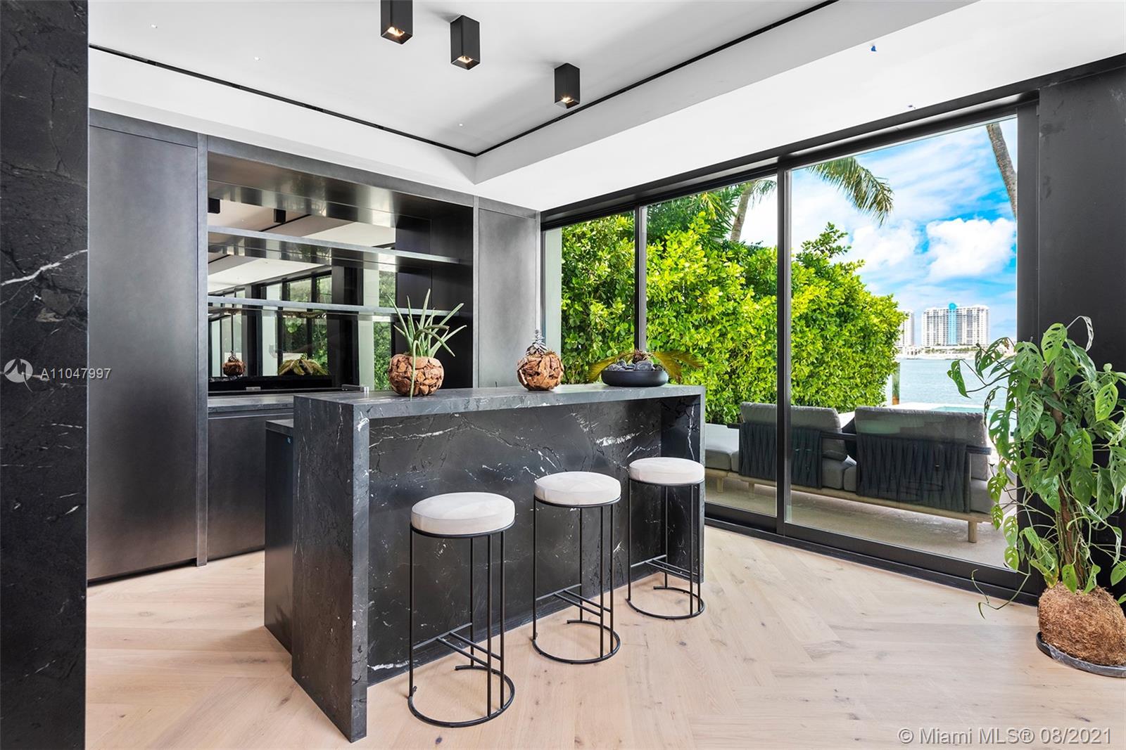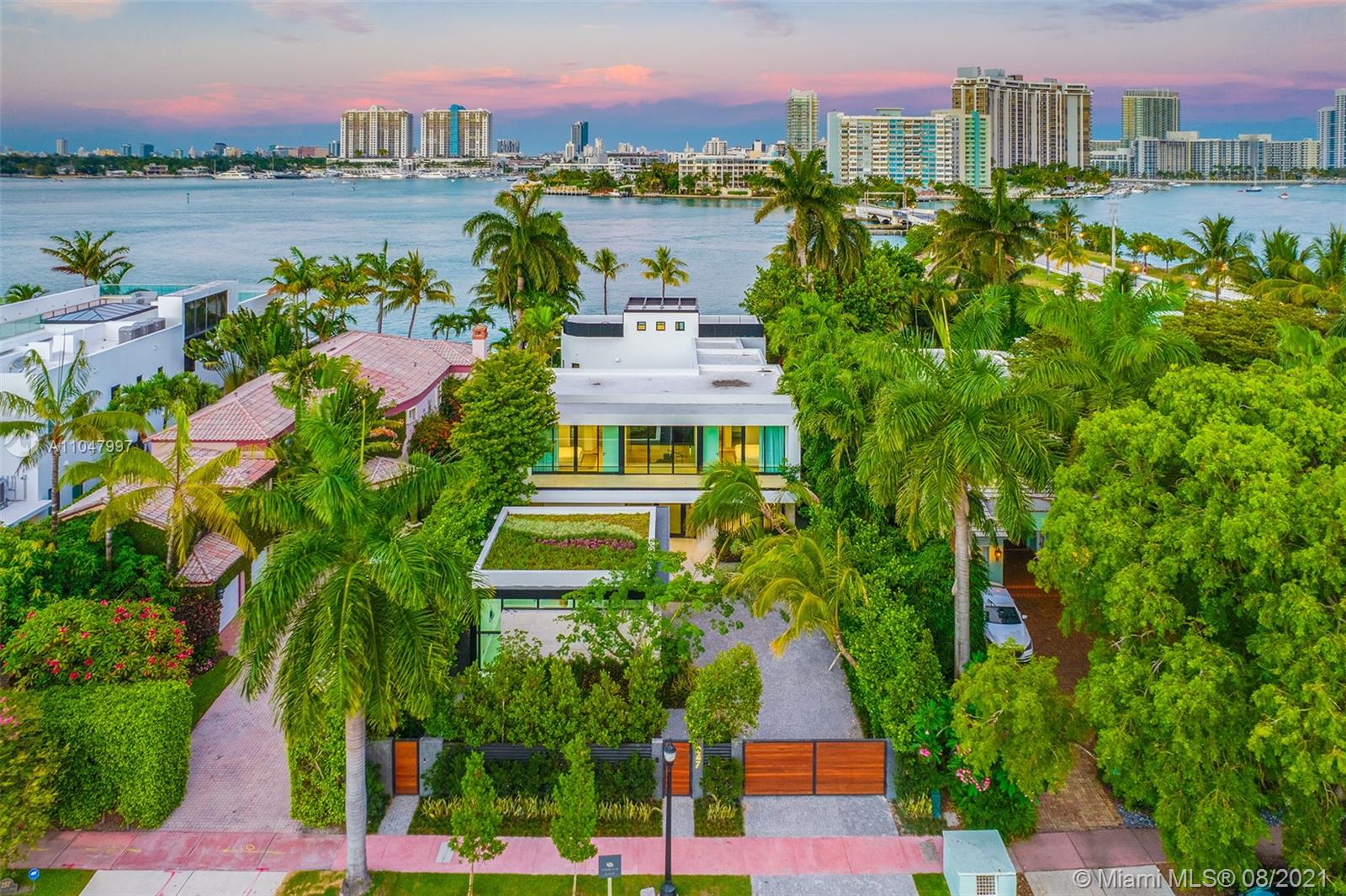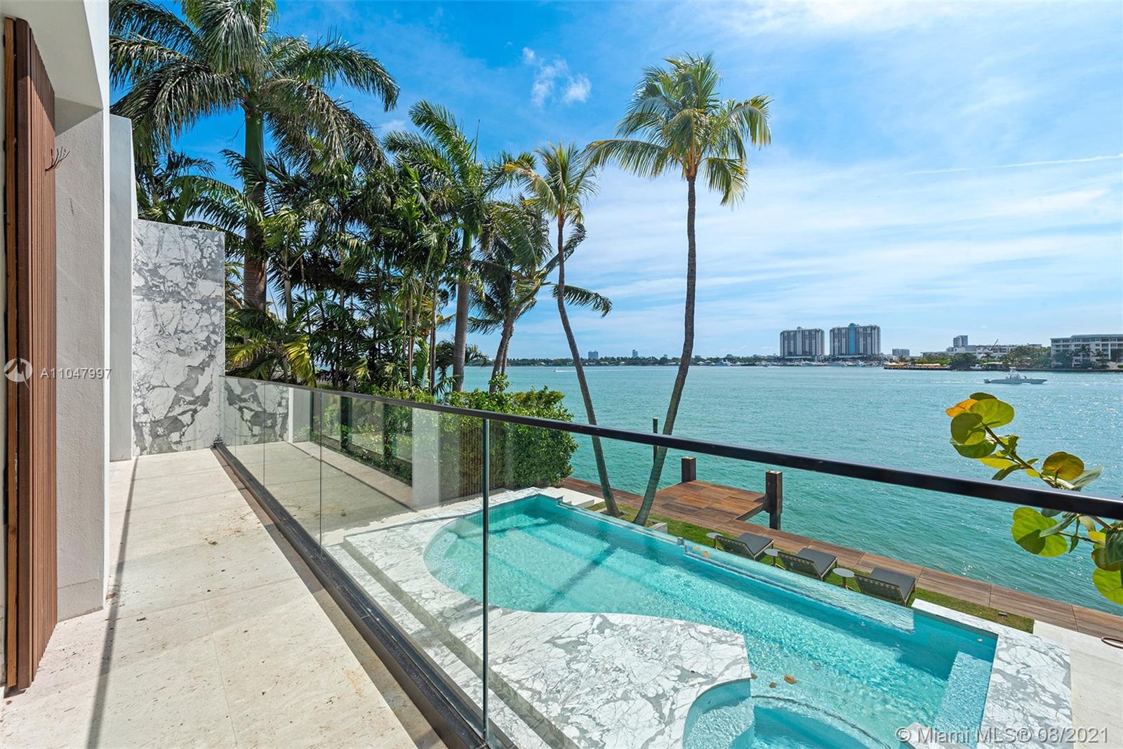 An extraordinary modern waterfront estate offers a completely custom living experience where every space was created to achieve a resort-like lifestyle bursting with amenities. Exquisite features include Boffi baths, Porsche lighting, Gaggenau appliances, custom Italian cabinetry, spacious kitchen, dining, bar & entertainment areas, commissary kitchen & laundry & staff quarters accessible through a service entrance. The principal suite & spa bathroom transport you to a tranquil resort w/ a rooftop deck to enjoy panoramic views of South Beach. Vertical gardens & organic stone claddings soften the exterior & provide a tropical modern feel. The outdoor experience is completed by a Statuario Marble clad acrylic infinity edge pool, jacuzzi & Ipe dock.