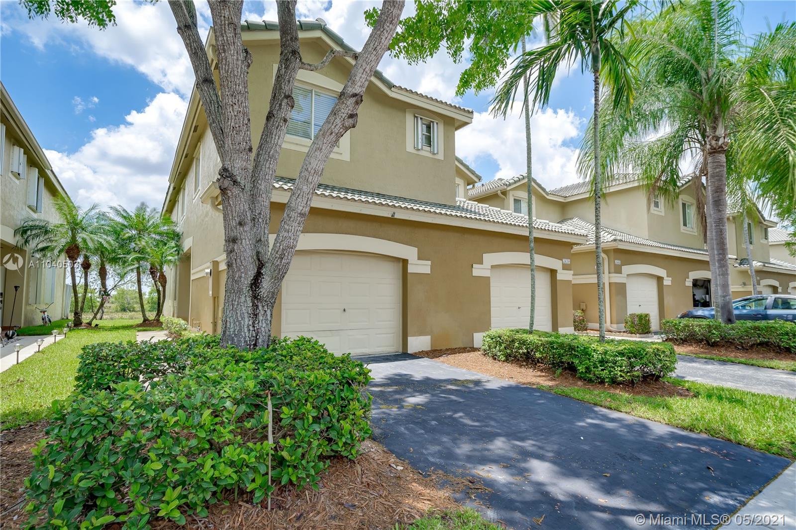 Gated Community of San Mateo, 4 Bedroom Townhouse , all bedrooms are located on the second floor 2/1/2 bathrooms. Brand new 24x48 tile floors in the living are and brand new white kitchen with White Quartz counter tops . Freshly painted, clean coil and air ducts , roof is original but in good condition. 1 Car Garage and 1 car can be parked on the driveway. No houses on the back, the back faces the everglades. Great A+ Schools, close to the main highways, sawgrass mall and 20 minutes from the fort Lauderdale airport.