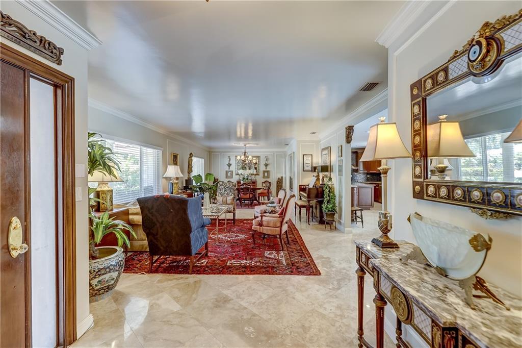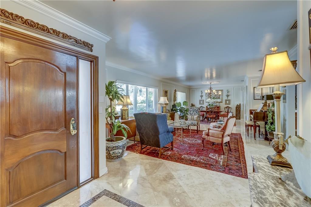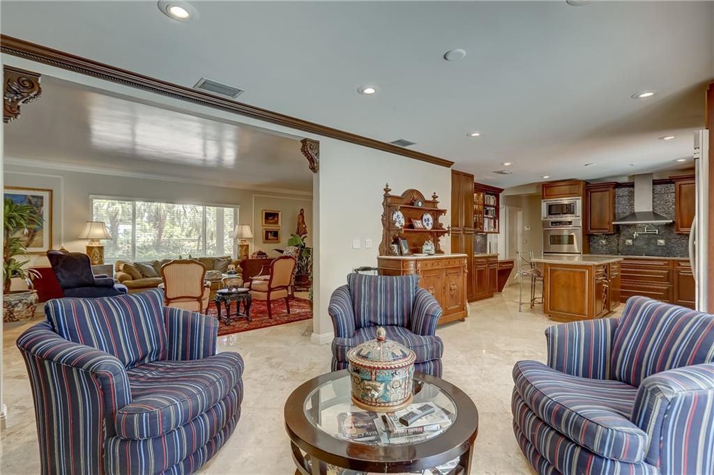 Custom detailed home offered for $30K below appraised value. Appraisal by well respected, certified area appraiser. Shiny polished marble floors, crown moldings and open floor plan welcome you to living room, dining room, family room and cherry cabinet kitchen with stainless appliances, large center island, double convection wall ovens and granite counter tops. Split floor plan with oversized master bedroom and ensuite bath and two large additional bedrooms with adjoining bath . Separate laundry room with plenty of storage, sink, quartz counter tops and folding area. Relax by secluded tropical garden and pool area with paver terrace. Large 2 car garage offers lots of storage. A must see! SHOWINGS BEGINNING JUNE 10 !!