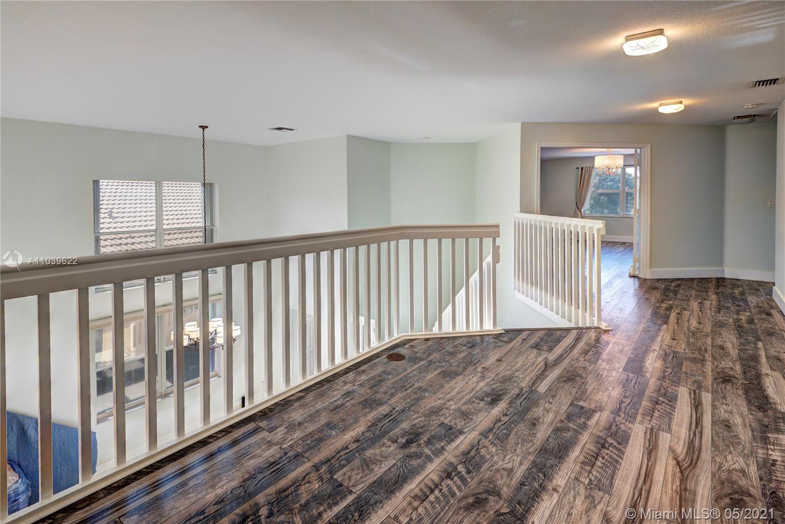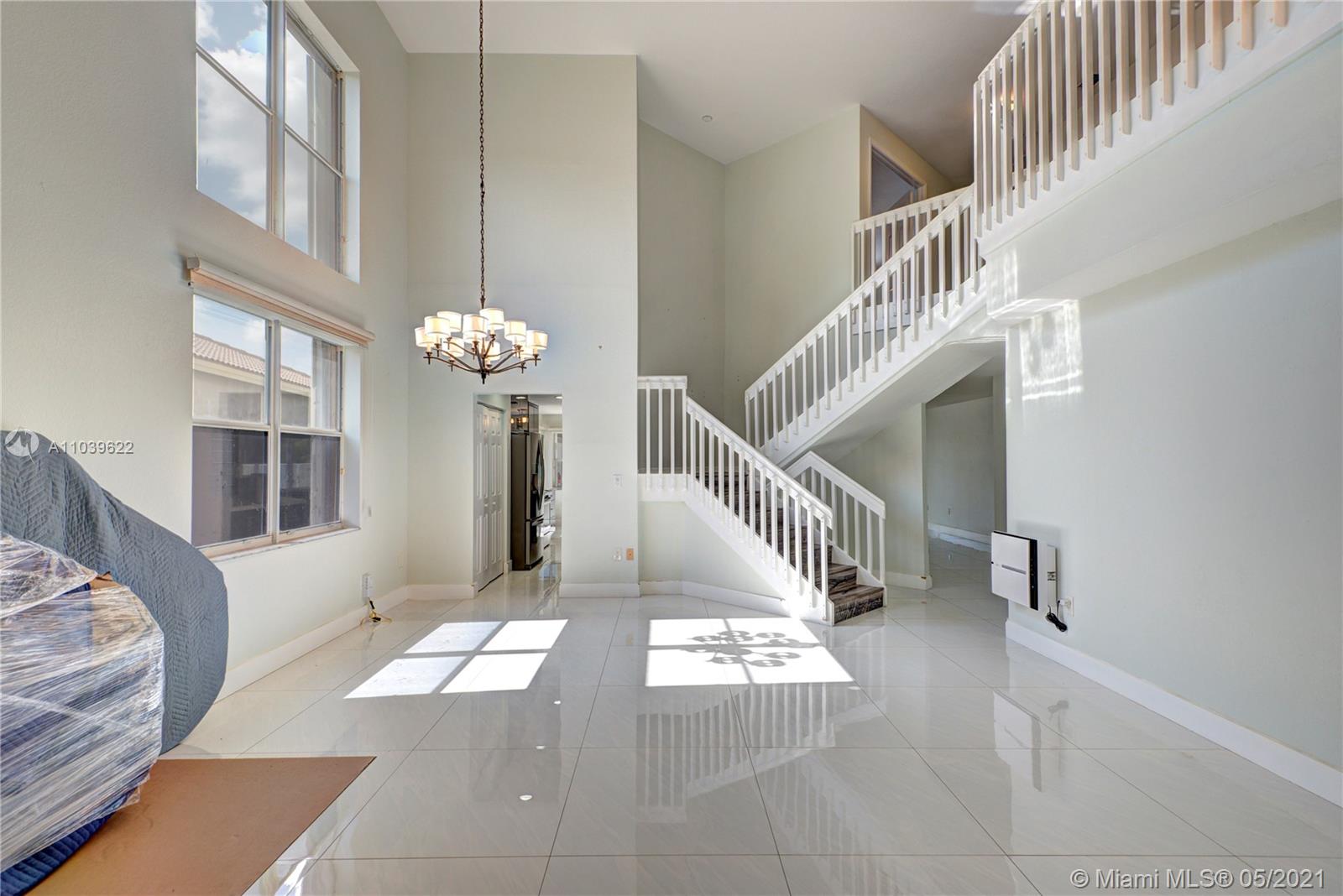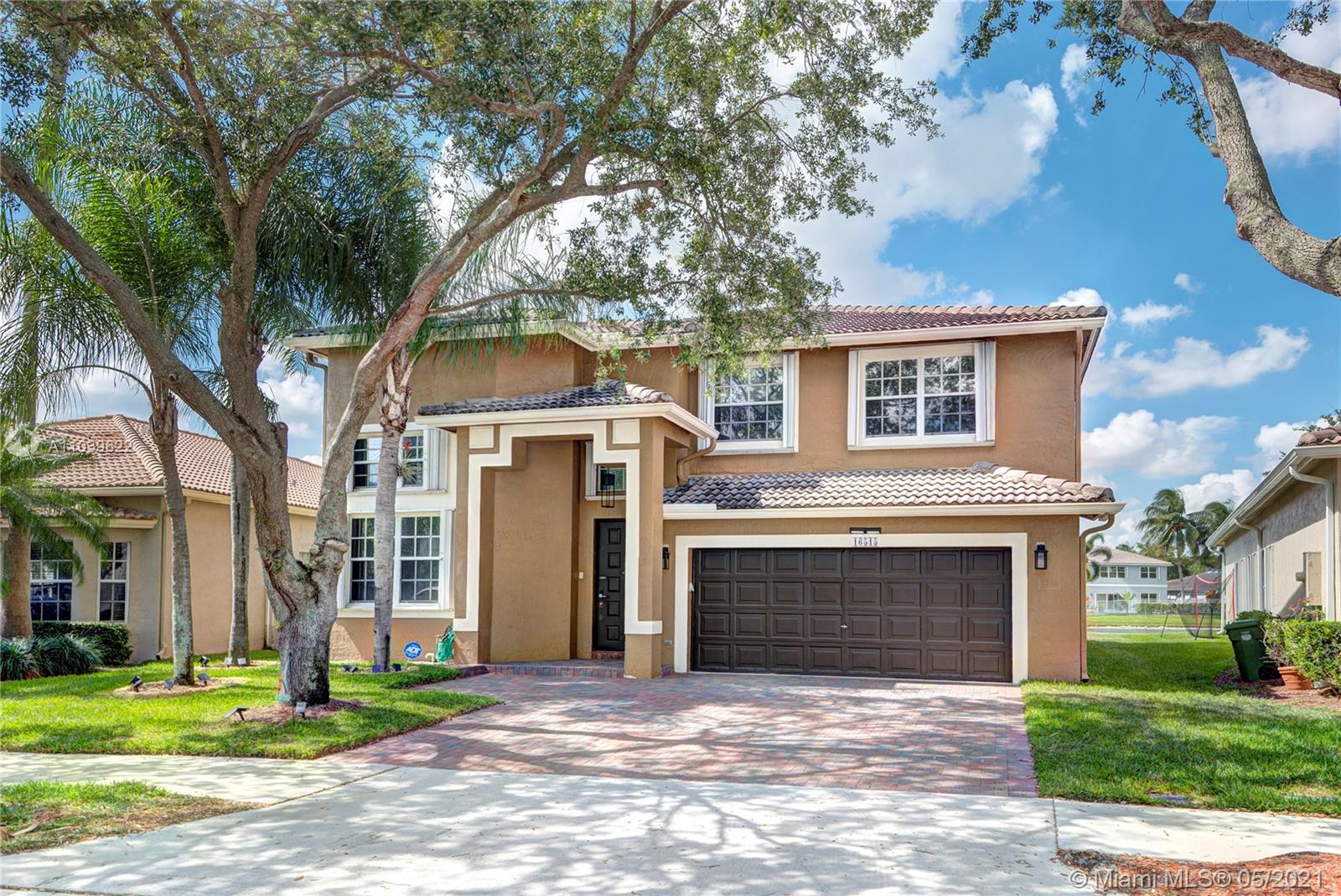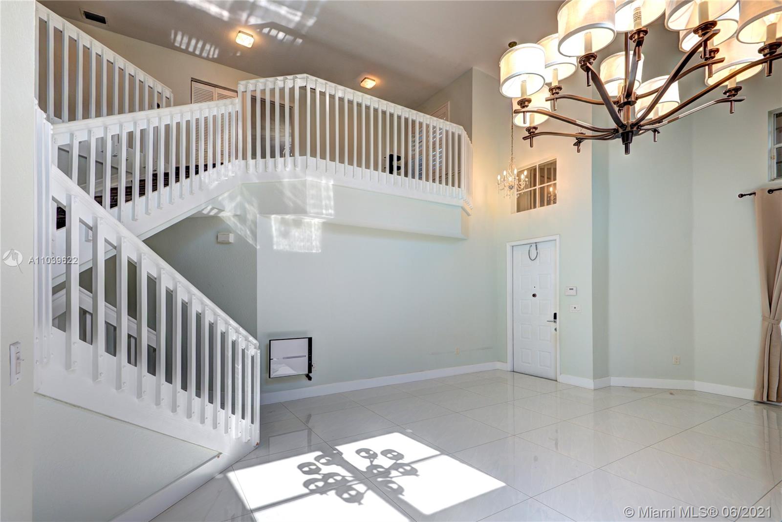 Amazing lake view home in Emerald Estates Weston Florida. Totally Remodeled large 4 bedrooms,3 bath,2 car garage with loft. Open floor plan with vaulted ceilings. Newer kitchen with Quartz counters, stainless appliances & range hood. Marble flooring on 1st floor, laminate on 2nd floor. Master bedroom upstairs with walk-in closet, bathroom with jetted tub, glass enclosed shower, and dual sinks. Jack & Jill bed/bath combo, and open loft perfect for office or den. Bedroom on 1st floor with full bath. Laundry room with cabinets, and storage closet. Enjoy the lake view from the over-sized roofed, screened patio. Accordion shutters on all windows. HOA fee includes: lawn, sprinklers, alarm, basic cable, 24 hour guard gate, pool, kid's play area & fitness room. Close to shopping & major highways.