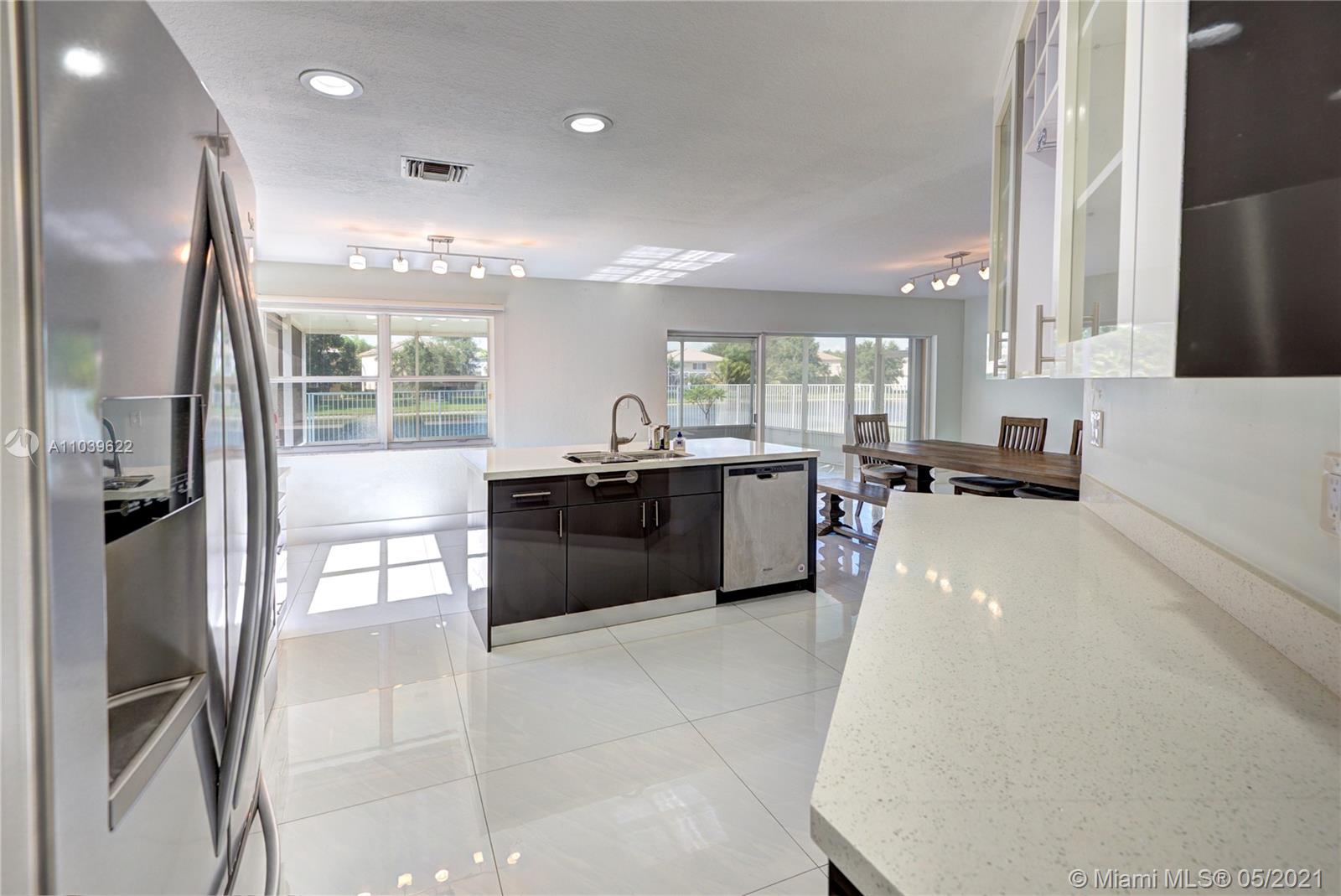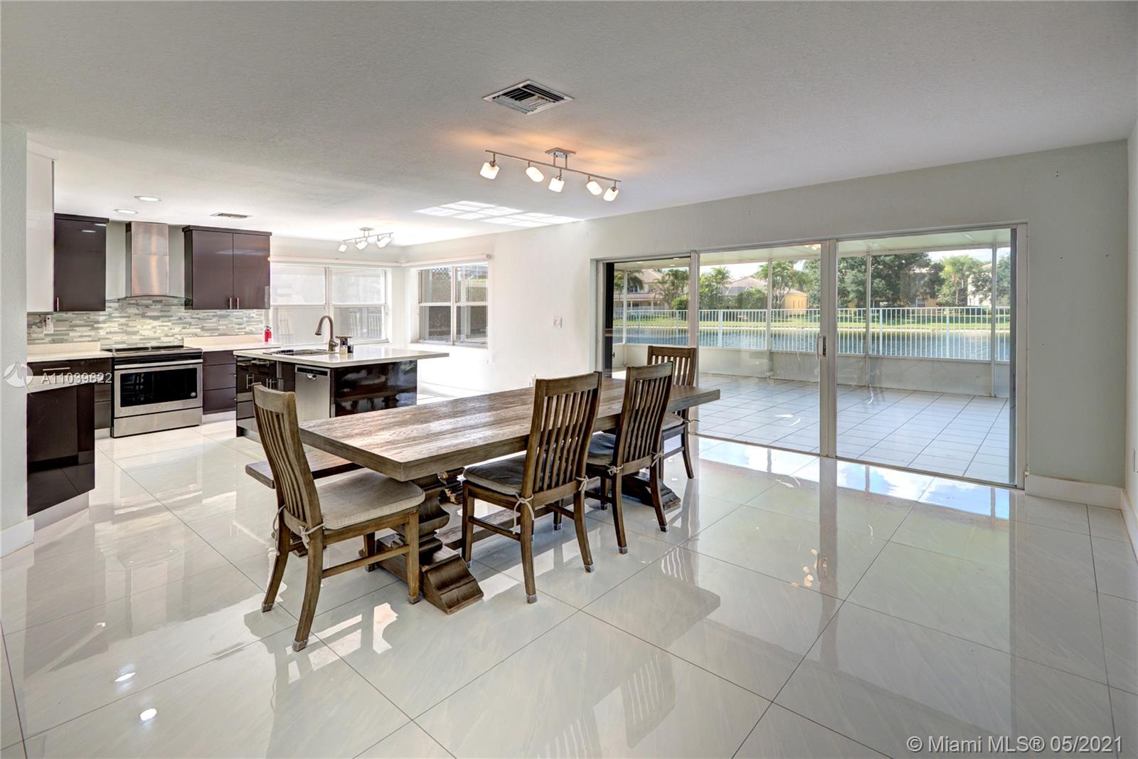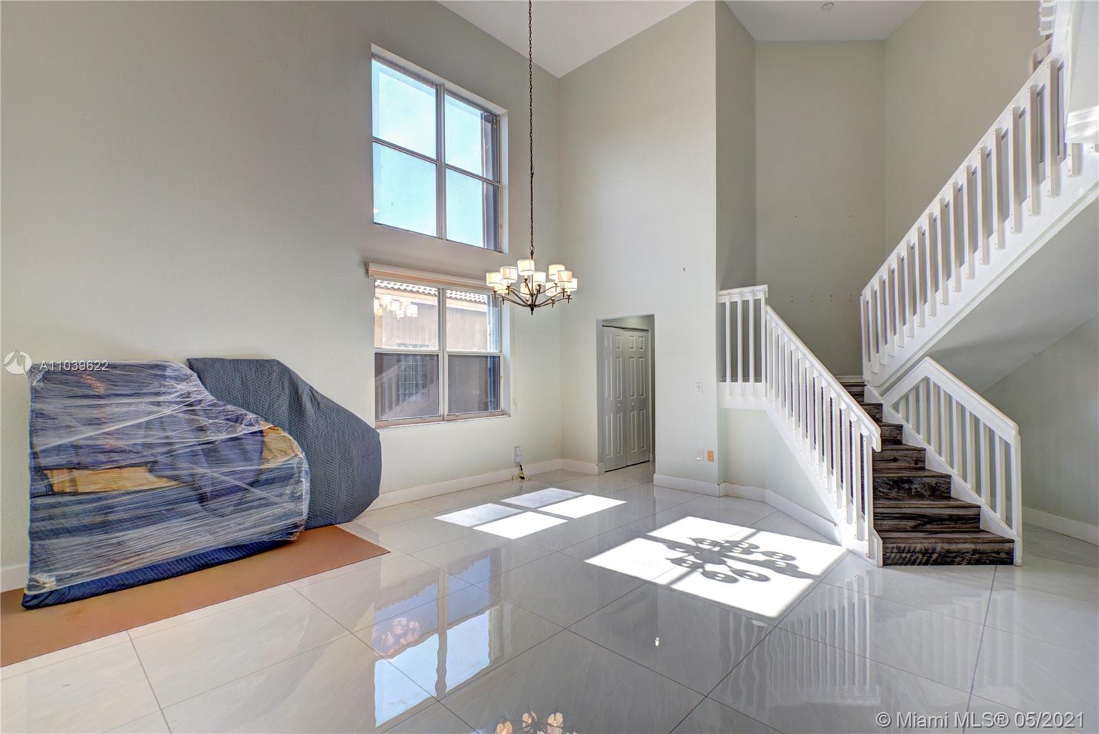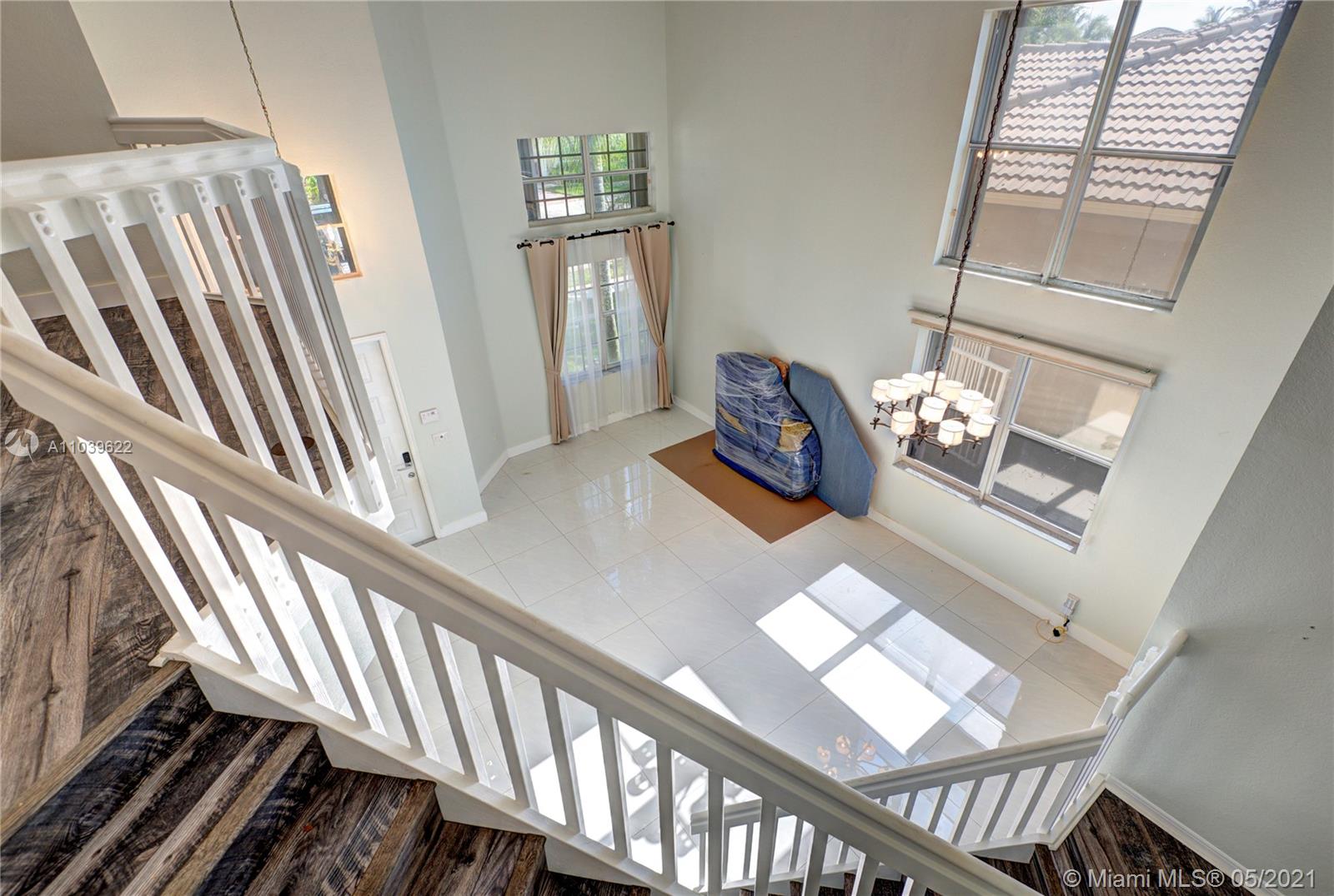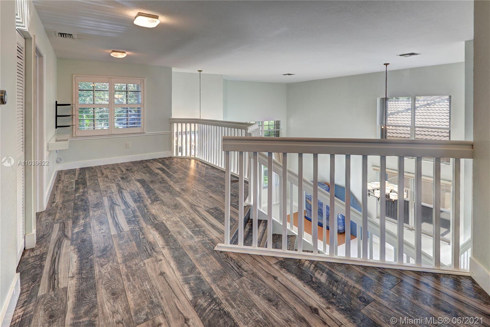 Amazing lake view home in Emerald Estates Weston Florida. Totally Remodeled large 4 bedrooms,3 bath,2 car garage with loft. Open floor plan with vaulted ceilings. Newer kitchen with Quartz counters, stainless appliances & range hood. Marble flooring on 1st floor, laminate on 2nd floor. Master bedroom upstairs with walk-in closet, bathroom with jetted tub, glass enclosed shower, and dual sinks. Jack & Jill bed/bath combo, and open loft perfect for office or den. Bedroom on 1st floor with full bath. Laundry room with cabinets, and storage closet. Enjoy the lake view from the over-sized roofed, screened patio. Accordion shutters on all windows. HOA fee includes: lawn, sprinklers, alarm, basic cable, 24 hour guard gate, pool, kid's play area & fitness room. Close to shopping & major highways.