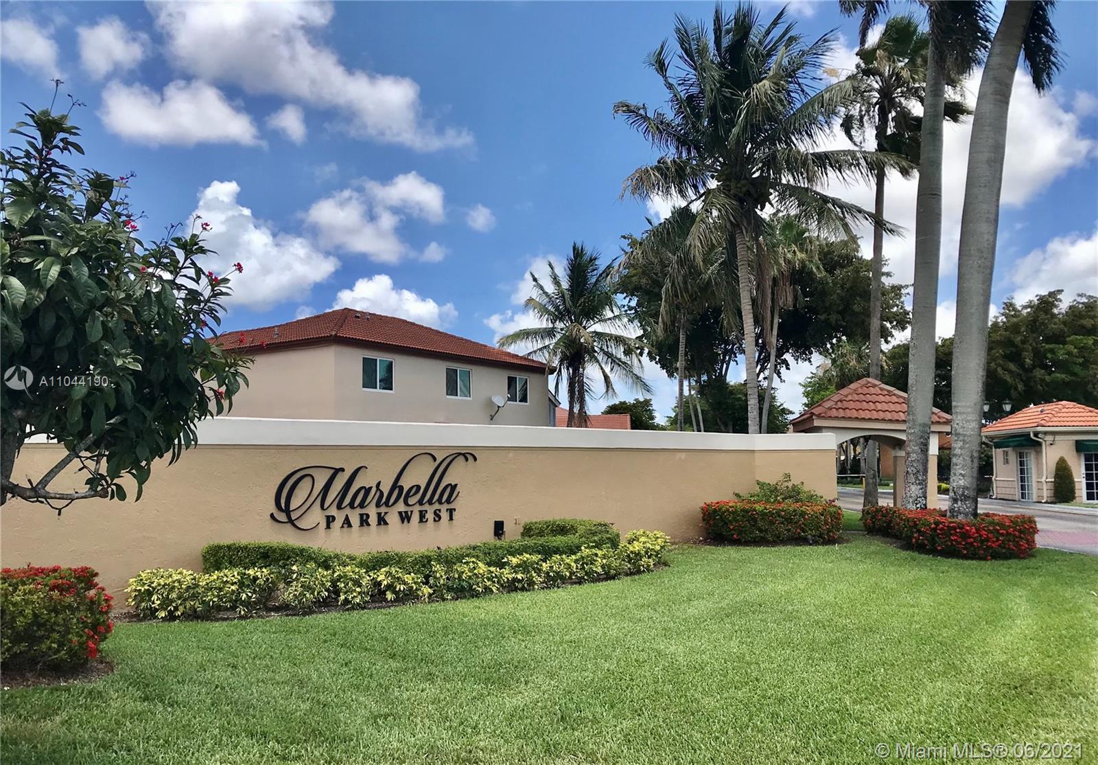 Enjoy living in spacious 3-bedroom, 2.5-bathroom, 2 garages within a desirable gate community, Marbella Park West. This gorgeous house included *remodeled light and bright luminated kitchen, cascade marble counter, KitchenAid stainless-steel appliance *GAS STOVE, plantation shutters and *Hurricane shutters, *tile flooring in main living area, *wood floors in bedrooms. In addition, it includes an *Awing covered Patio overlooking peaceful *lake and Park. Park is excellent for parties, outdoor activities, and entertainment. It also includes walking path to provide easy access to and from the park. *Guarded gate by security 24/7, *LOW maintenance Fee. Close to shopping and major freeways, I-75, Palmetto and Turnpike. SHOWINGS BY APPOINTMENT ONLY.