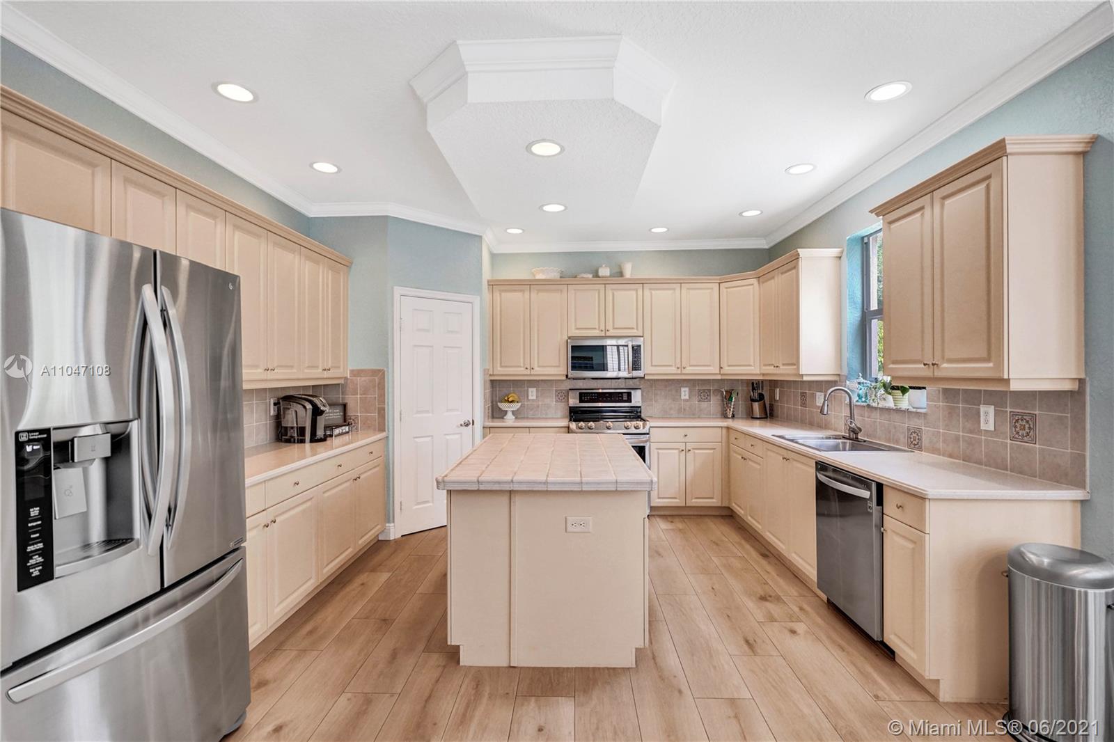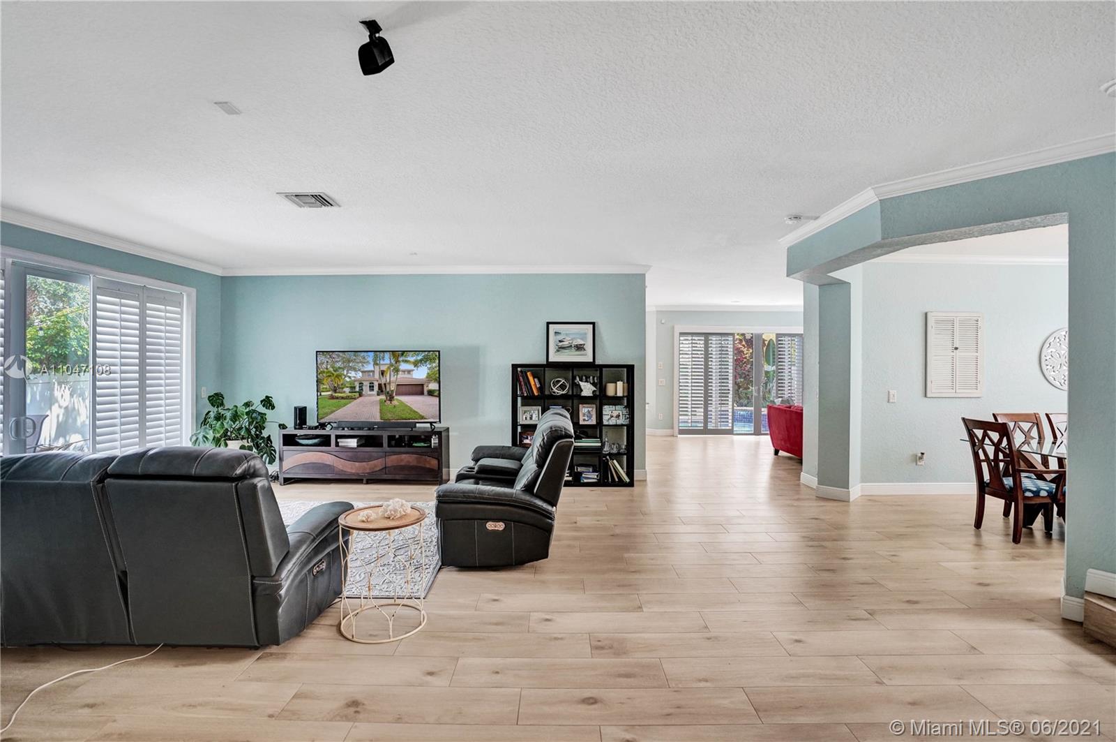 Stunning upgraded pool home in desirable Riviera Isles! 5 bed plus den/office. Impeccable home with amazing natural light. Open floor plan with large social areas. Gourmet kitchen with center island and newer stainless steel appliances. Hardwood flooring on the ground floor and newer ceramic tile on staircase and landing. Large master suite with sitting area and huge California walk-in closet. Laundry room on the second floor. Upgraded bathrooms, crown molding, recessed lights, elegant light fixtures, plantation shutters, accordion shutters second floor, sliding doors and master suite window are impact, fresh interior paint. Gorgeous fenced patio with custom waterfall pool, summer kitchen & professional landscaping, perfect for entertaining! Resort style clubhouse with lots of amenities.